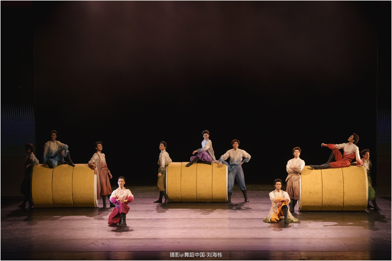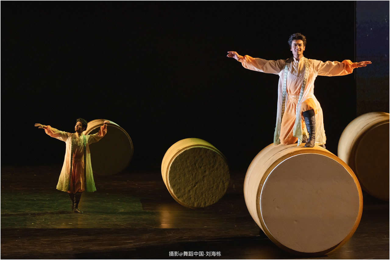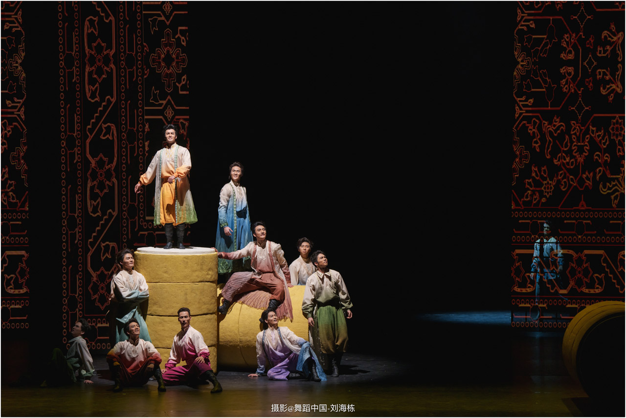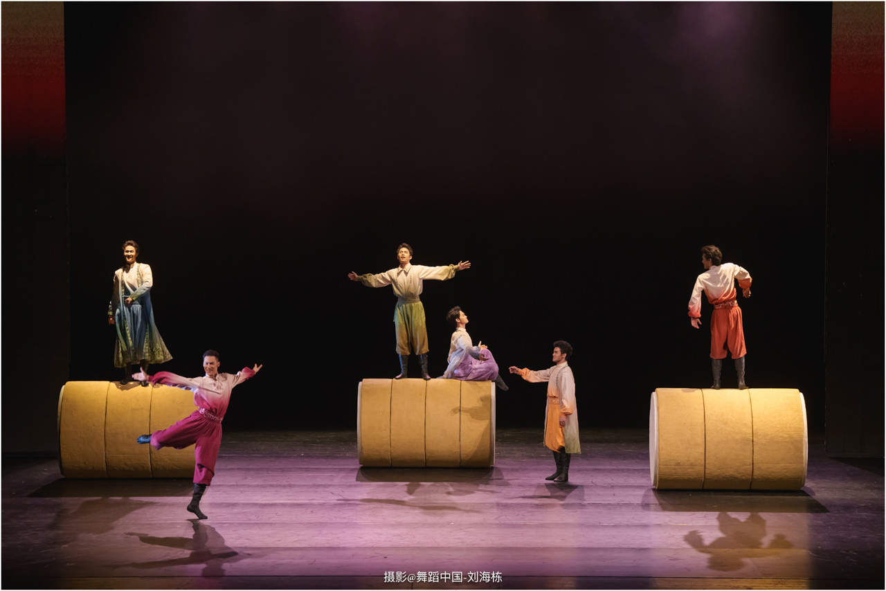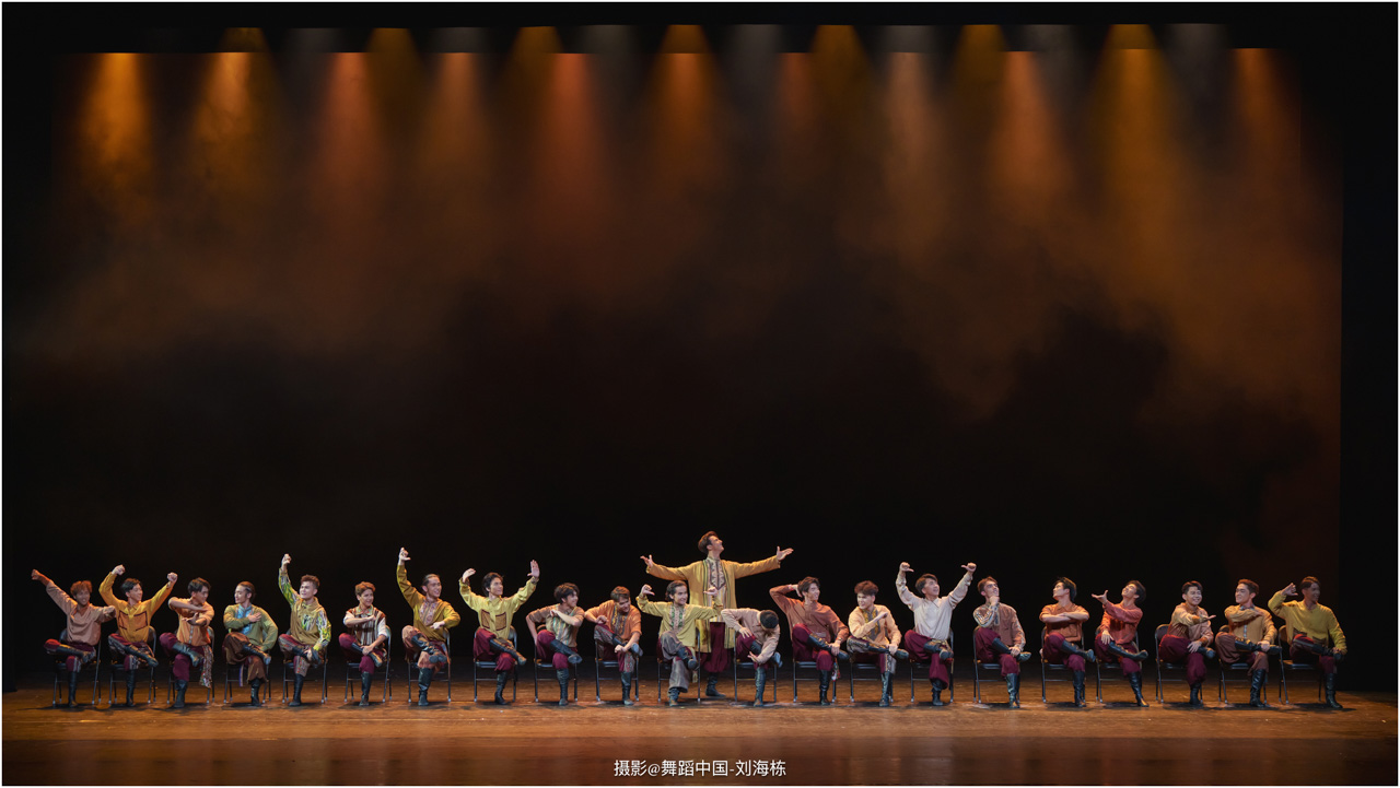 第三篇章“路”演出的作品,以传统素材当代转化为主,融合交响芭蕾与民族舞蹈精髓的《旷野之歌》,颂扬胡杨精神、民族团结与生命热爱,展现芭蕾民族化新探索,唱响文化融合与传承的赞歌;双人舞《老雁》以蒙古族舞蹈语汇,于方寸凳间深情呈现出蒙古族长调艺人的暮年情怀,唤起公众对民间艺人及非物质文化遗产保护的高度重视与深切关怀;《谷雨》以朝鲜族舞蹈重构二十四节气之韵,创新民俗小鼓舞,展现新时代劳动之美与劳动人民之美的和谐画卷;《阳光下的麦盖提》生动反映出新疆人民的美好幸福生活画卷;尾声作品《年轮》,以壮族舞蹈演绎生命之树,寓意生命不息、文化长存,展现自然与人文和谐共生的美好愿景。