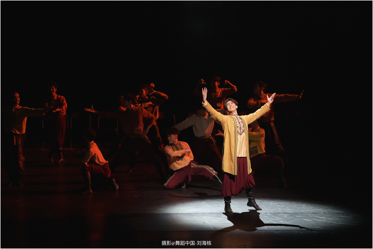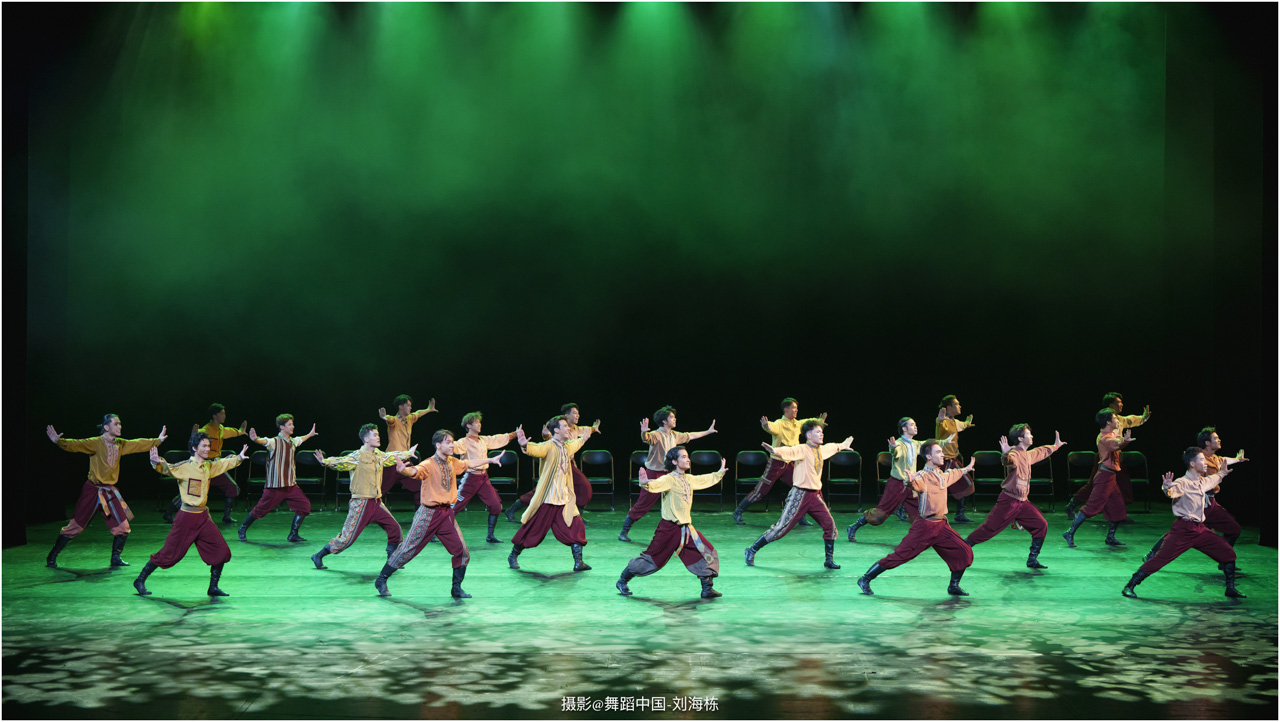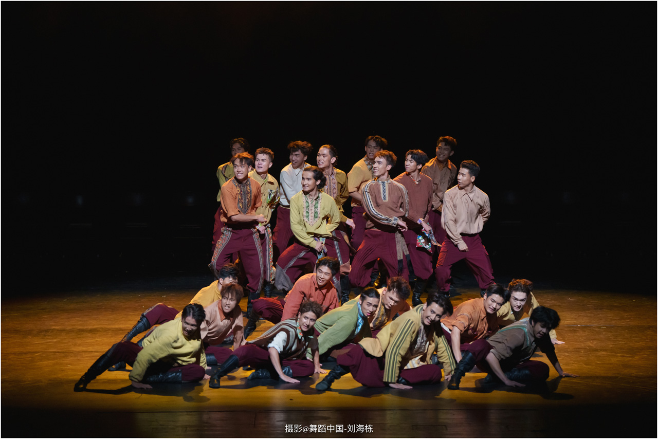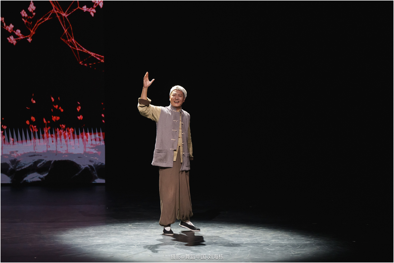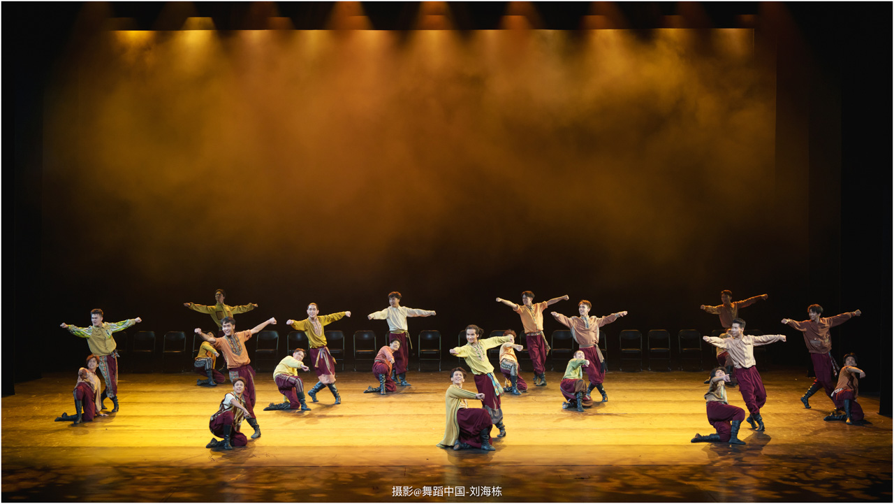 第三篇章“路”演出的作品,以传统素材当代转化为主,融合交响芭蕾与民族舞蹈精髓的《旷野之歌》,颂扬胡杨精神、民族团结与生命热爱,展现芭蕾民族化新探索,唱响文化融合与传承的赞歌;双人舞《老雁》以蒙古族舞蹈语汇,于方寸凳间深情呈现出蒙古族长调艺人的暮年情怀,唤起公众对民间艺人及非物质文化遗产保护的高度重视与深切关怀;《谷雨》以朝鲜族舞蹈重构二十四节气之韵,创新民俗小鼓舞,展现新时代劳动之美与劳动人民之美的和谐画卷;《阳光下的麦盖提》生动反映出新疆人民的美好幸福生活画卷;尾声作品《年轮》,以壮族舞蹈演绎生命之树,寓意生命不息、文化长存,展现自然与人文和谐共生的美好愿景。