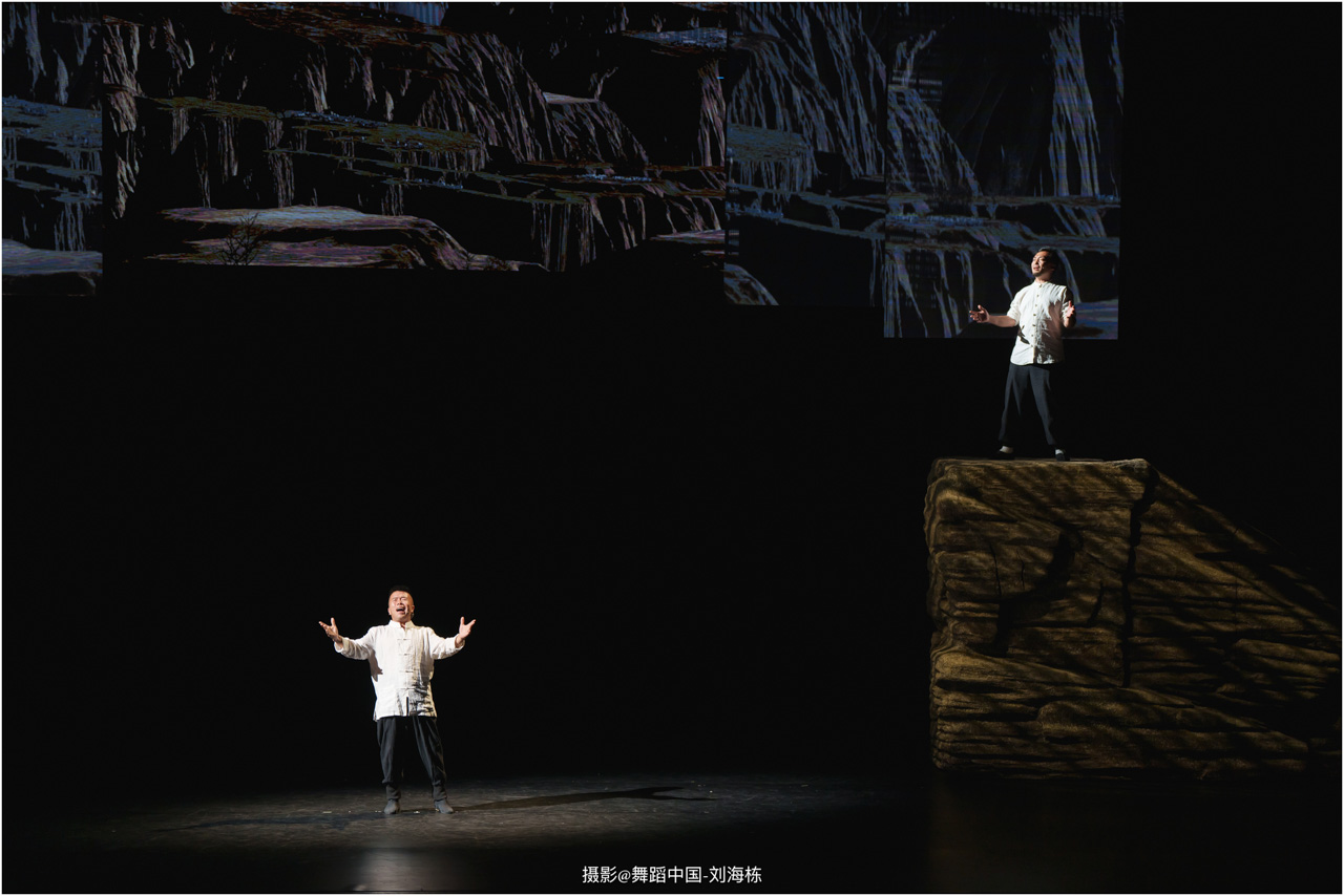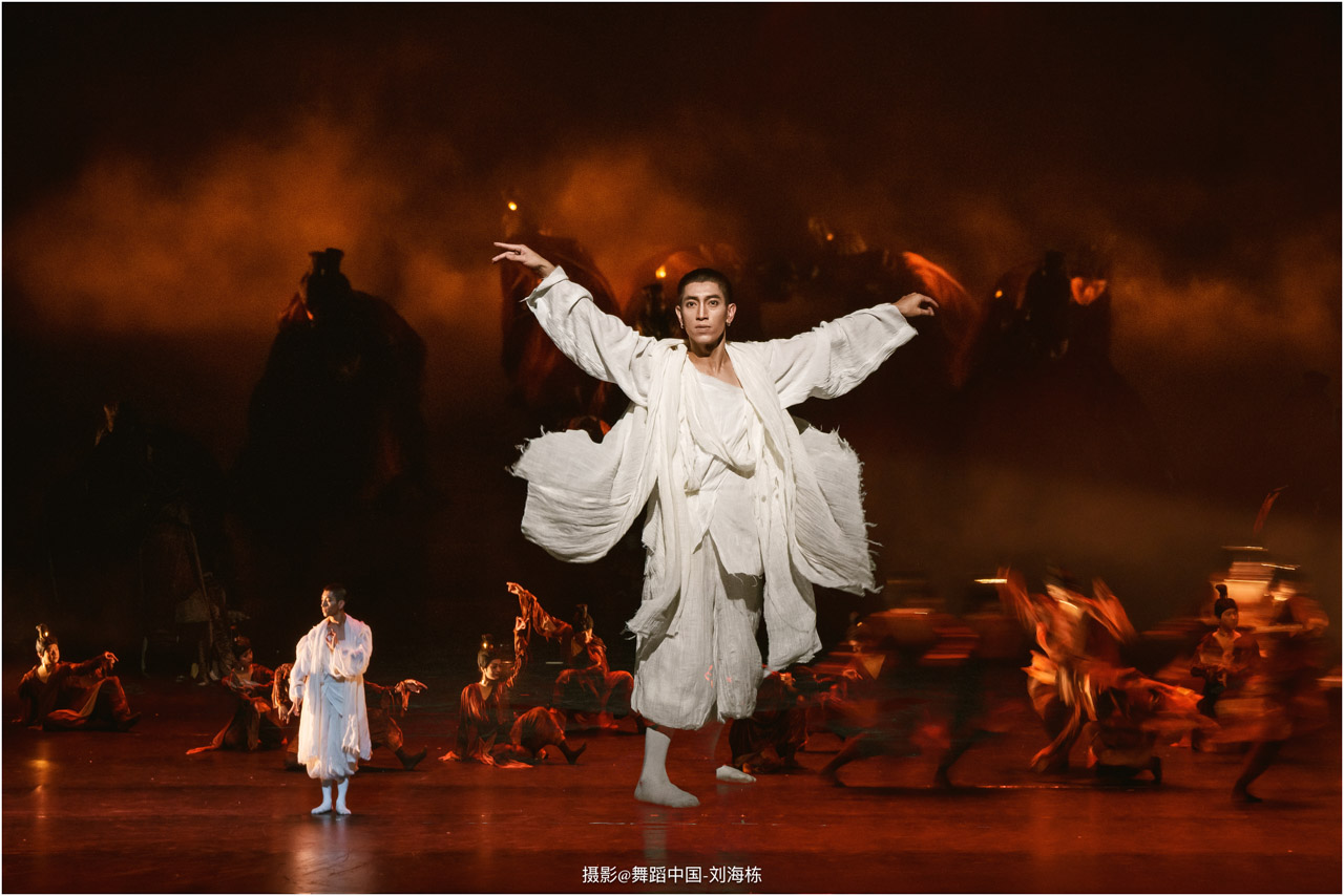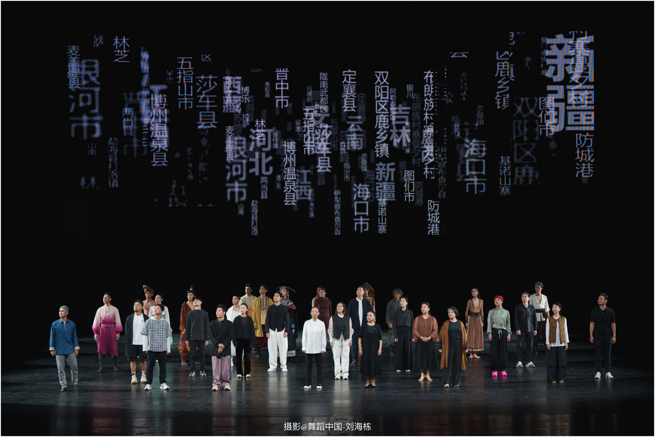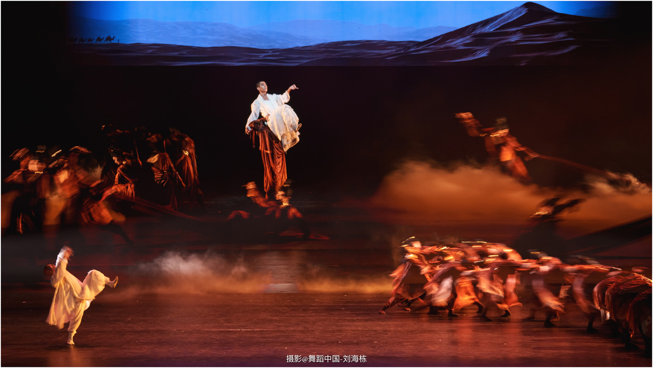 第三篇章“路”演出的作品,以传统素材当代转化为主,融合交响芭蕾与民族舞蹈精髓的《旷野之歌》,颂扬胡杨精神、民族团结与生命热爱,展现芭蕾民族化新探索,唱响文化融合与传承的赞歌;双人舞《老雁》以蒙古族舞蹈语汇,于方寸凳间深情呈现出蒙古族长调艺人的暮年情怀,唤起公众对民间艺人及非物质文化遗产保护的高度重视与深切关怀;《谷雨》以朝鲜族舞蹈重构二十四节气之韵,创新民俗小鼓舞,展现新时代劳动之美与劳动人民之美的和谐画卷;《阳光下的麦盖提》生动反映出新疆人民的美好幸福生活画卷;尾声作品《年轮》,以壮族舞蹈演绎生命之树,寓意生命不息、文化长存,展现自然与人文和谐共生的美好愿景。