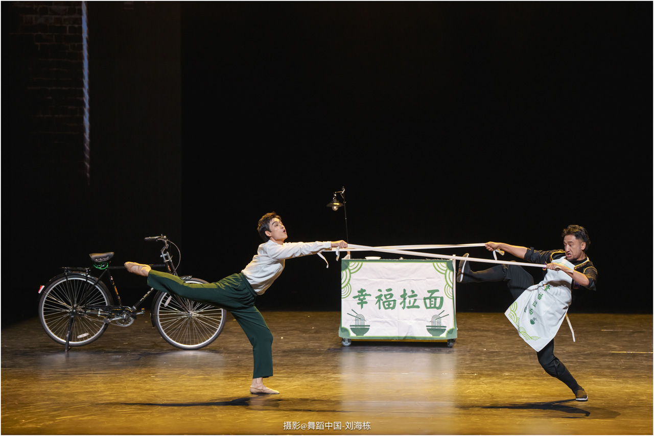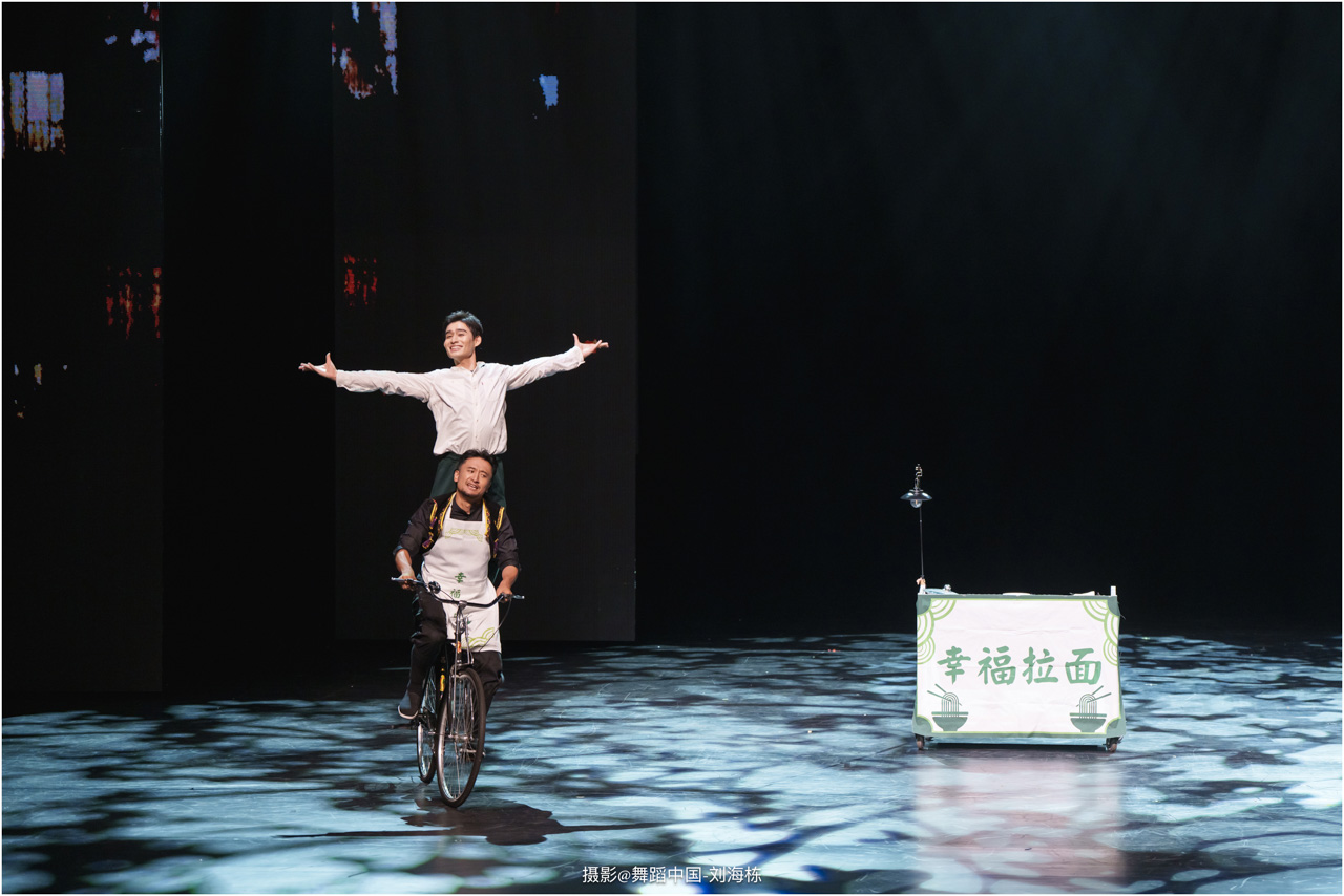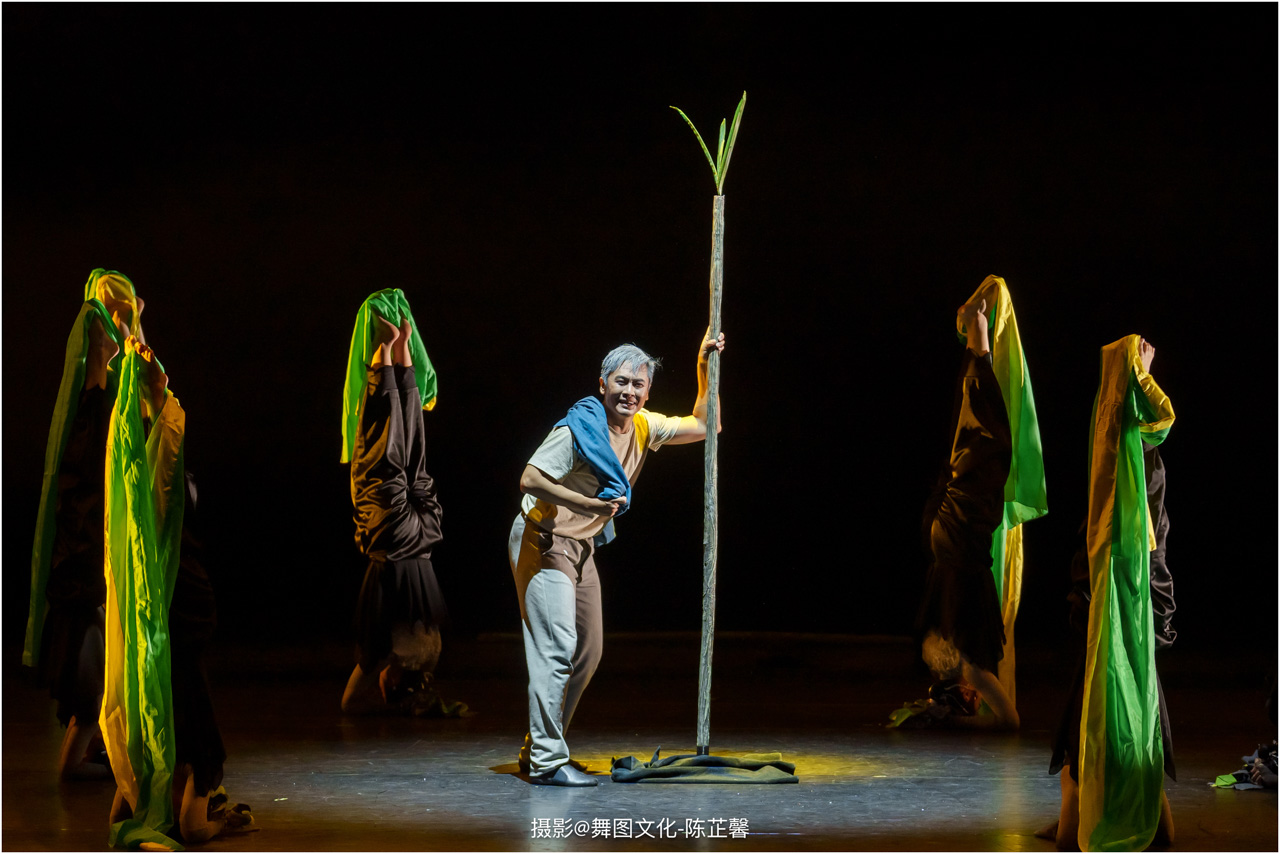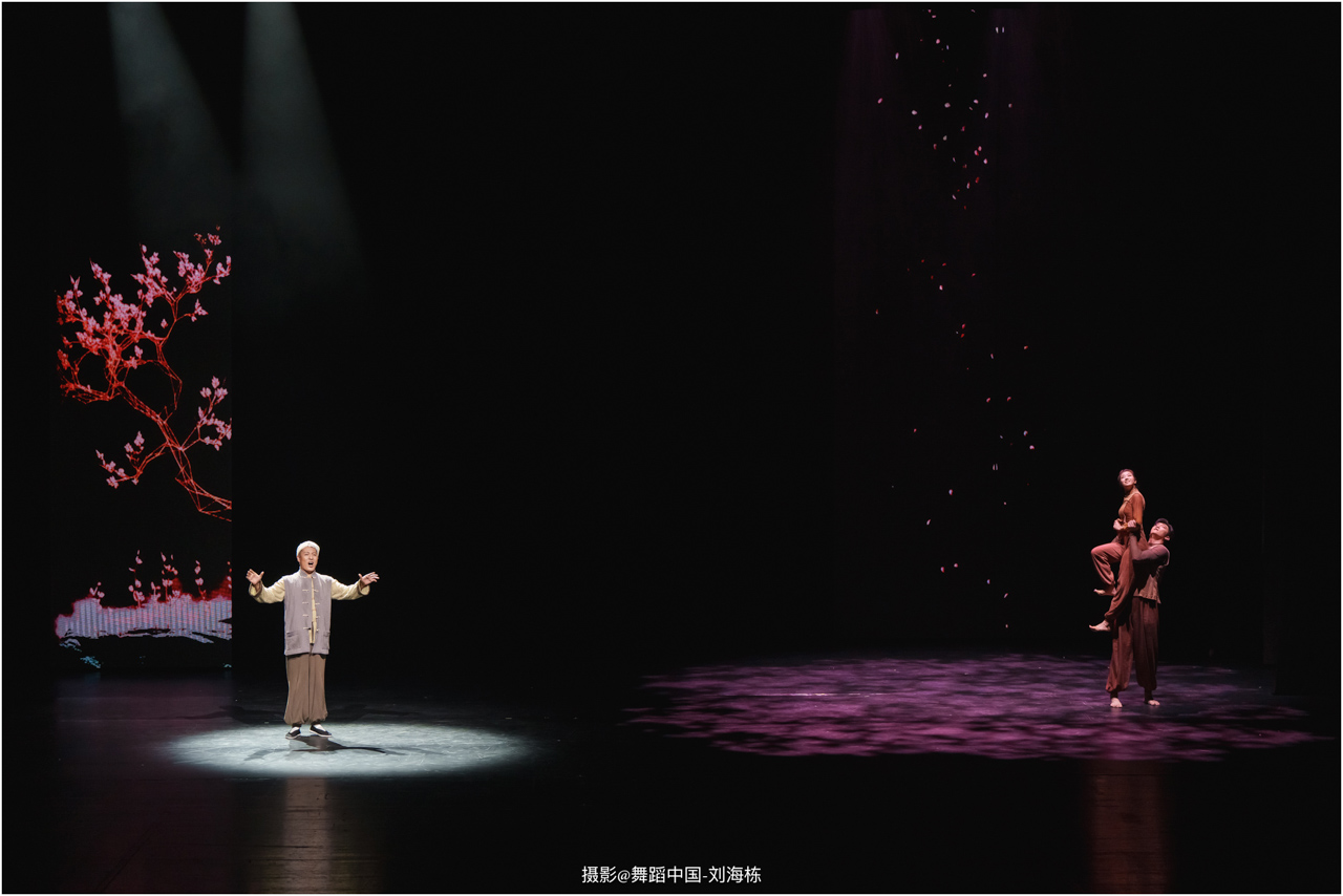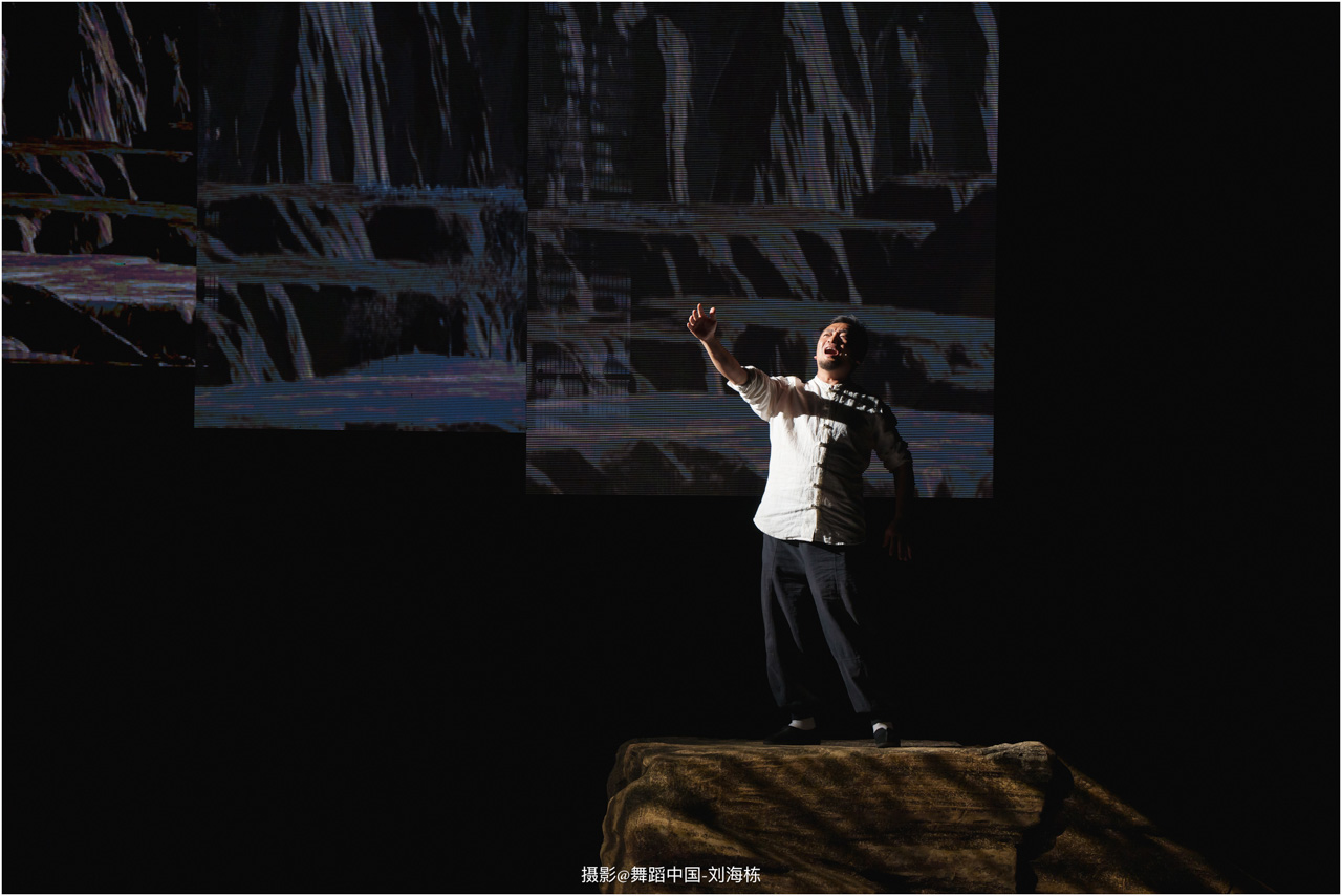 第三篇章“路”演出的作品,以传统素材当代转化为主,融合交响芭蕾与民族舞蹈精髓的《旷野之歌》,颂扬胡杨精神、民族团结与生命热爱,展现芭蕾民族化新探索,唱响文化融合与传承的赞歌;双人舞《老雁》以蒙古族舞蹈语汇,于方寸凳间深情呈现出蒙古族长调艺人的暮年情怀,唤起公众对民间艺人及非物质文化遗产保护的高度重视与深切关怀;《谷雨》以朝鲜族舞蹈重构二十四节气之韵,创新民俗小鼓舞,展现新时代劳动之美与劳动人民之美的和谐画卷;《阳光下的麦盖提》生动反映出新疆人民的美好幸福生活画卷;尾声作品《年轮》,以壮族舞蹈演绎生命之树,寓意生命不息、文化长存,展现自然与人文和谐共生的美好愿景。