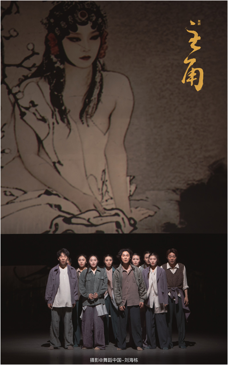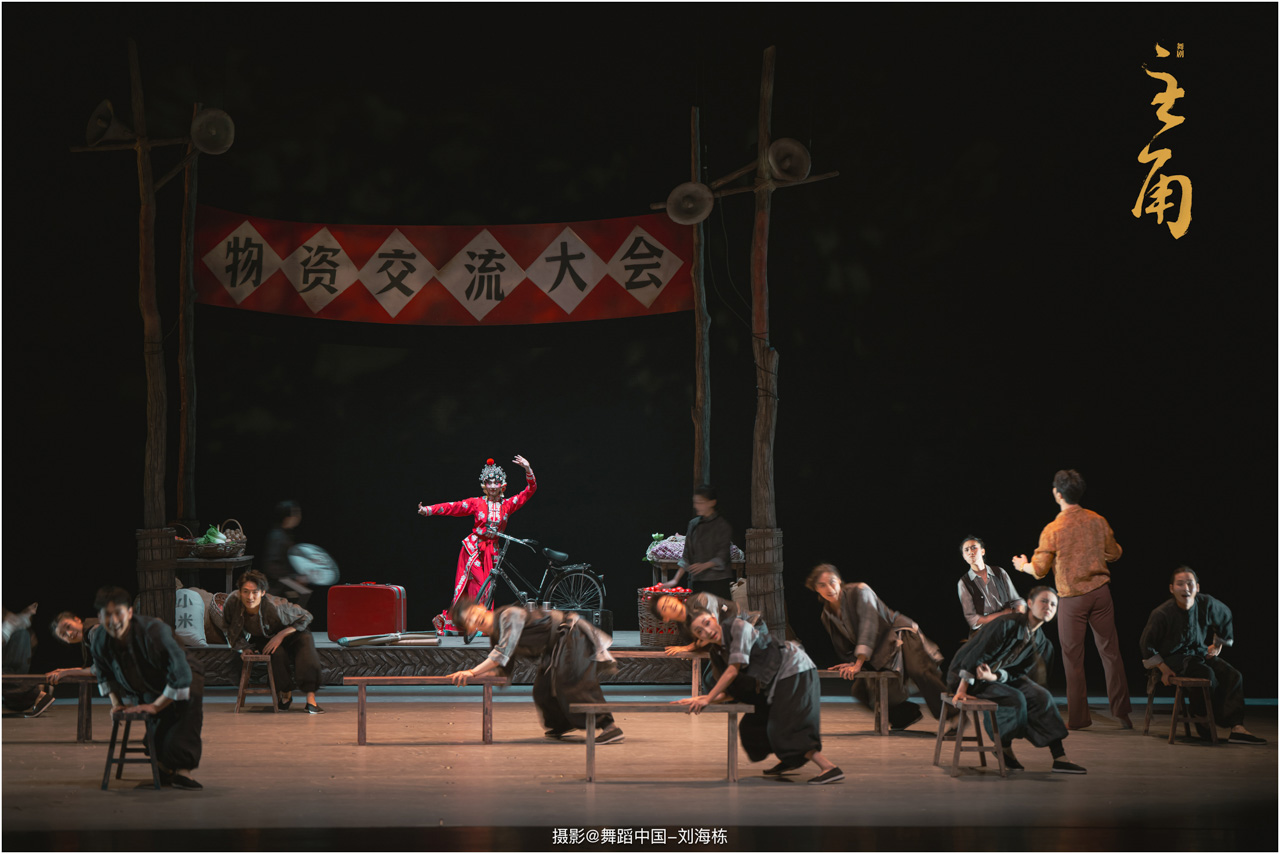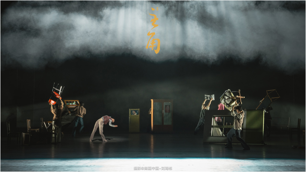 技巧是犹如“以夷制夷”的编排设计,作品对忆秦娥行为之事与内心之情的呈现,都未通过“她”来实现,而是借助更有空间感的群舞:以众生相的簇拥表意忆秦娥的成角儿时刻、以散乱的周遭环境表征家庭关系的破裂……这样的设计以更加“舞蹈”的方式放大了情节本身,让忆秦娥只作为第三视角的存在,或沉浸于自我,或愤懑于不公,多层次、多维面的空间关系就此搭建出来。这种“以他观我”的手法作为一种无技巧之技巧的存在,以其“威力”实现了对表意空间的切割与拓新。