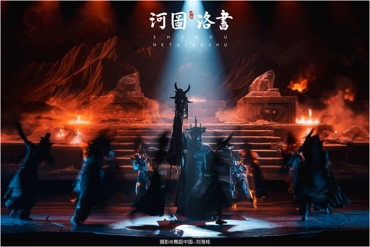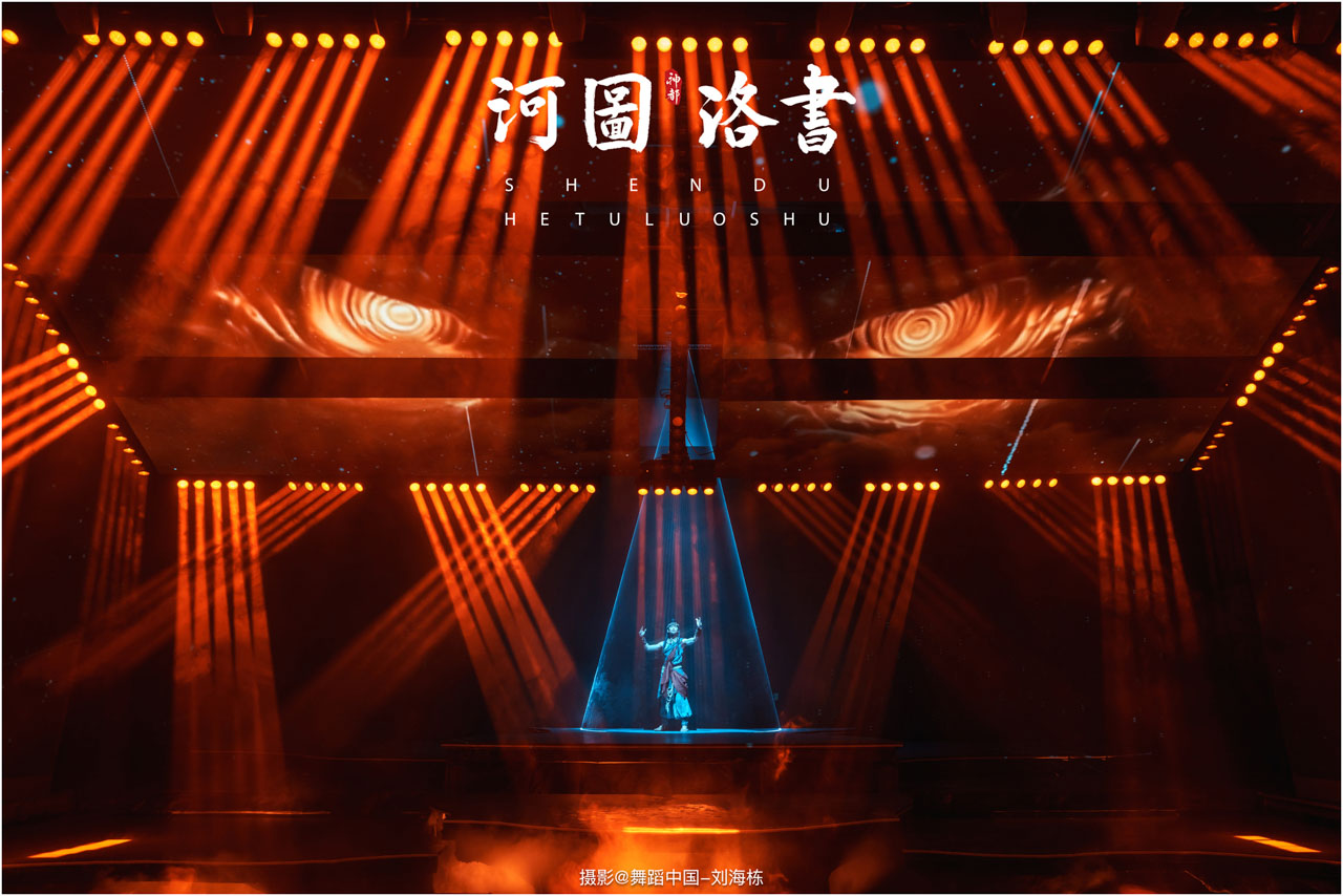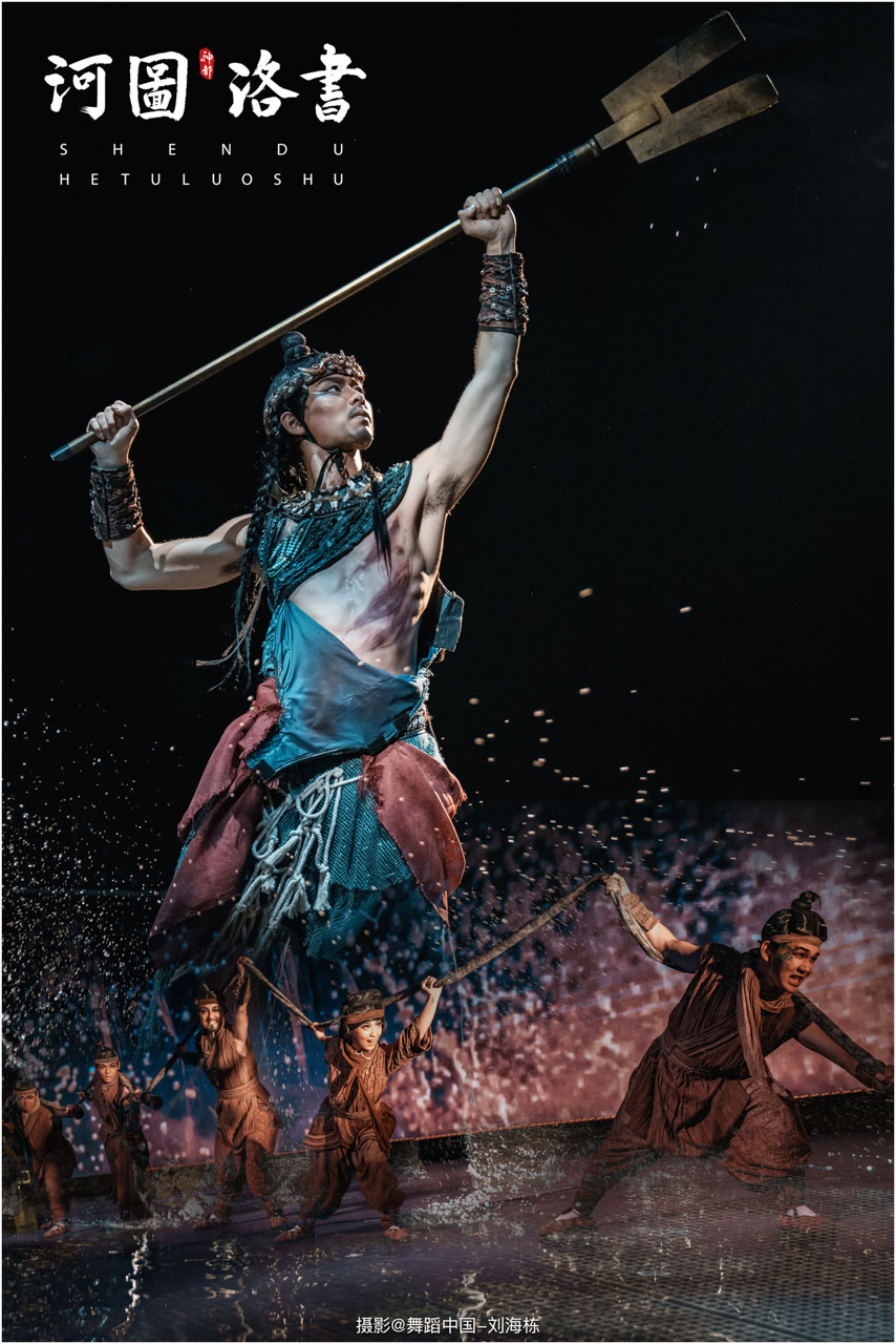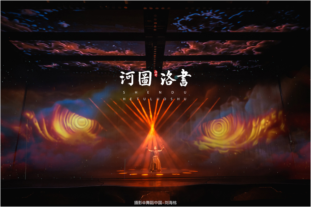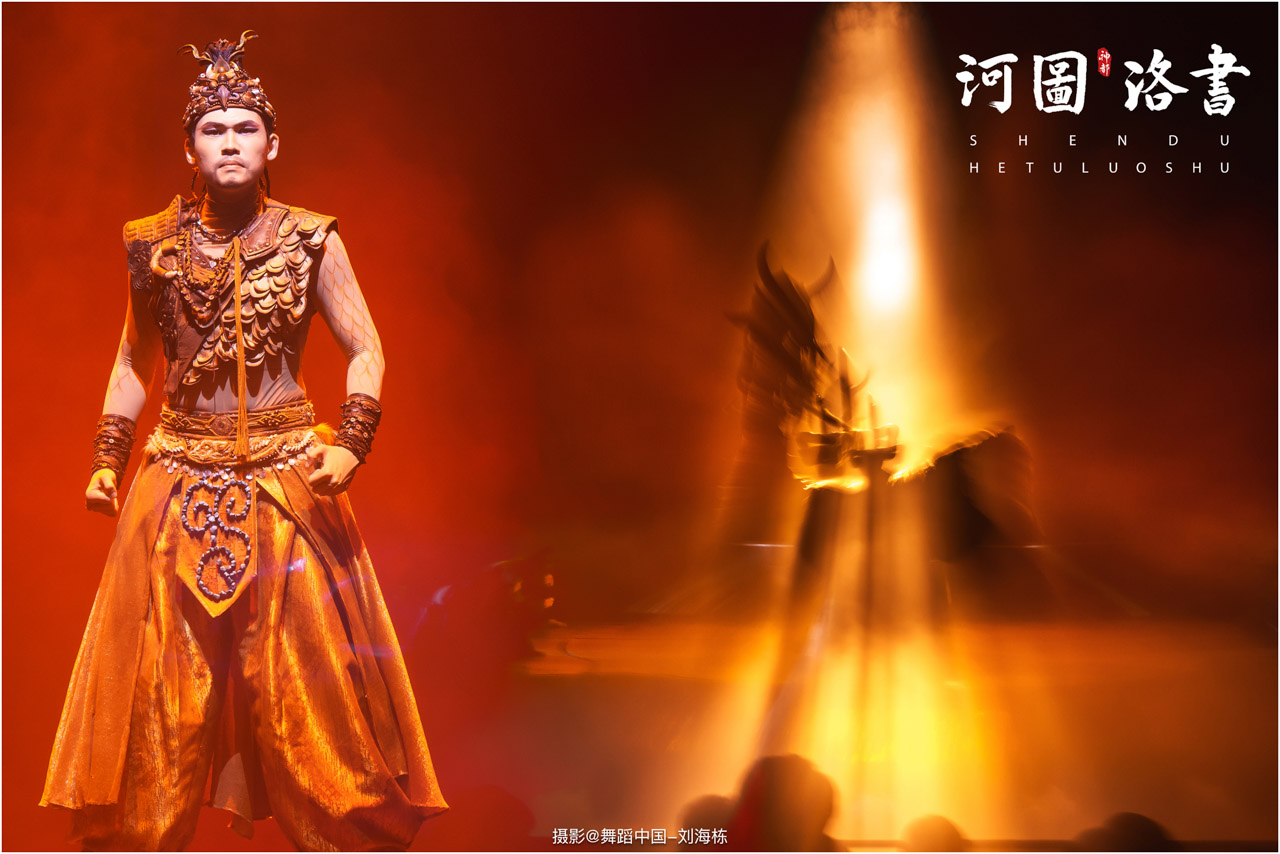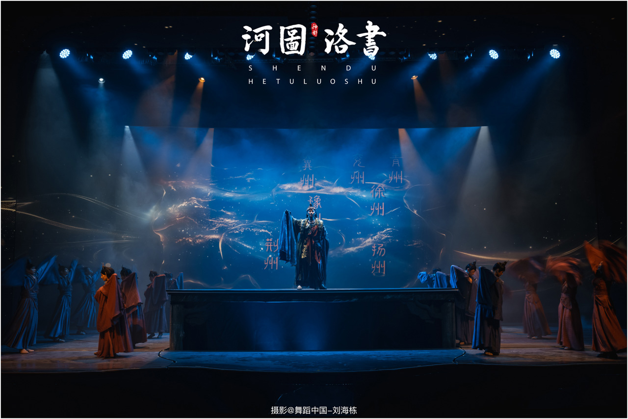 2.洛书现世:大禹治水时神龟背负的洛书纹样,与现代舞台LED屏显的数字矩阵形成科技与传统的互释;