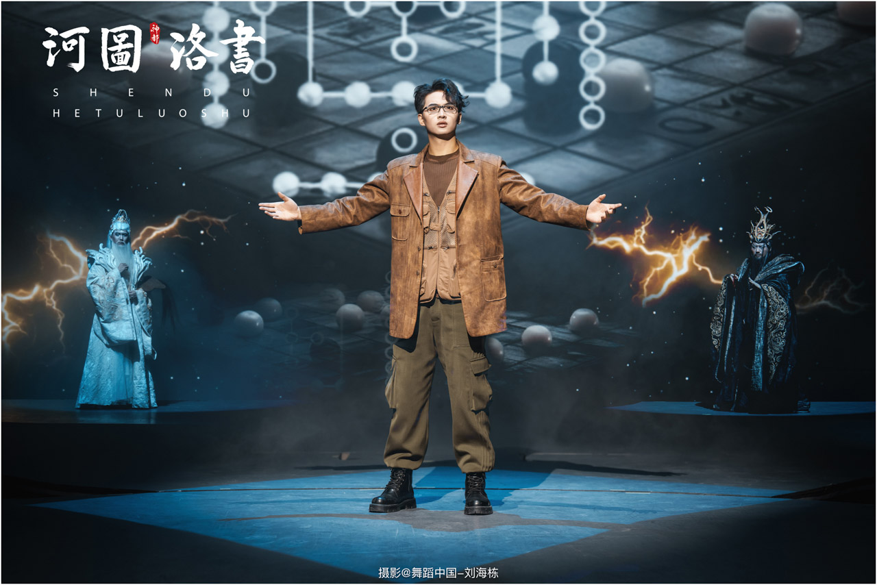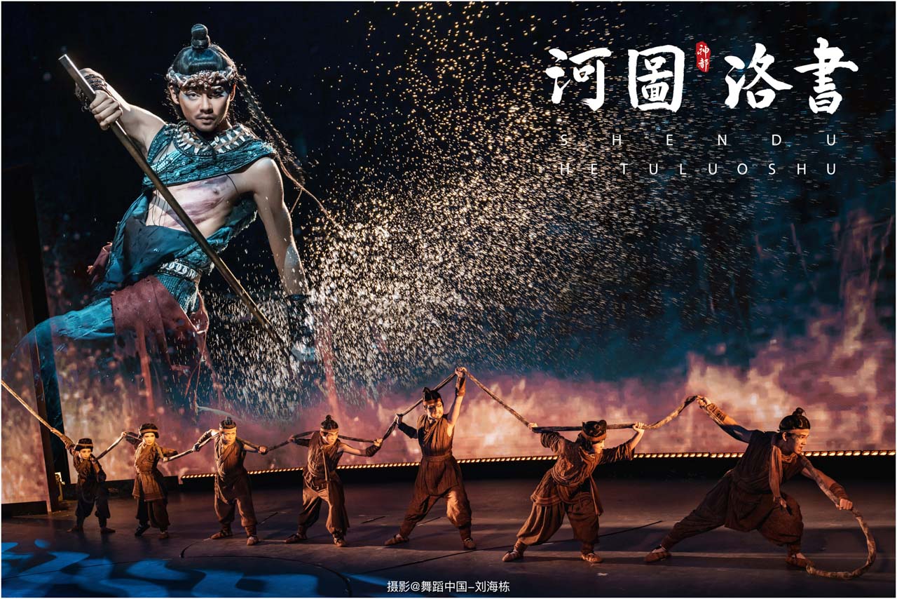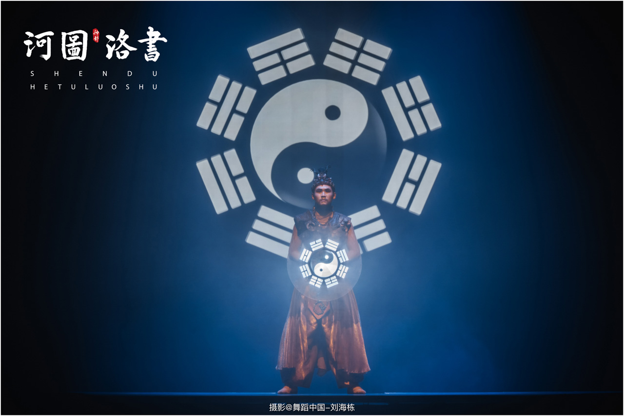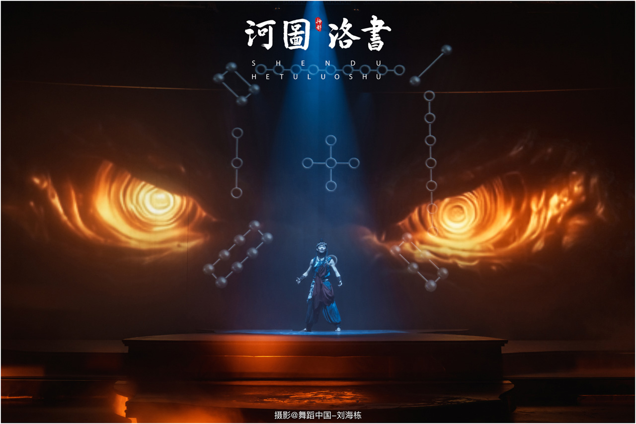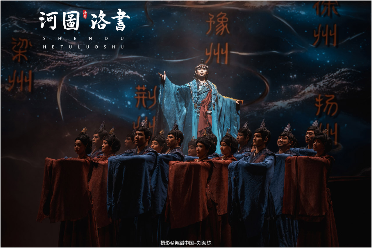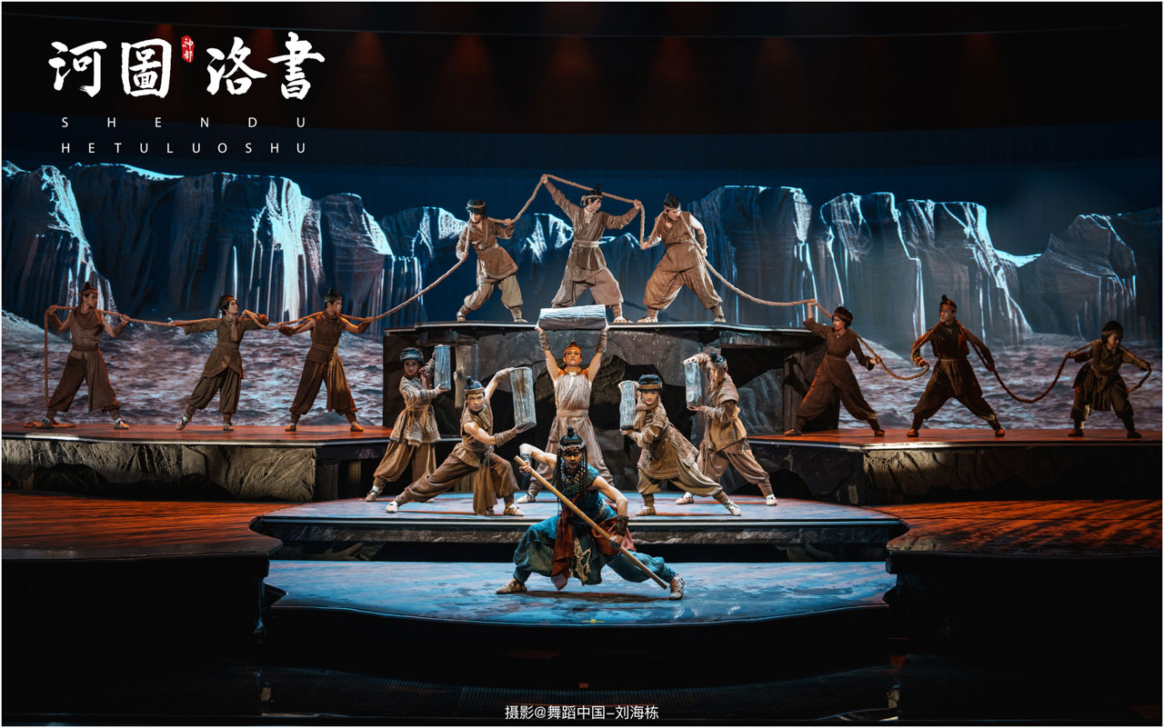 2.洛书现世:大禹治水时神龟背负的洛书纹样,与现代舞台LED屏显的数字矩阵形成科技与传统的互释;