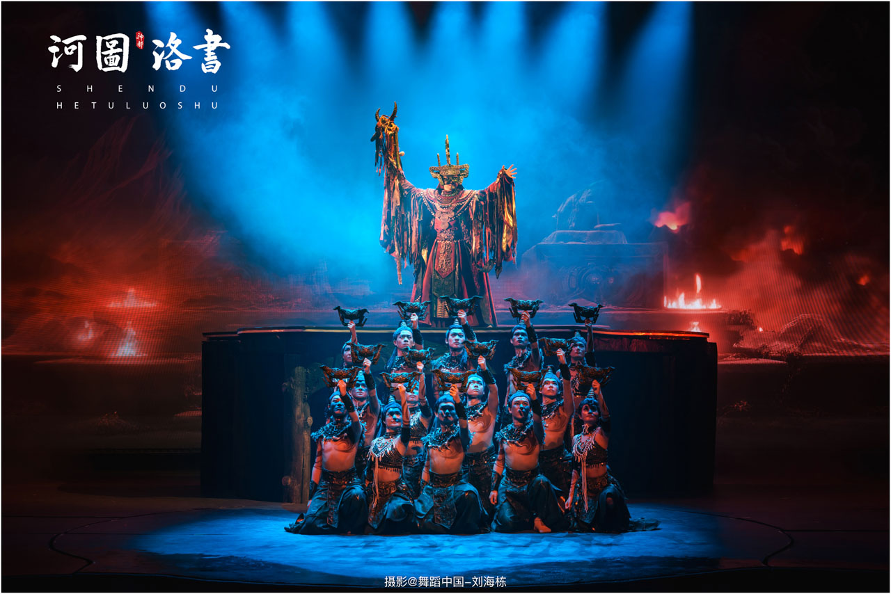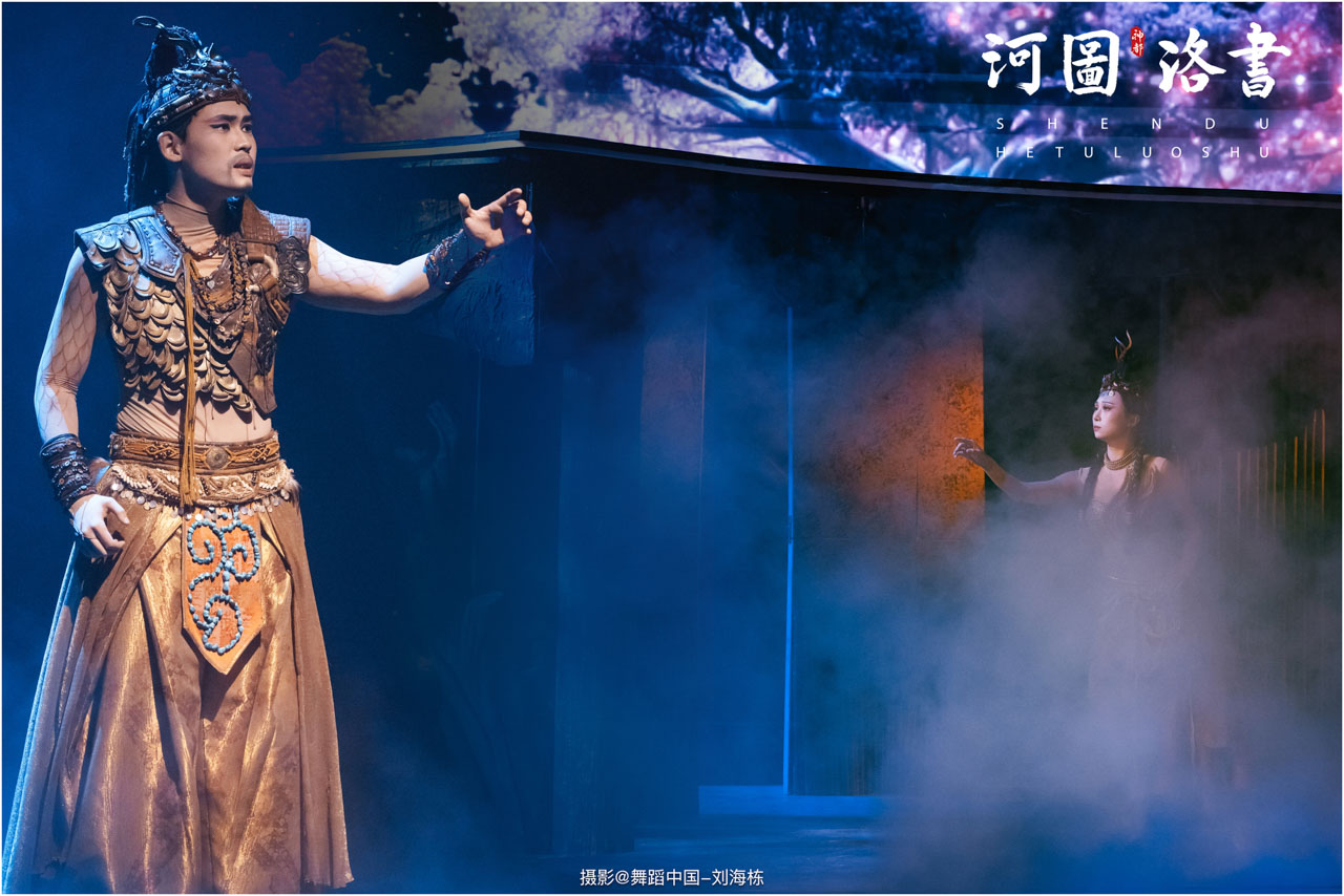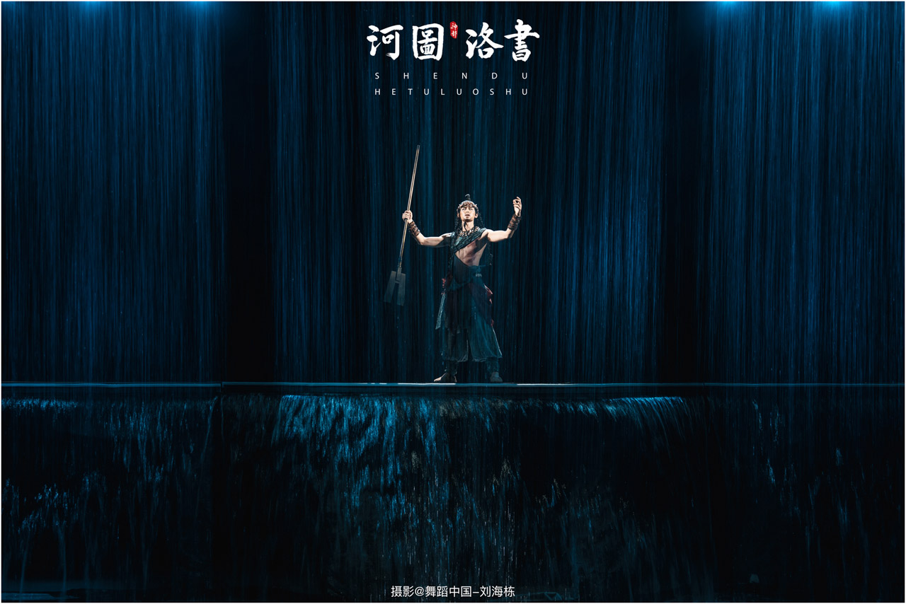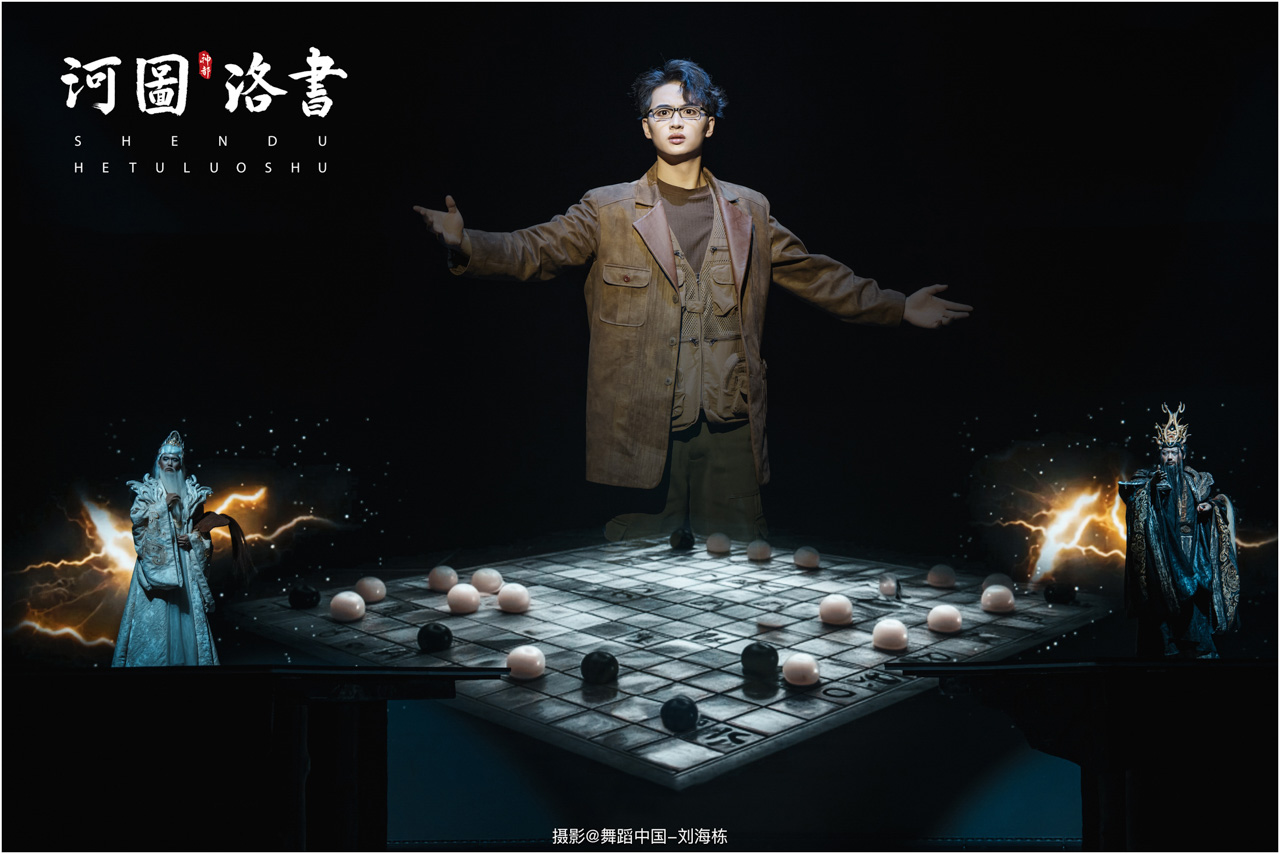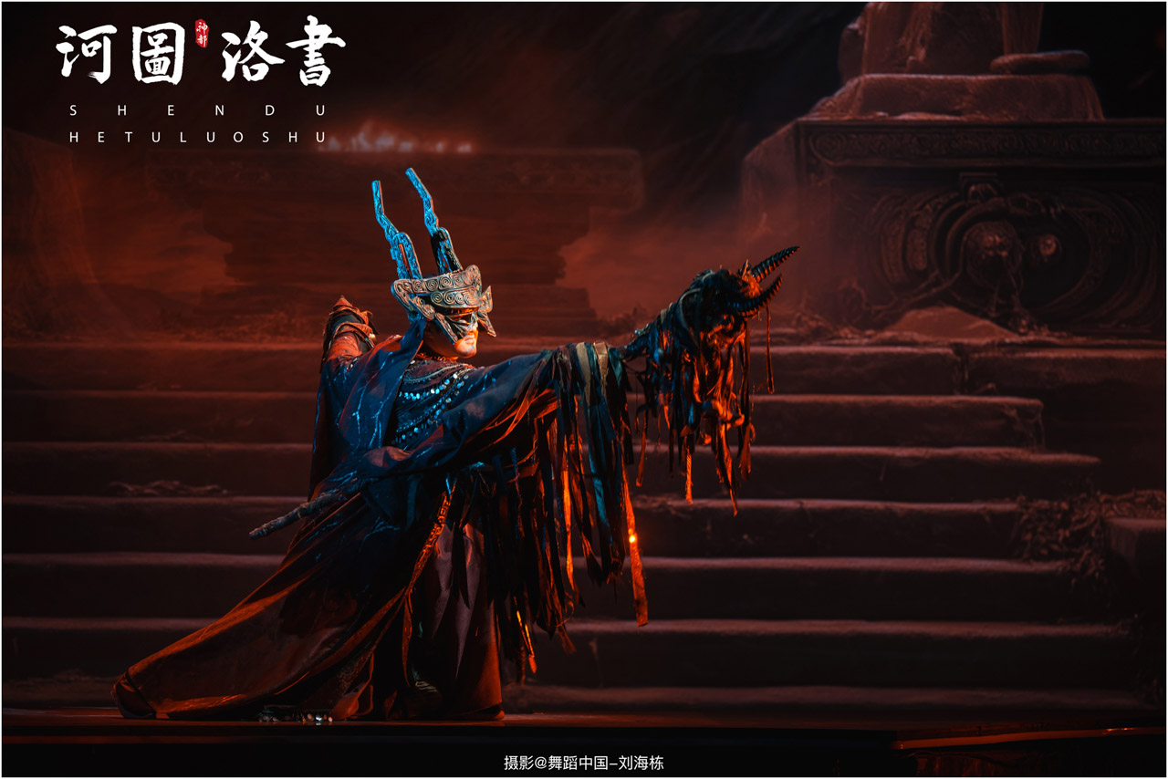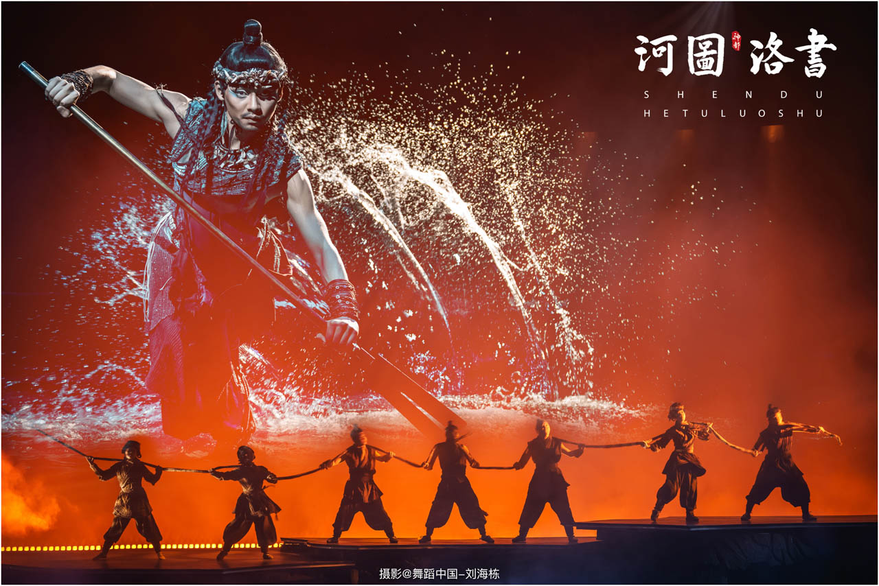 2.洛书现世:大禹治水时神龟背负的洛书纹样,与现代舞台LED屏显的数字矩阵形成科技与传统的互释;