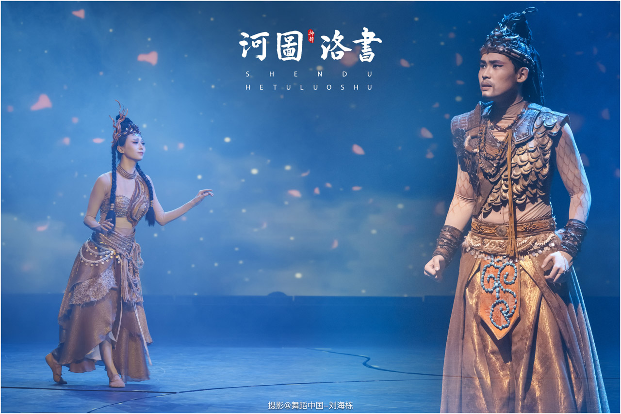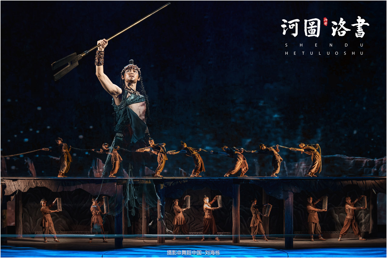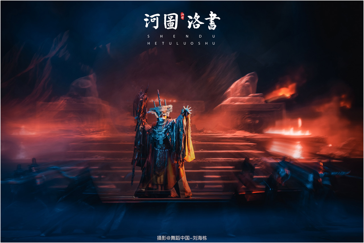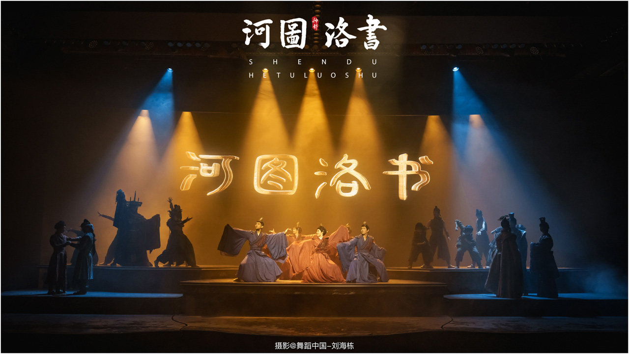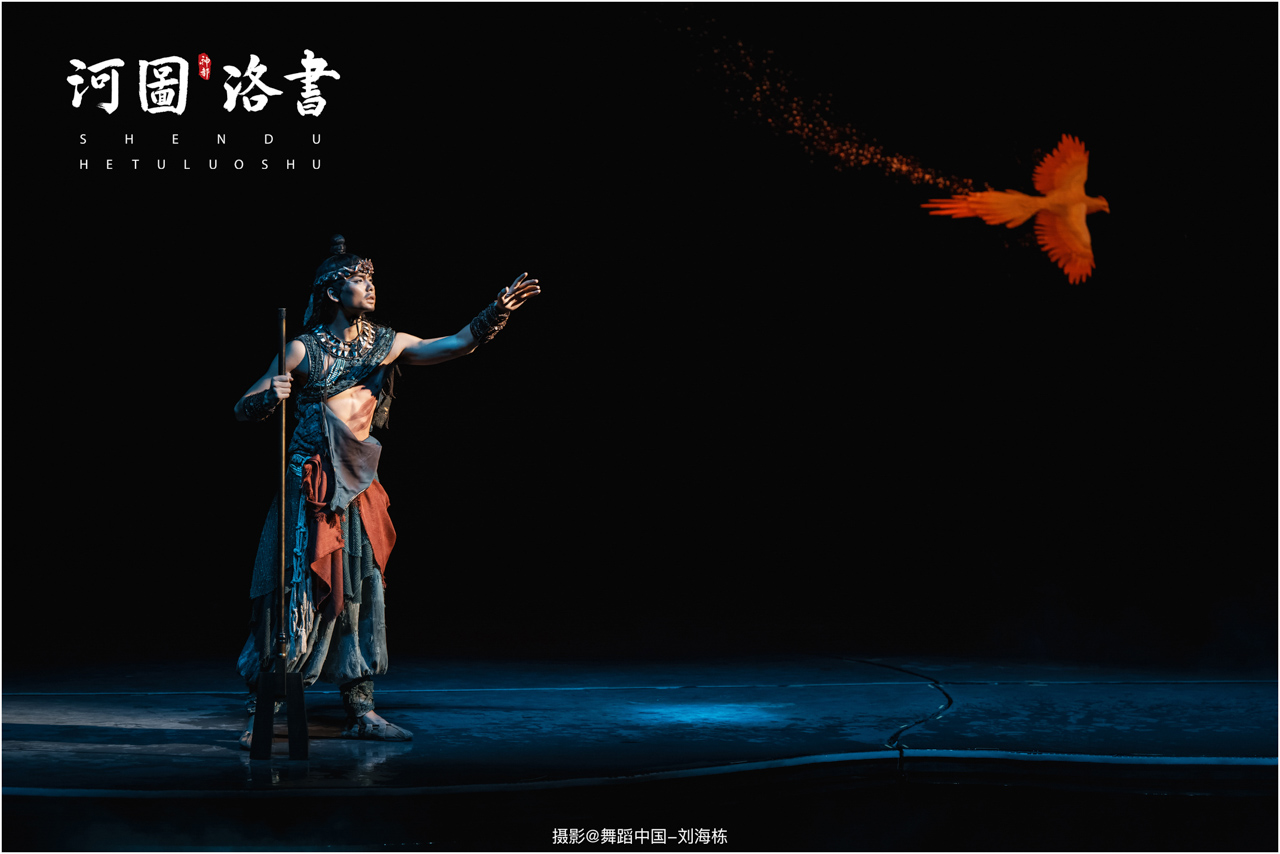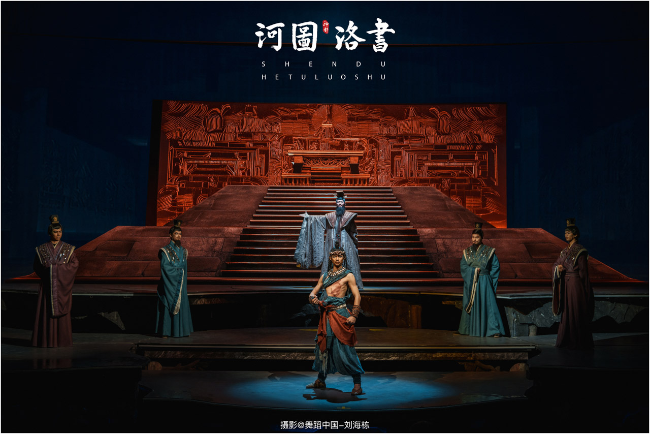 2.洛书现世:大禹治水时神龟背负的洛书纹样,与现代舞台LED屏显的数字矩阵形成科技与传统的互释;