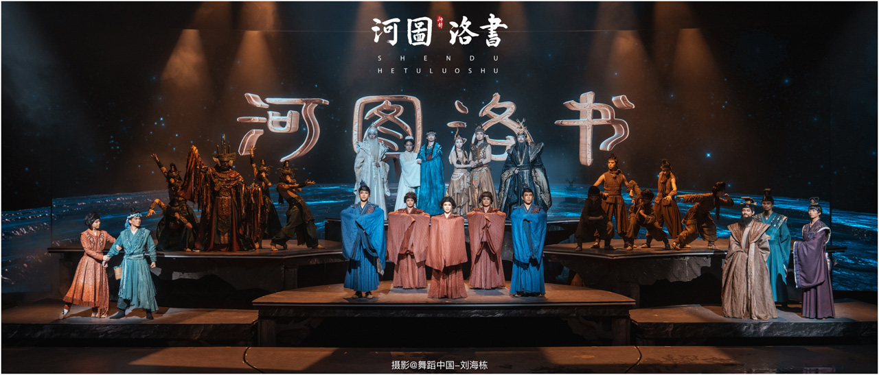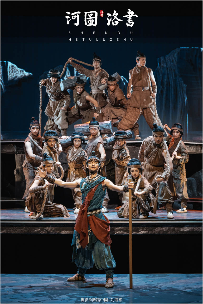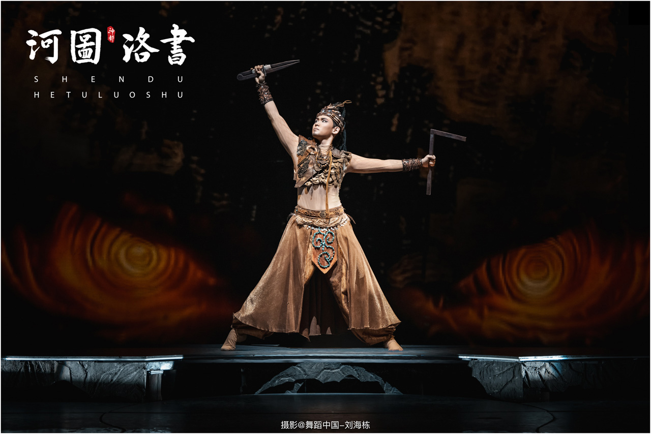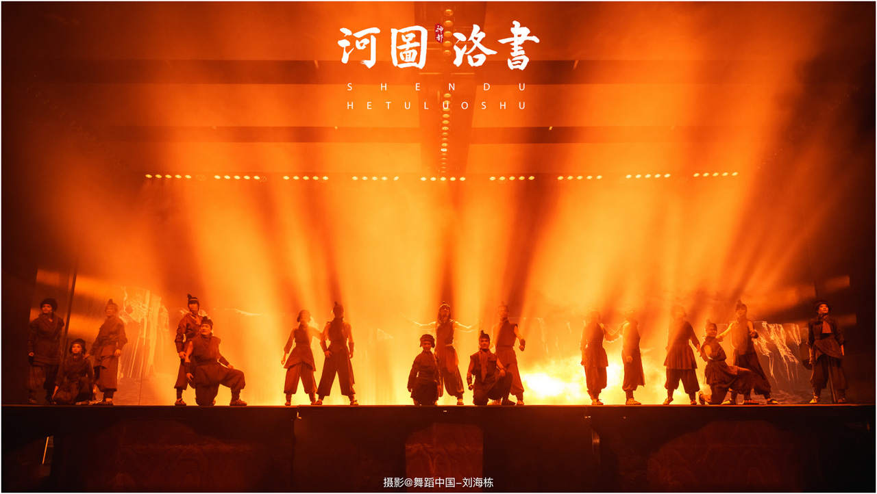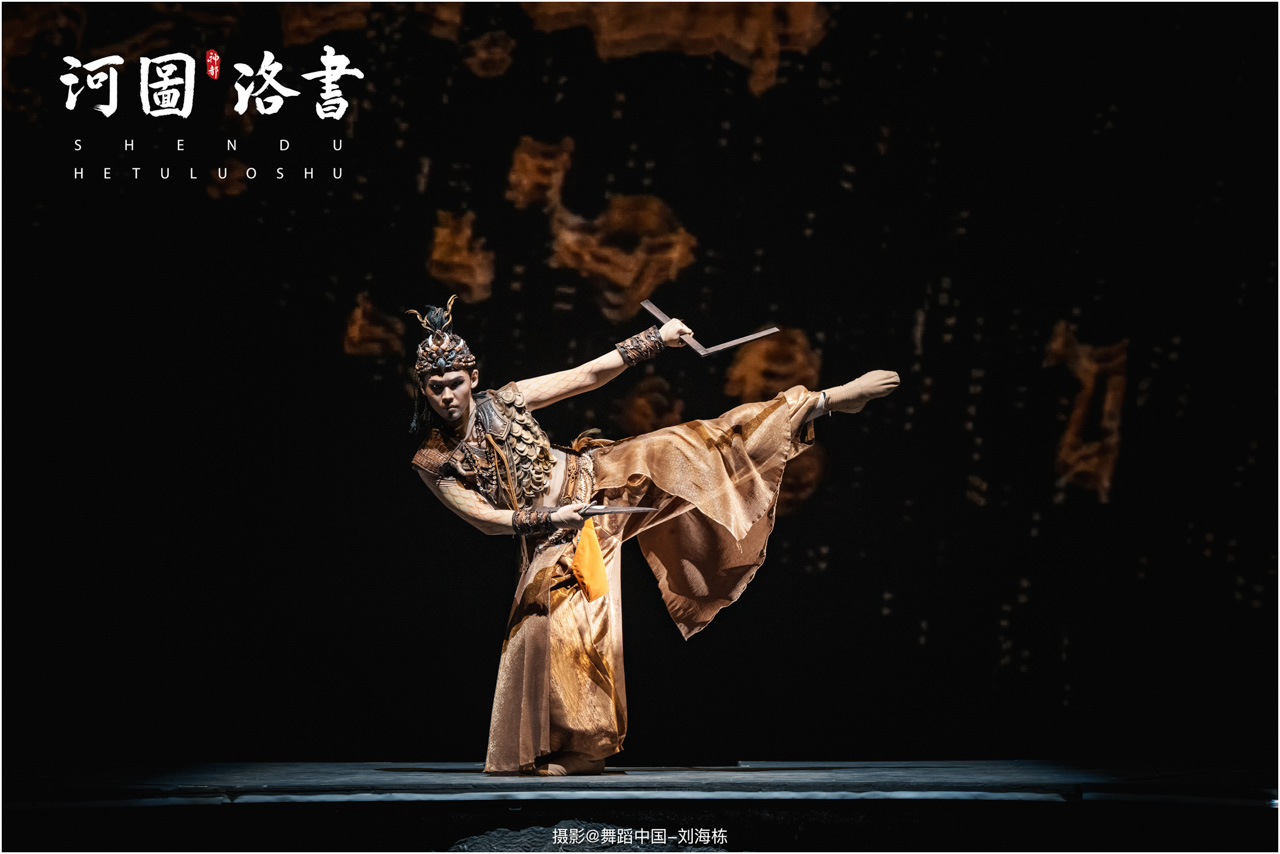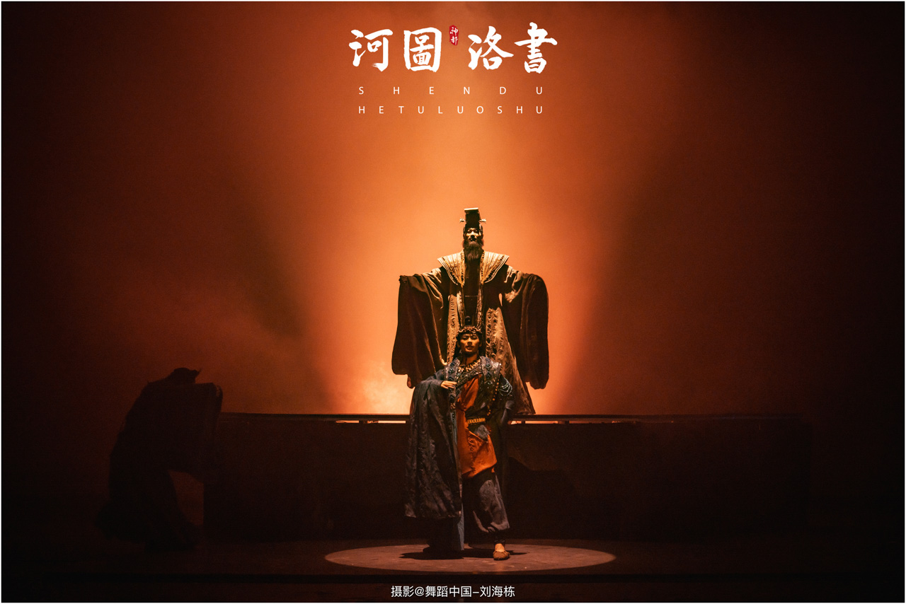 2.洛书现世:大禹治水时神龟背负的洛书纹样,与现代舞台LED屏显的数字矩阵形成科技与传统的互释;