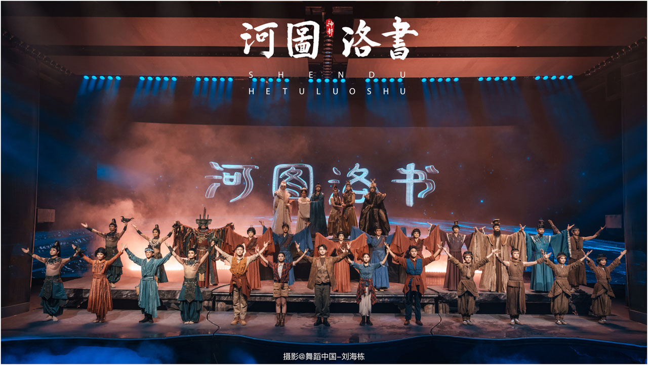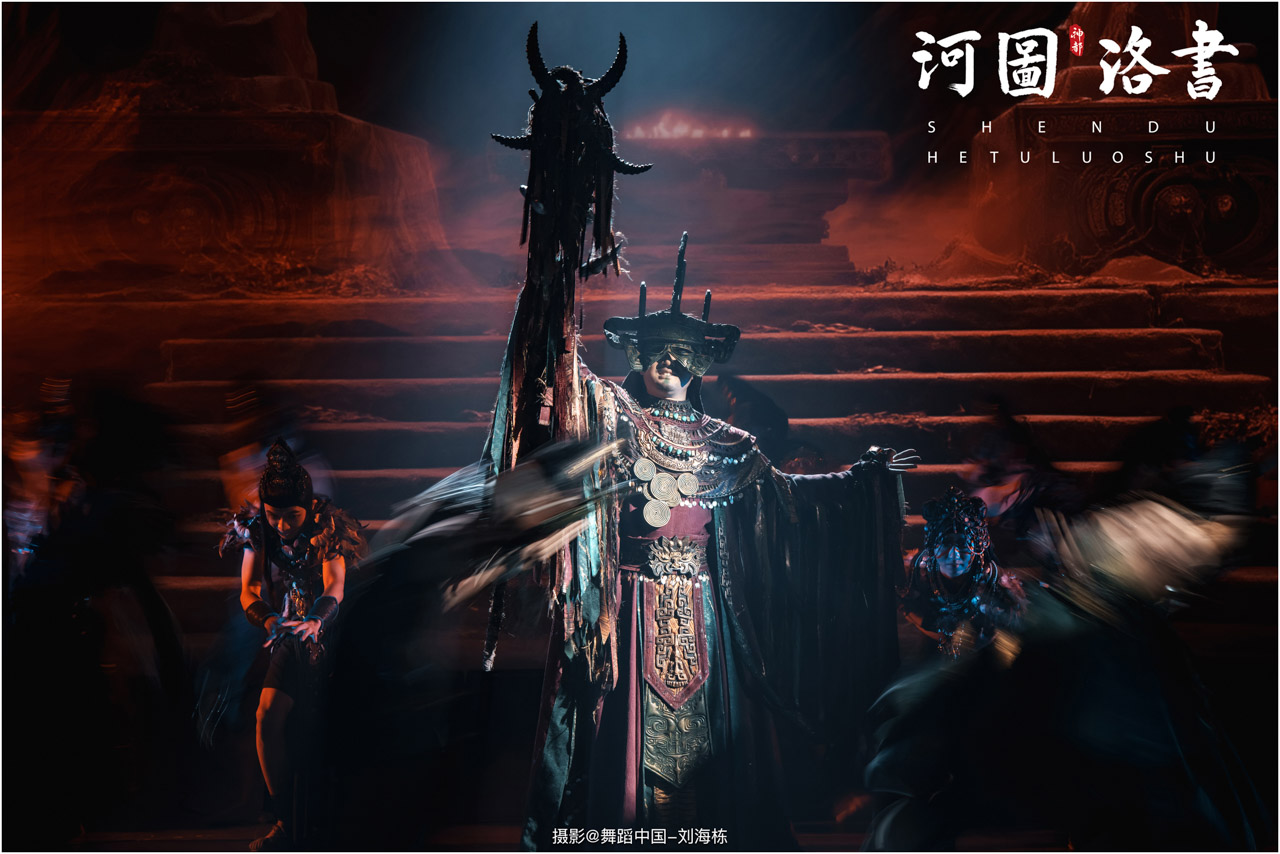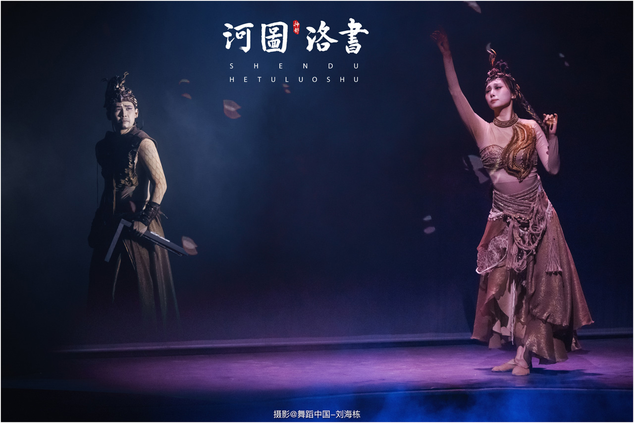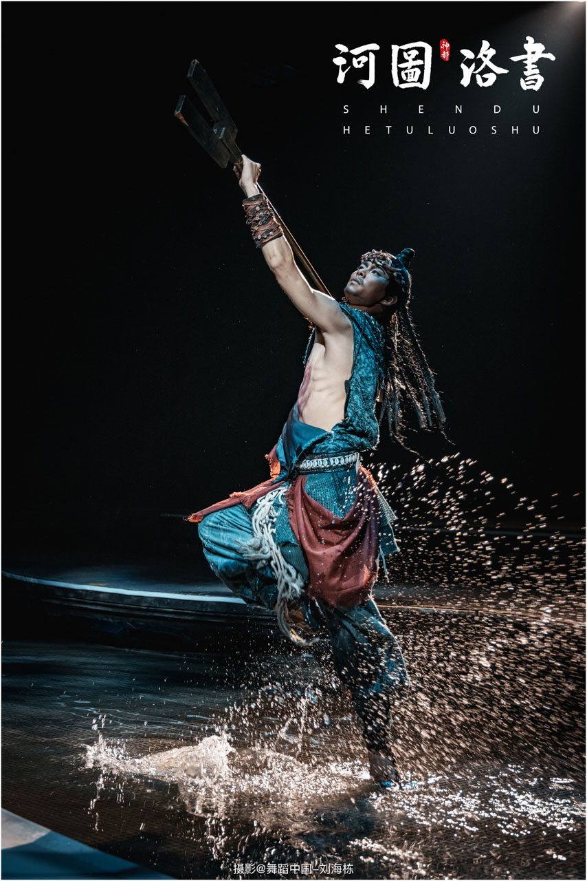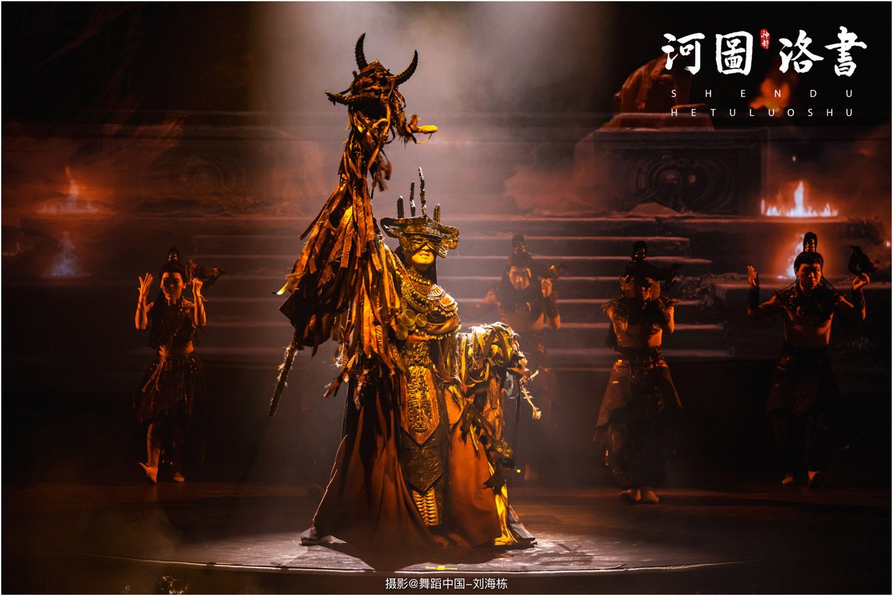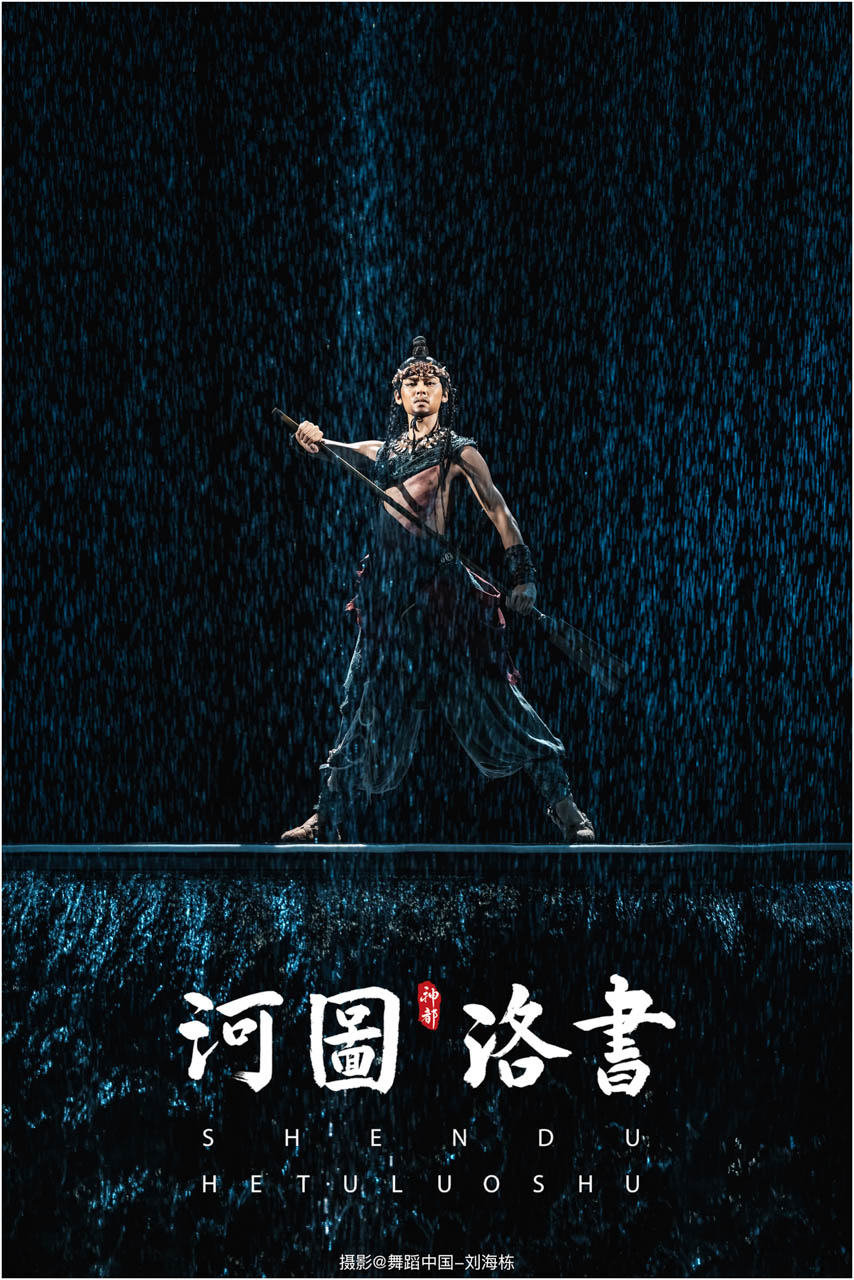 2.洛书现世:大禹治水时神龟背负的洛书纹样,与现代舞台LED屏显的数字矩阵形成科技与传统的互释;