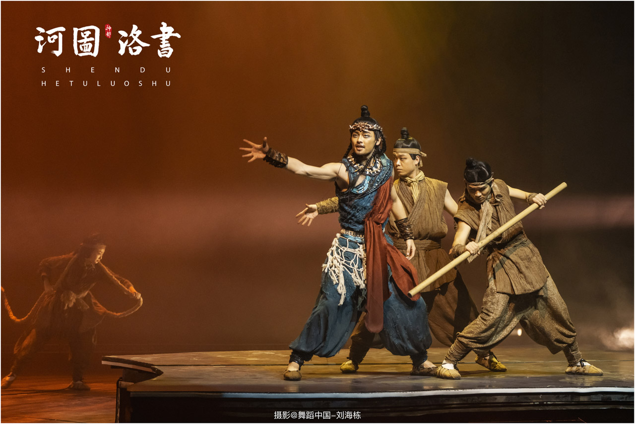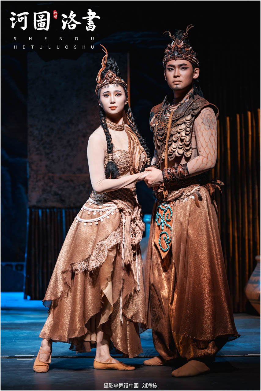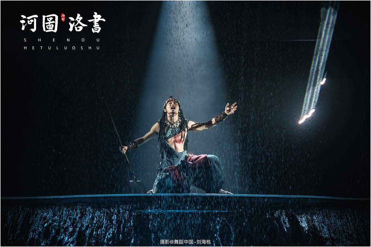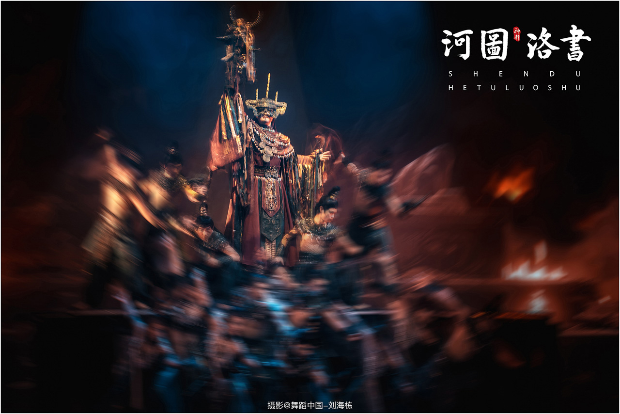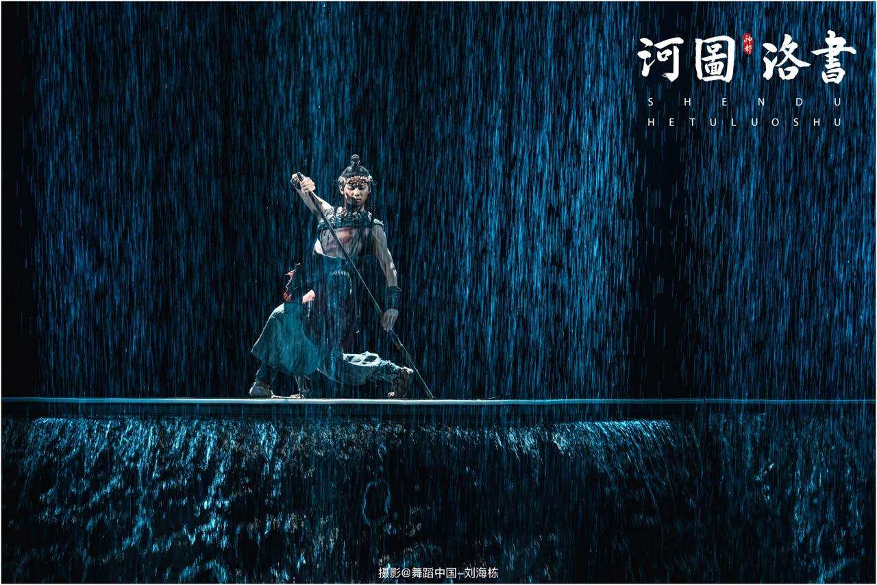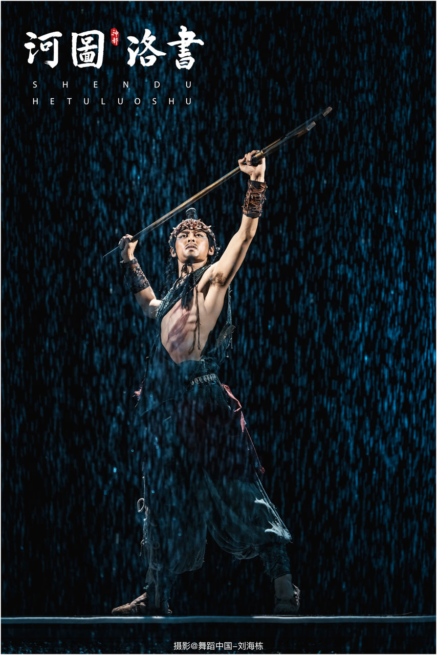 2.洛书现世:大禹治水时神龟背负的洛书纹样,与现代舞台LED屏显的数字矩阵形成科技与传统的互释;