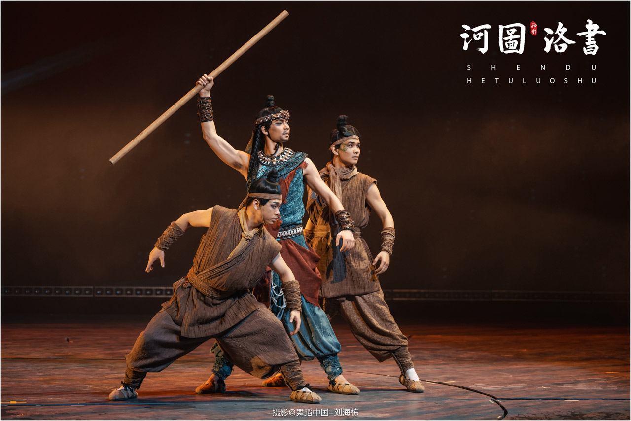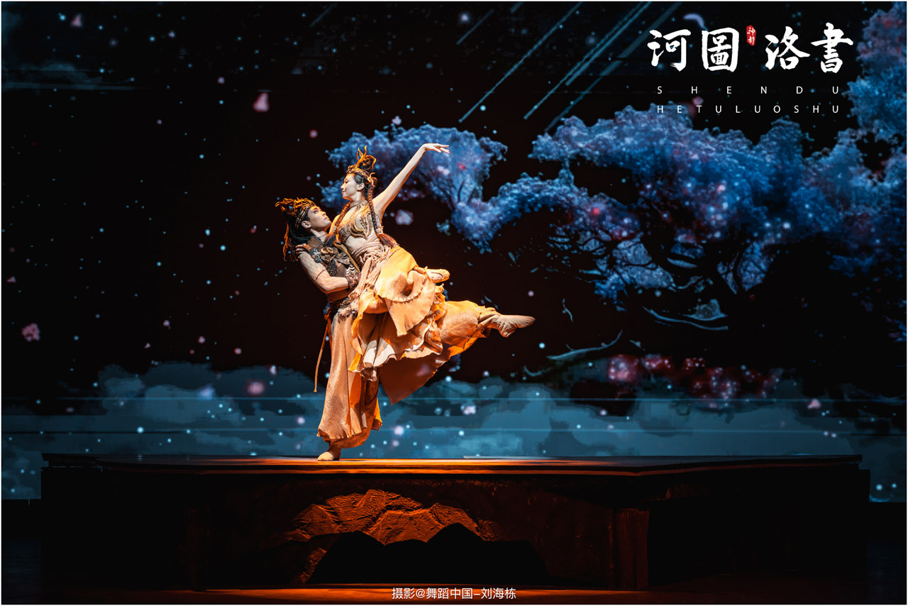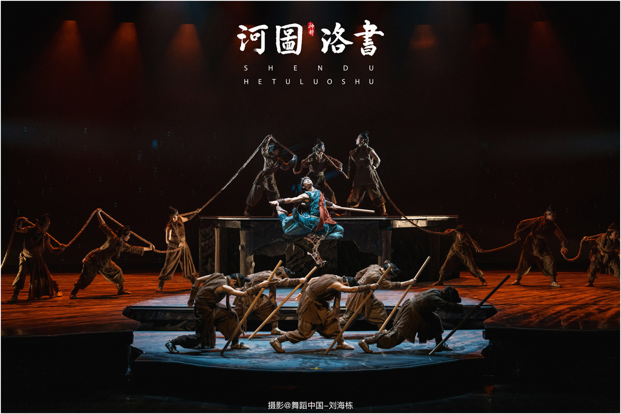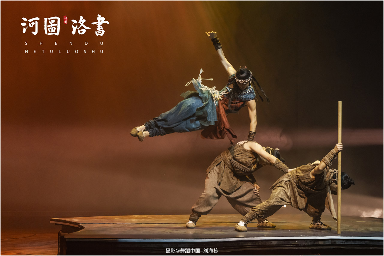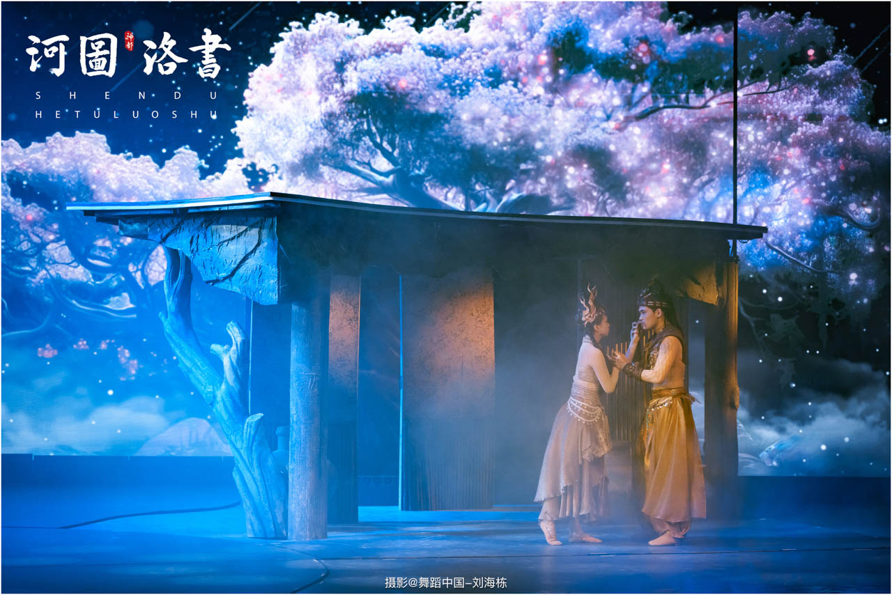 2.洛书现世:大禹治水时神龟背负的洛书纹样,与现代舞台LED屏显的数字矩阵形成科技与传统的互释;