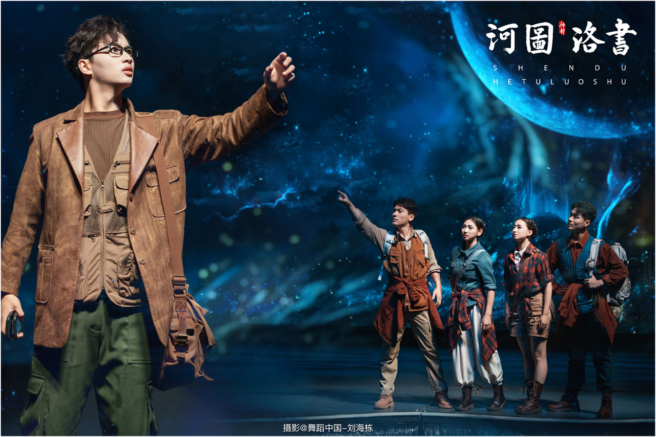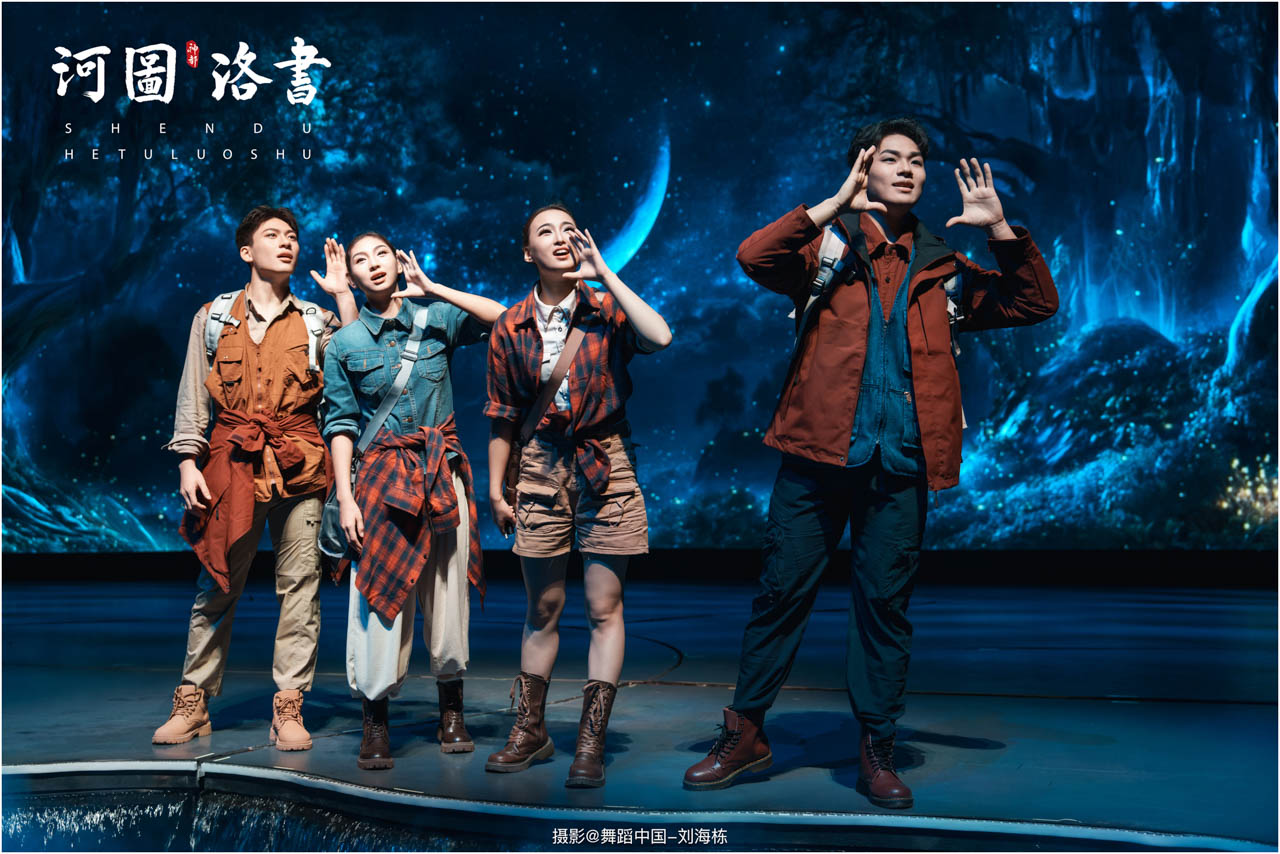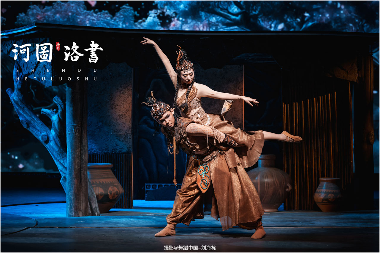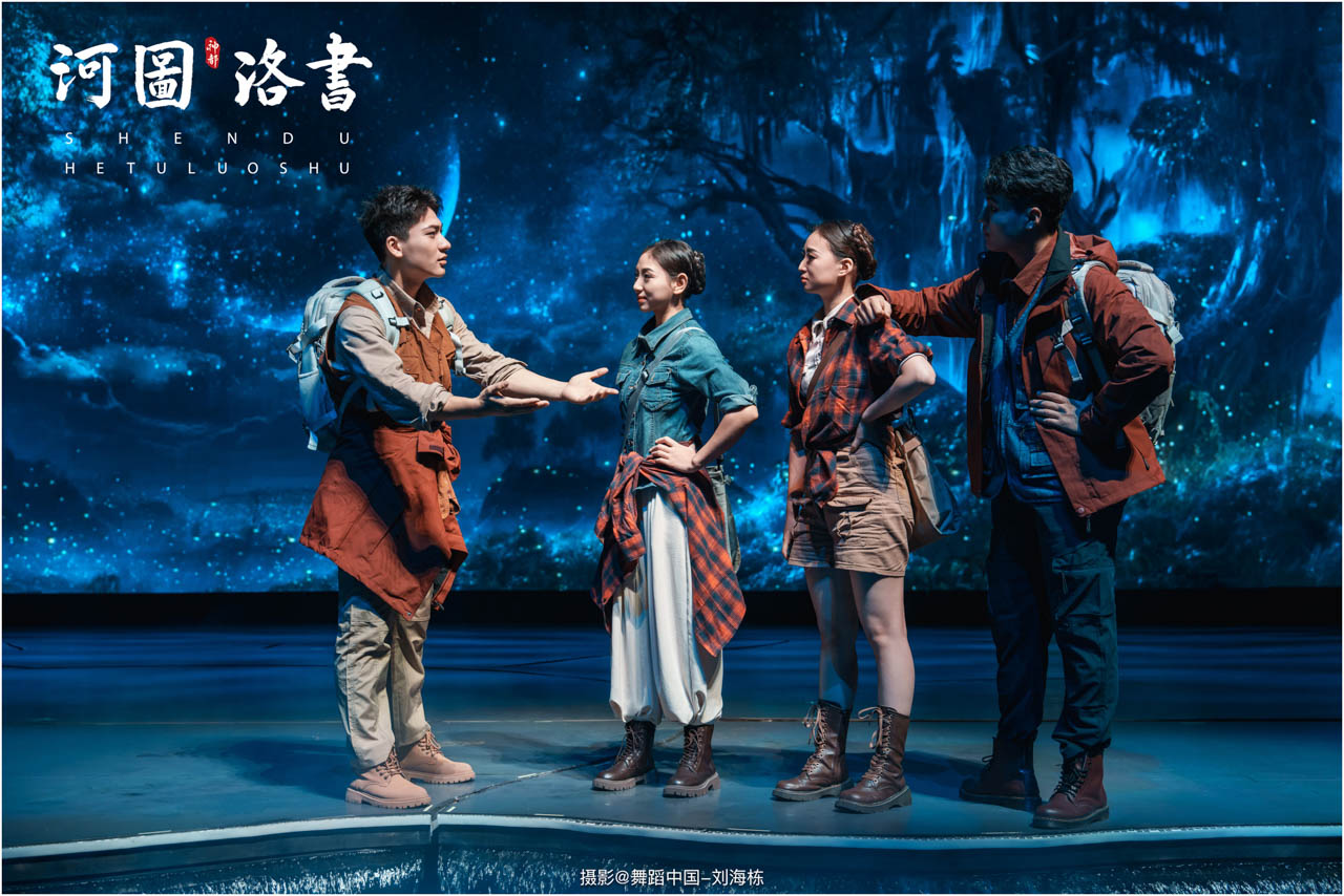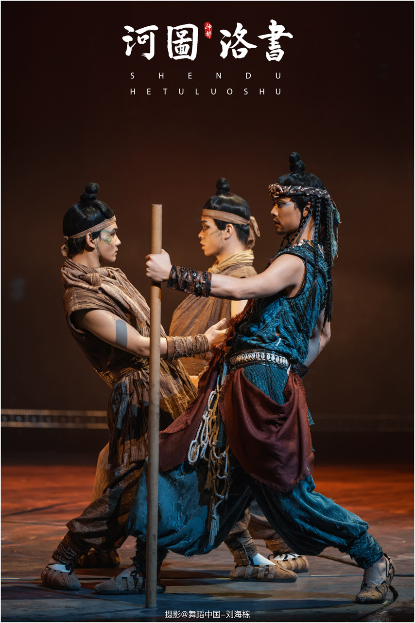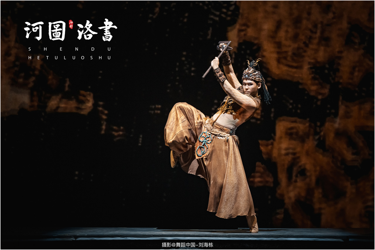 2.洛书现世:大禹治水时神龟背负的洛书纹样,与现代舞台LED屏显的数字矩阵形成科技与传统的互释;
