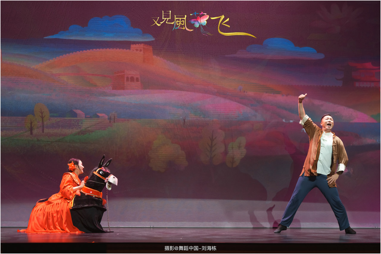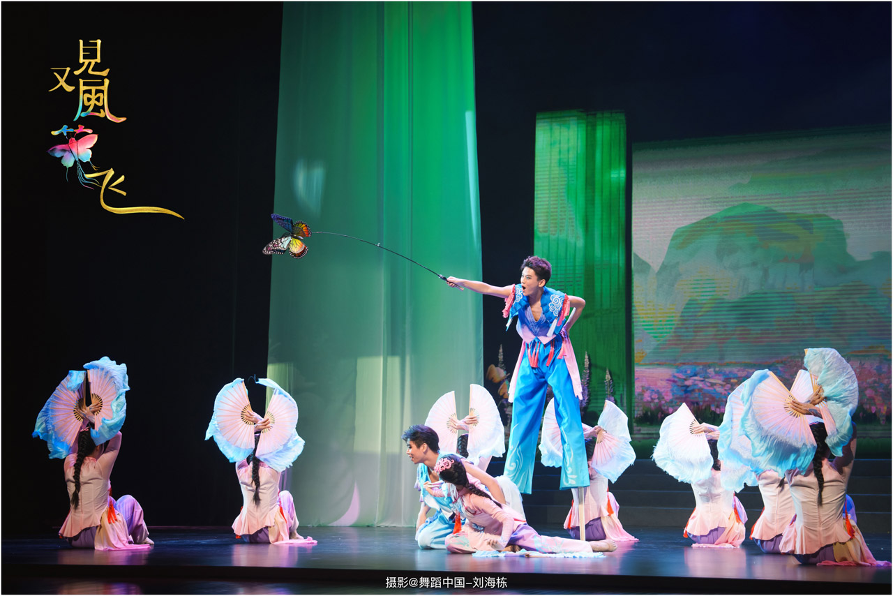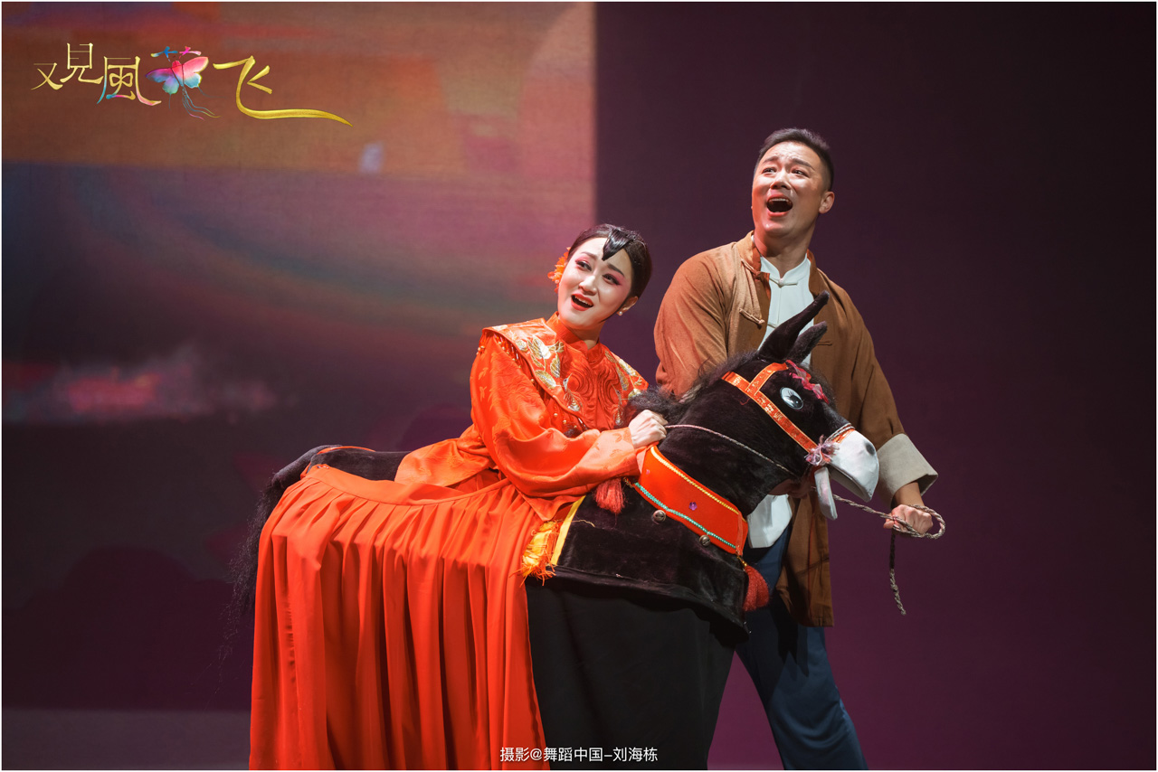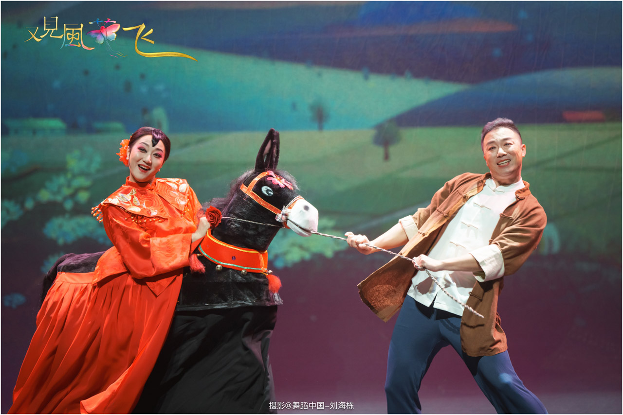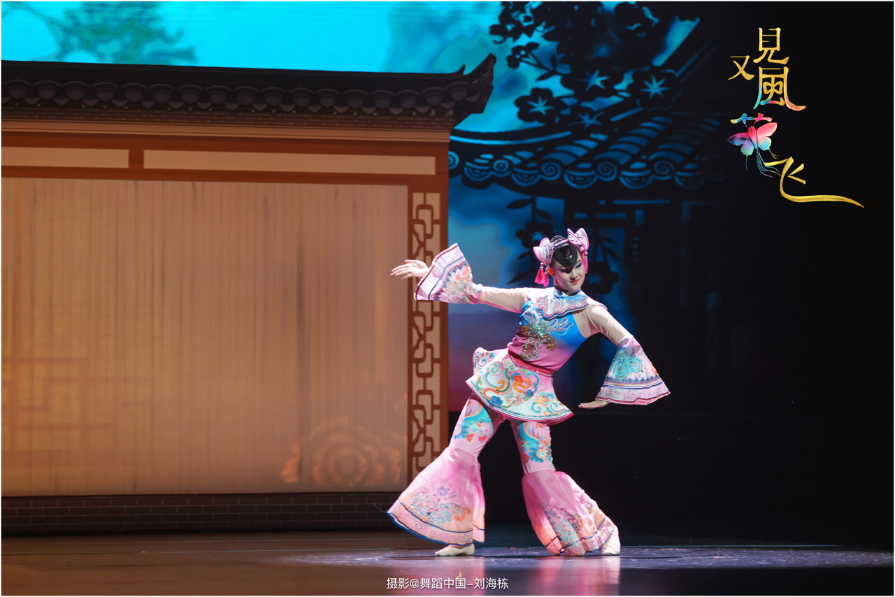蝶影惊春执扇扑流影,一扑一闪间,少女心事随蝶舞翩跹起落;芳华映趣踏跷入花雨,一追一赶里,年少悸动在秧歌俏步中荡漾绵长。