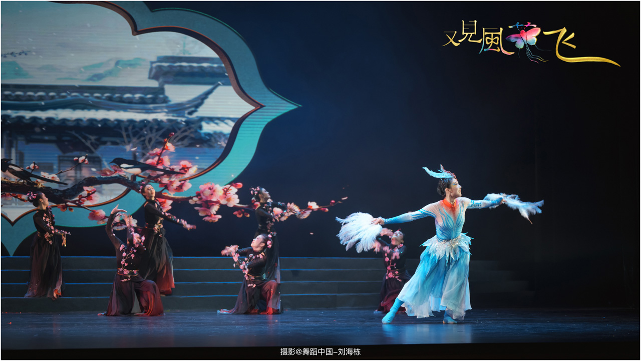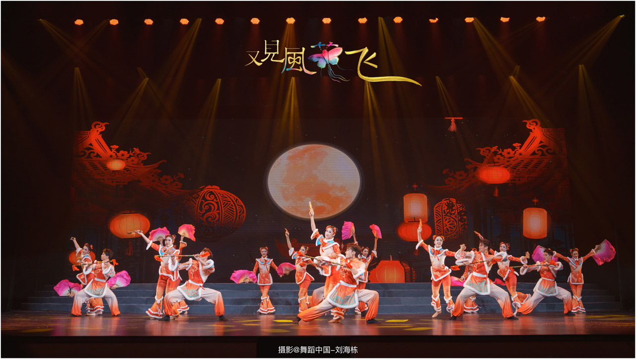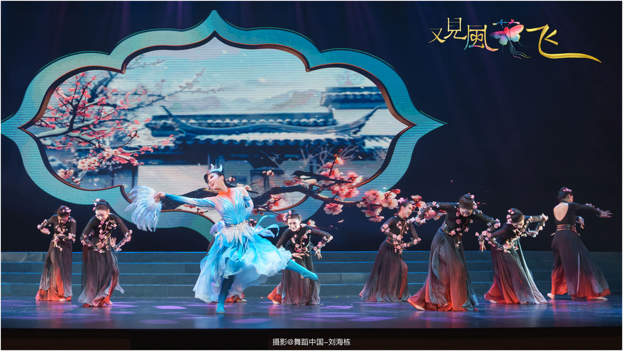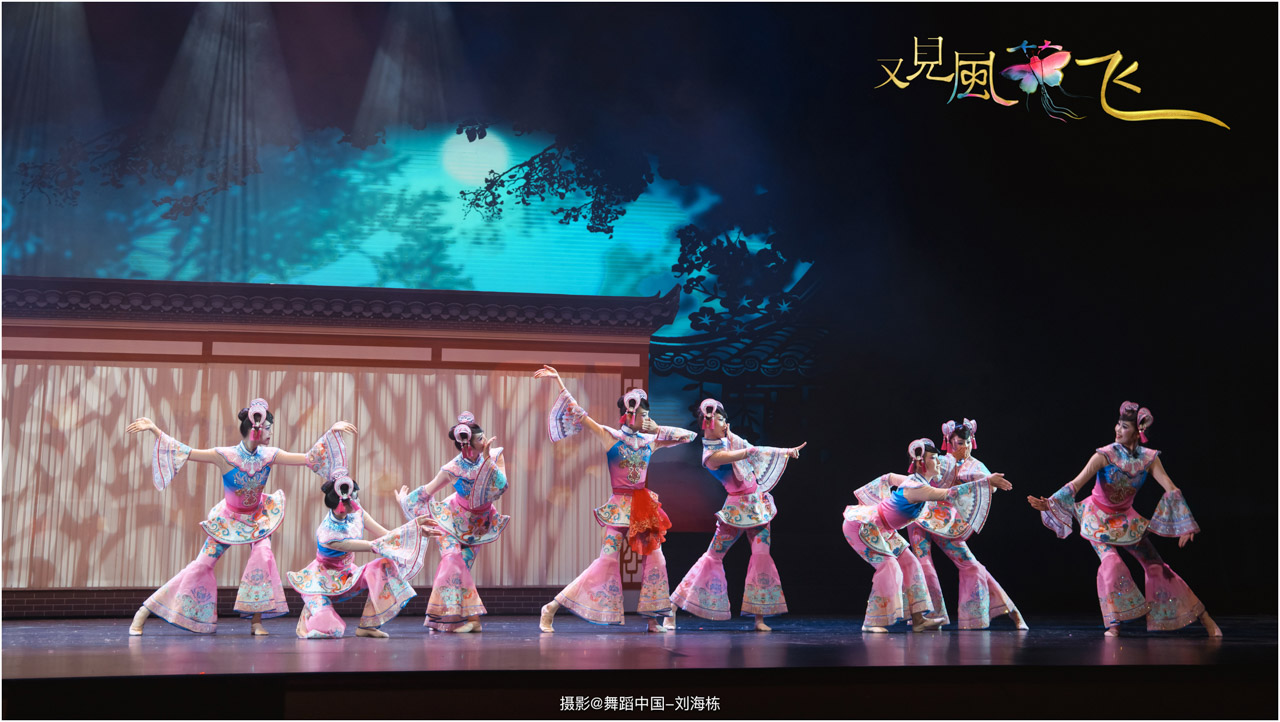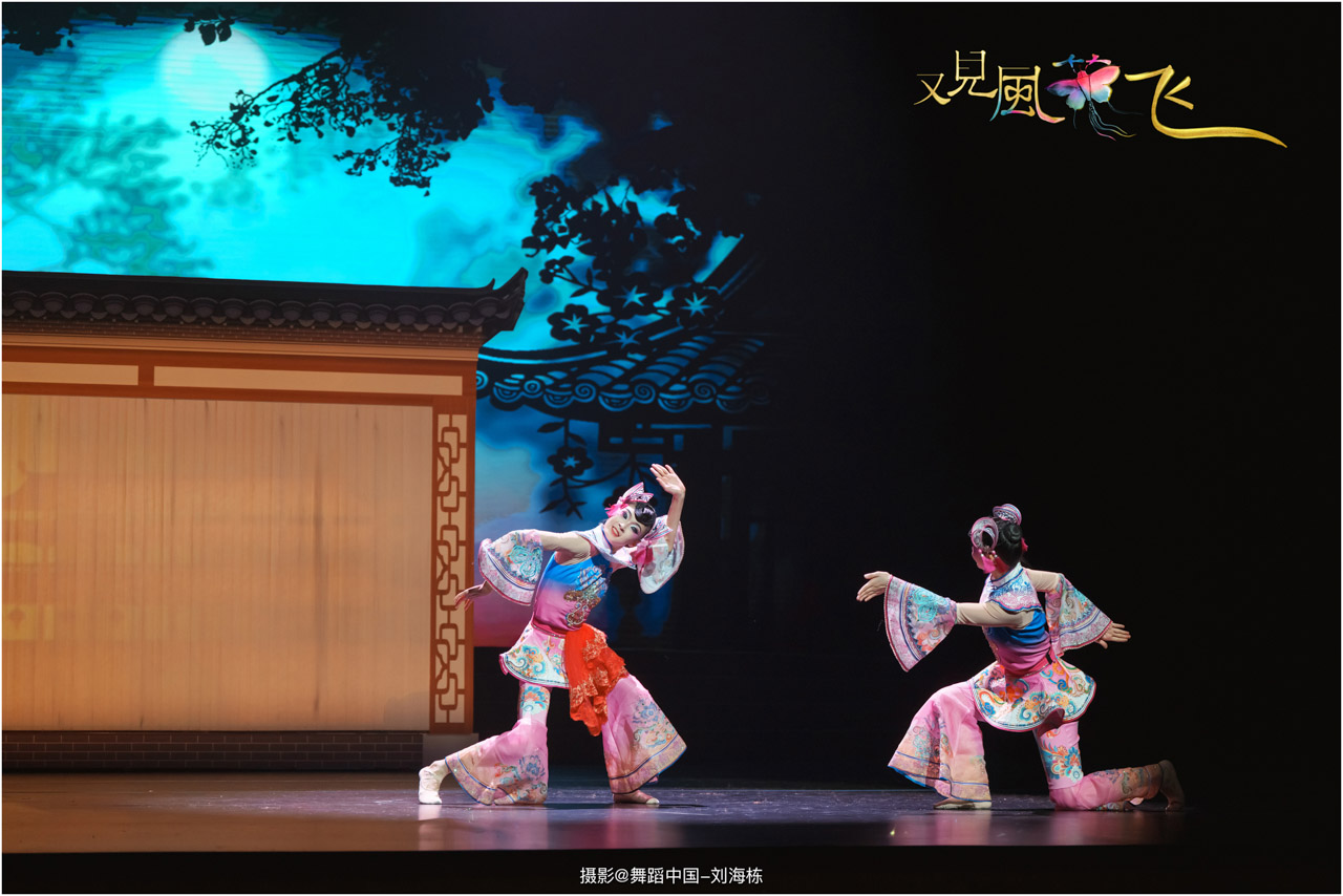蝶影惊春执扇扑流影,一扑一闪间,少女心事随蝶舞翩跹起落;芳华映趣踏跷入花雨,一追一赶里,年少悸动在秧歌俏步中荡漾绵长。