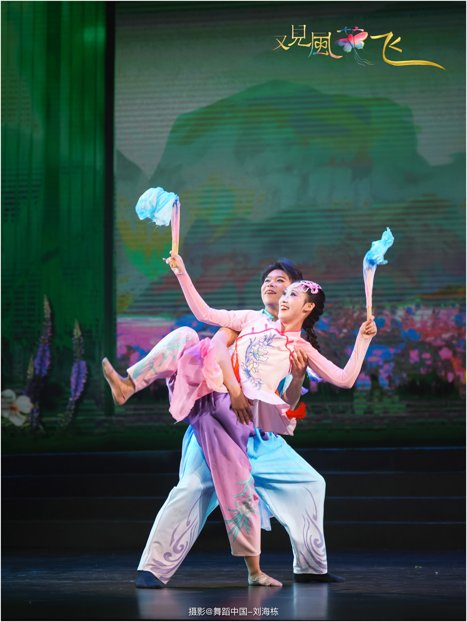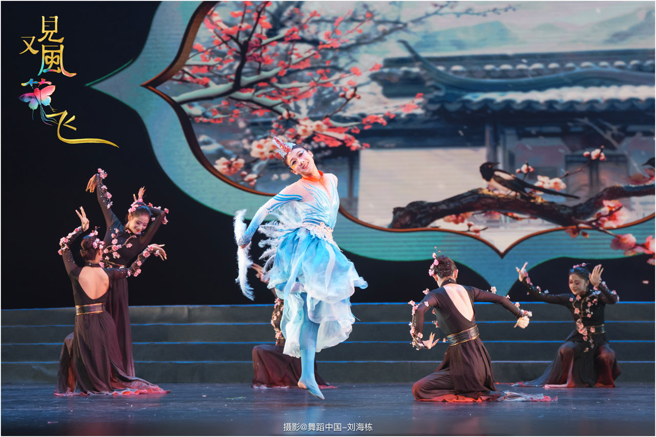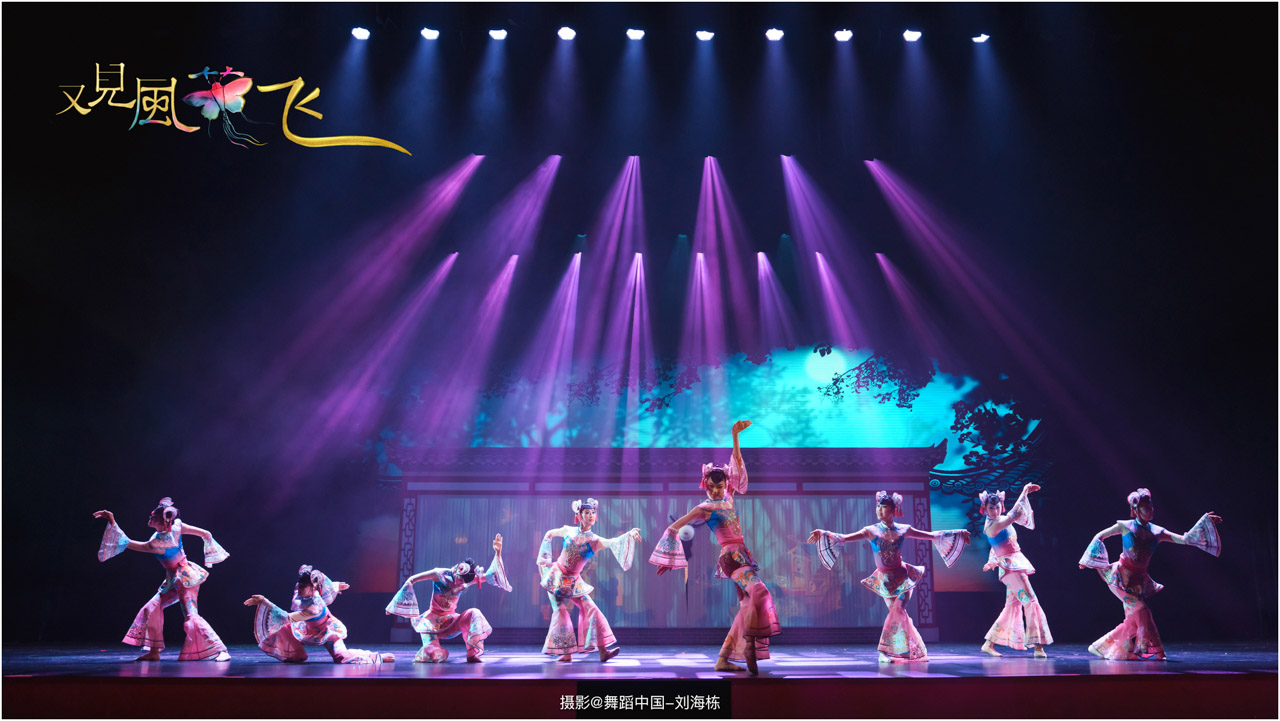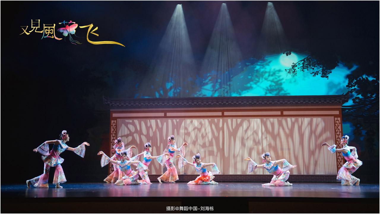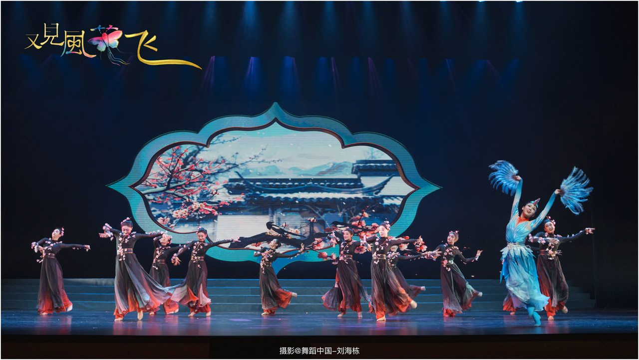 蝶影惊春执扇扑流影,一扑一闪间,少女心事随蝶舞翩跹起落;芳华映趣踏跷入花雨,一追一赶里,年少悸动在秧歌俏步中荡漾绵长。