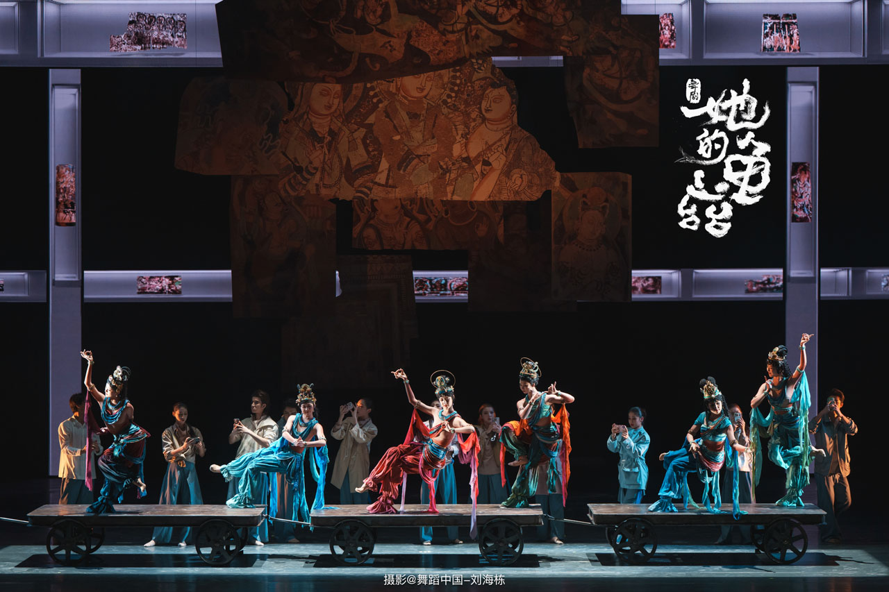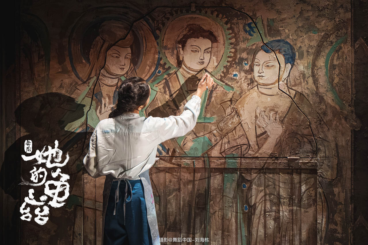 舞剧《她的龟兹》以一位现代女修复师的视角展开。当她面对残缺的龟兹壁画,试图还原最初的美好,精神却穿越时空与历史相遇。时空交错中,她目睹了龟兹昔日的盛世辉煌,也心痛地见证了外来探险家对瑰宝的切割与掠夺。历史的创伤成为她个人的执念,驱使她踏上追寻的旅程。她与热爱龟兹的人们情感共鸣,与探险家思想交锋,描摹的指尖仿佛历史的叩问,在无言的仪式中完成对文明伤痕的深刻疗愈。这不仅是一次文物的回归想象,更是“她”对我们每一个人的灵魂追问,让龟兹之美重新照耀人心。