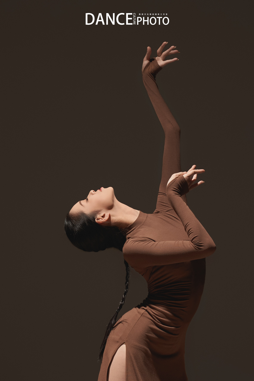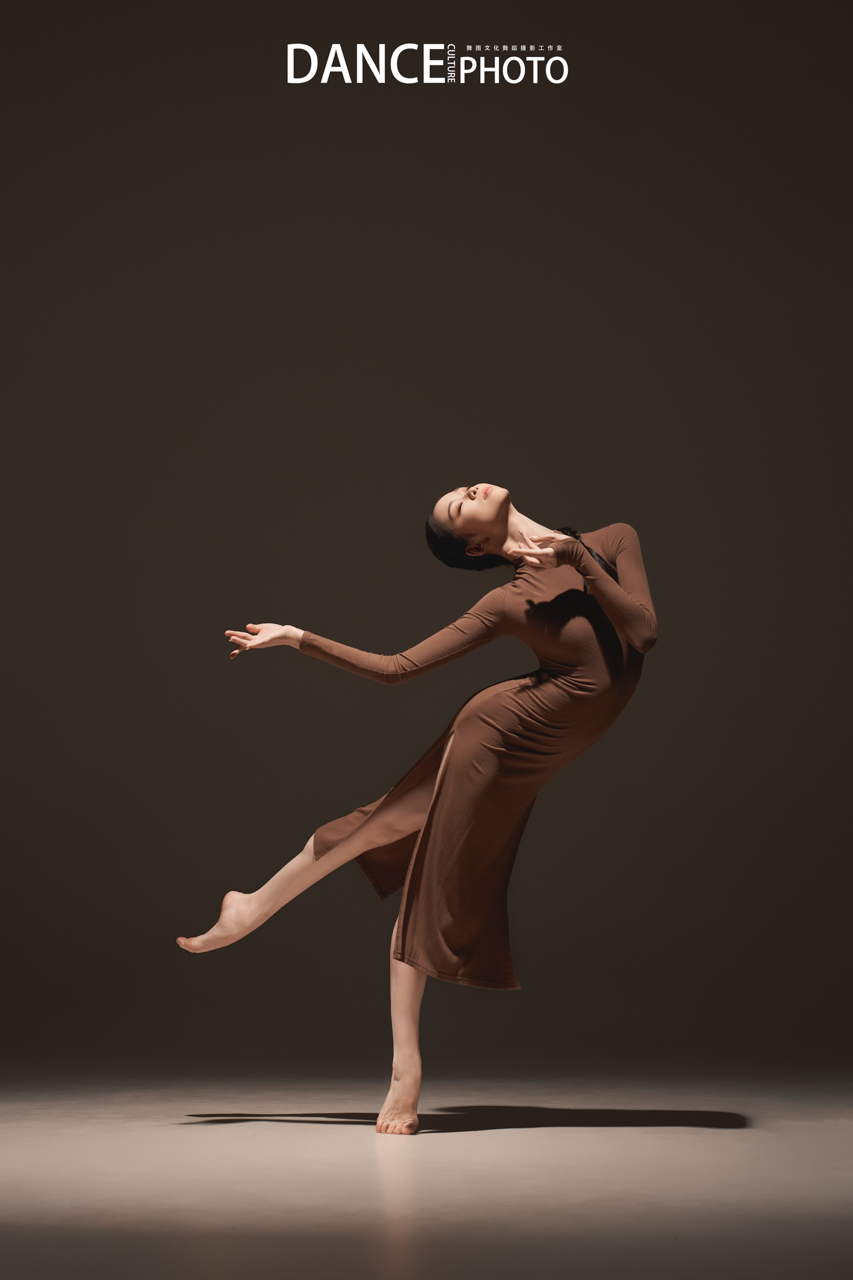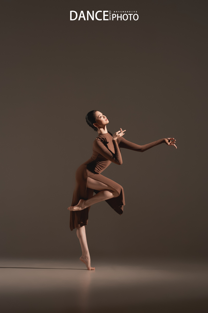 针织旗袍本身贴合身体,清晰展现背部挺直、手臂延伸、腿部发力等充满力量感的线条。特写这需要舞者对身体极致的控制力(核心稳定,动作精准),以及摄影师对“力与形”的敏锐捕捉—— 在动作的爆发点或延伸的极限瞬间精准预判和高速捕捉。