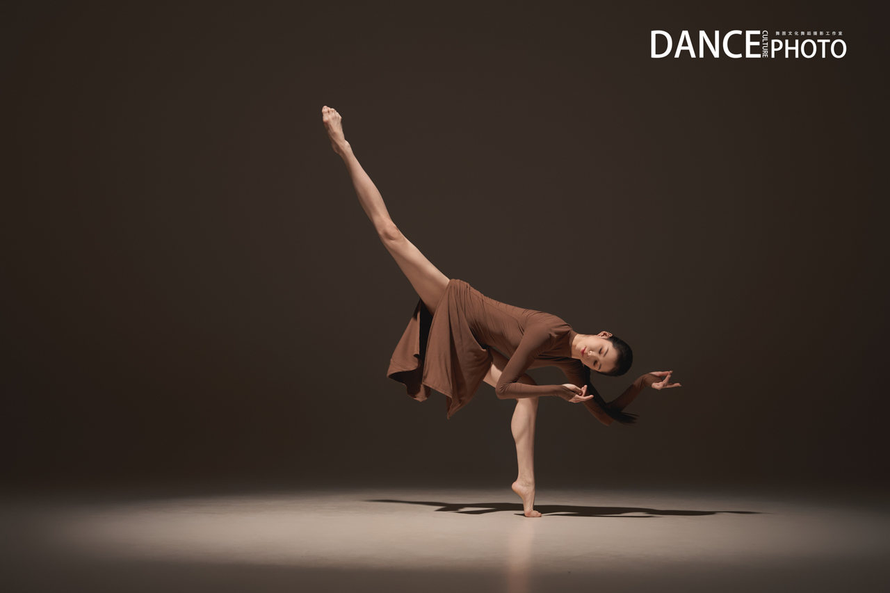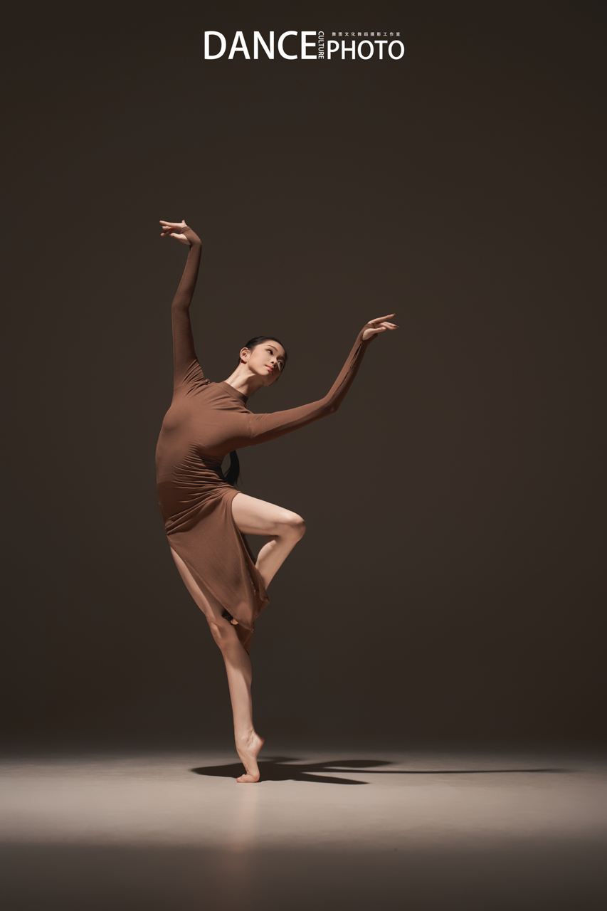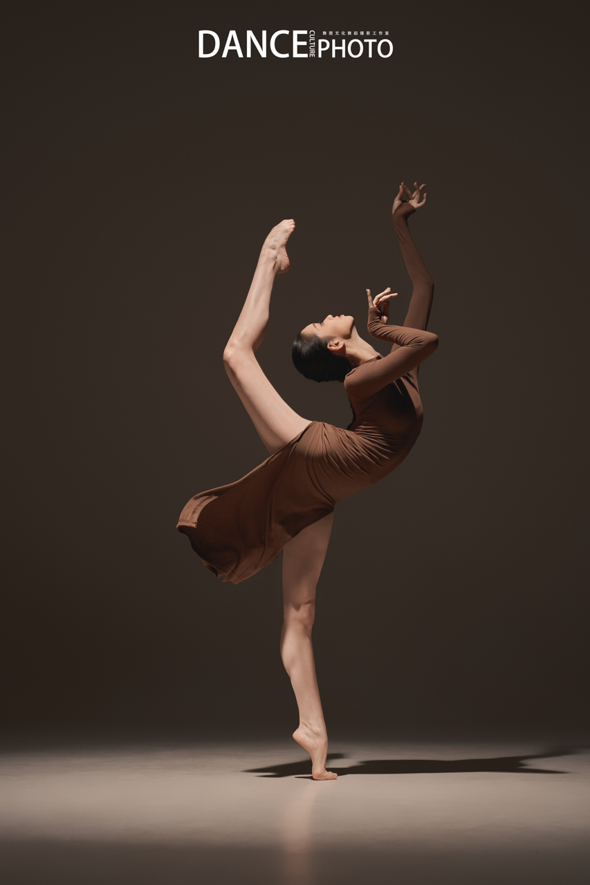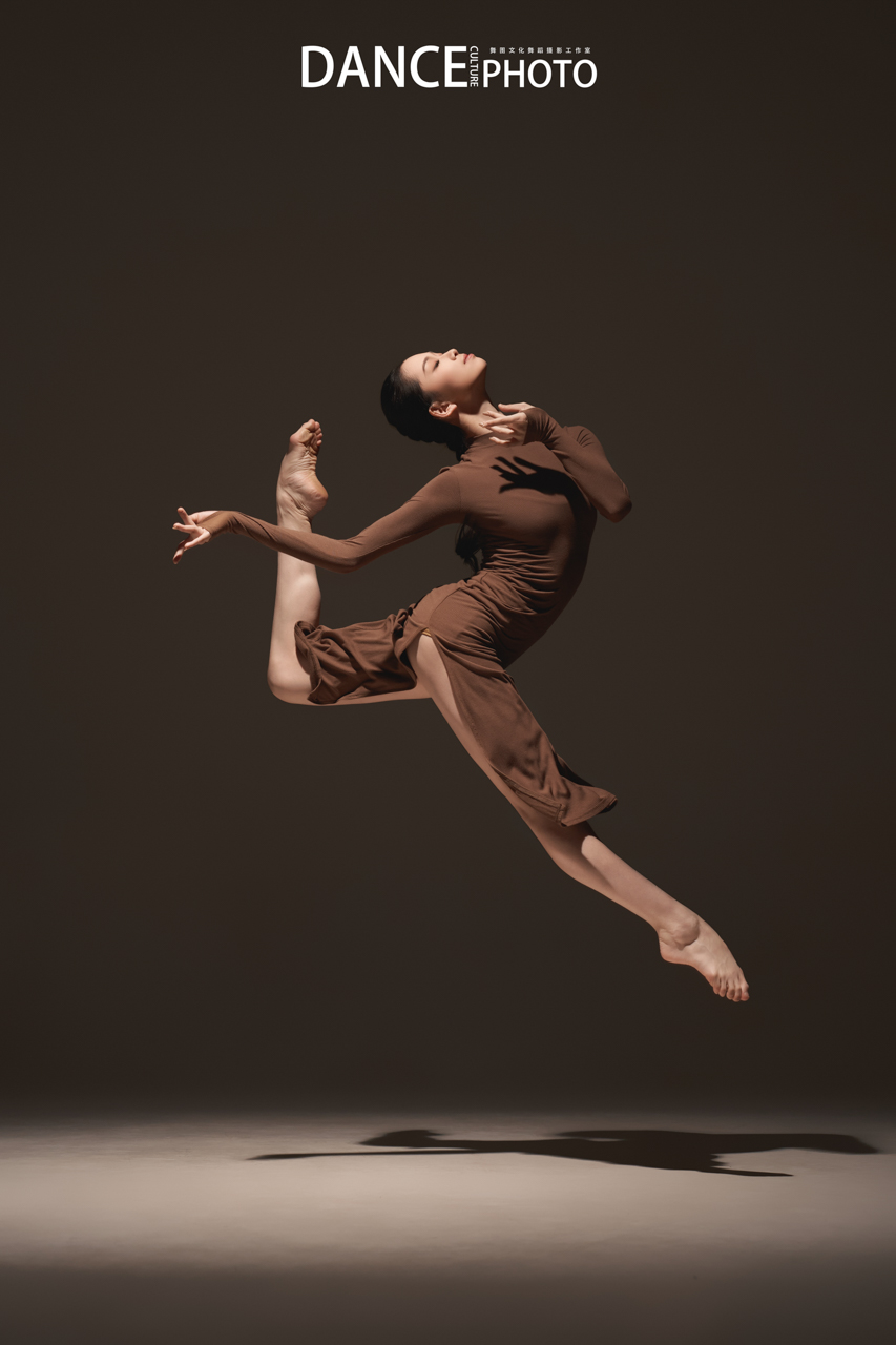 针织旗袍本身贴合身体,清晰展现背部挺直、手臂延伸、腿部发力等充满力量感的线条。特写这需要舞者对身体极致的控制力(核心稳定,动作精准),以及摄影师对“力与形”的敏锐捕捉—— 在动作的爆发点或延伸的极限瞬间精准预判和高速捕捉。
