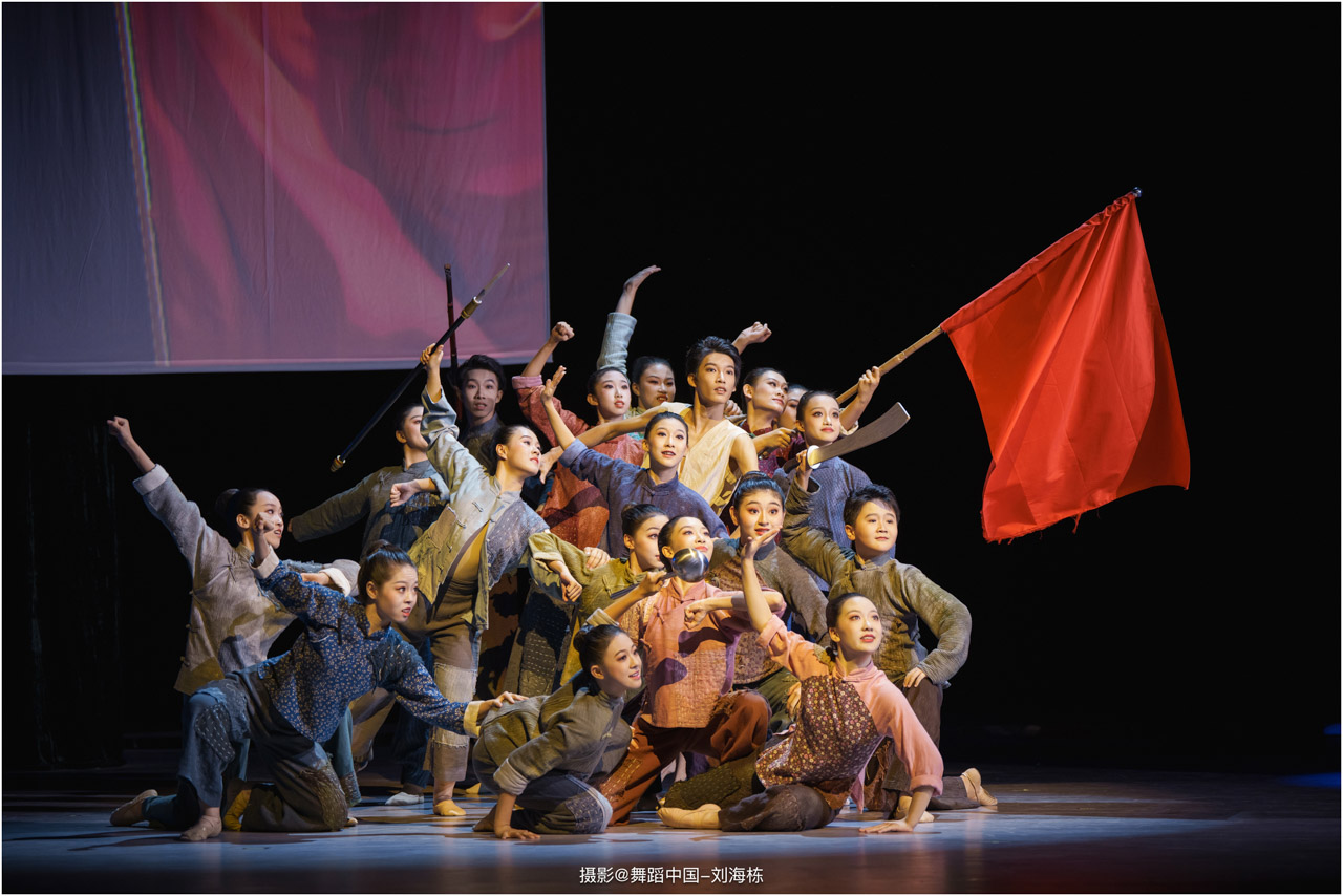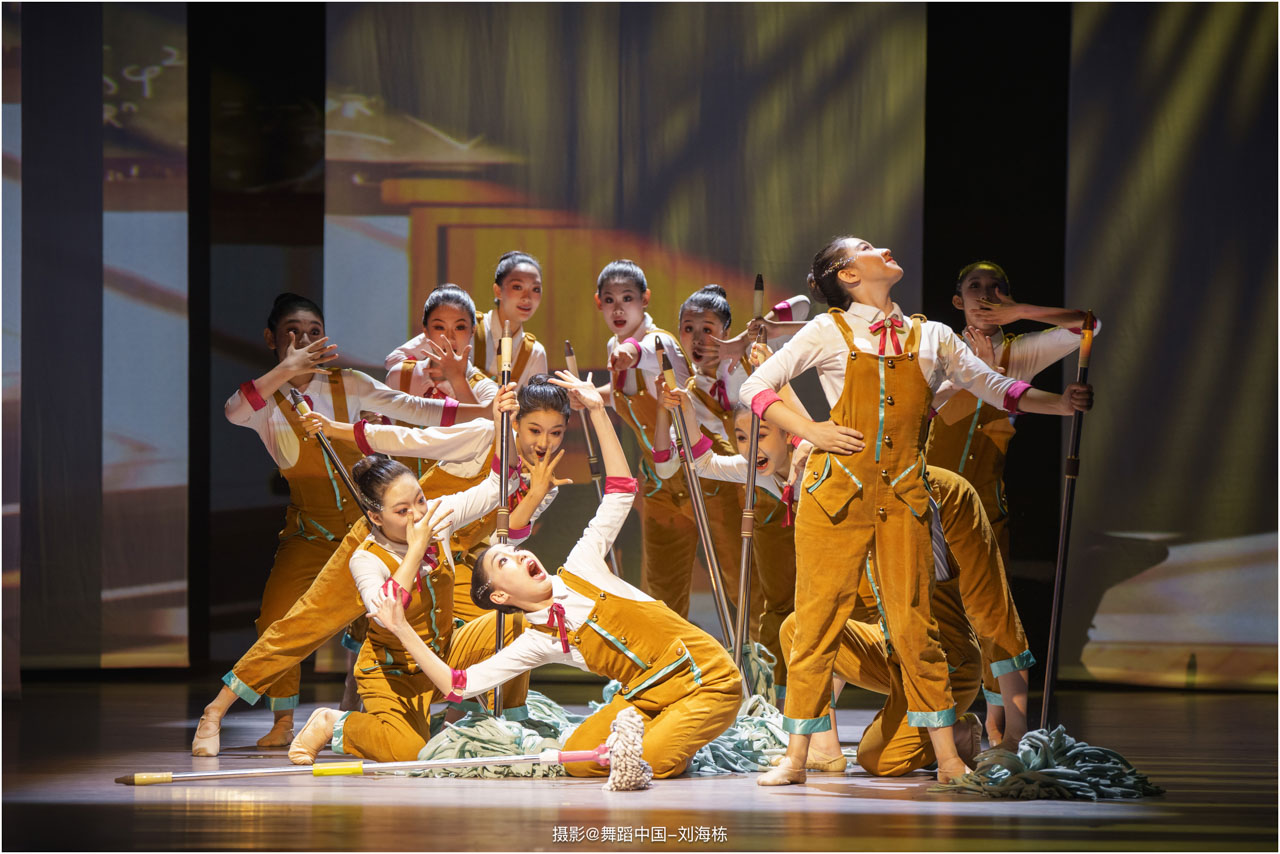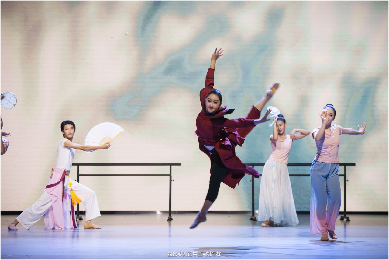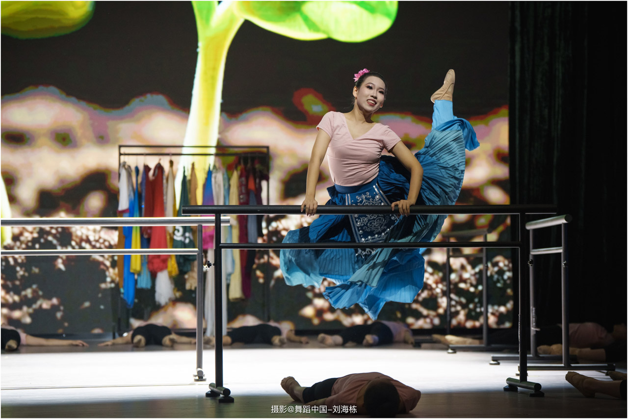 “初心·足迹”一幕中,六根把杆变换出熟悉的练功场景,灯光流转间,一代代舞者的成长故事缓缓铺展。基本功展示、民间舞与古典舞舞轮番上演,更有充满青春气息的“课桌舞”,再现中学生在教室与练功厅里的成长日常,唤醒全场共同的校园记忆。