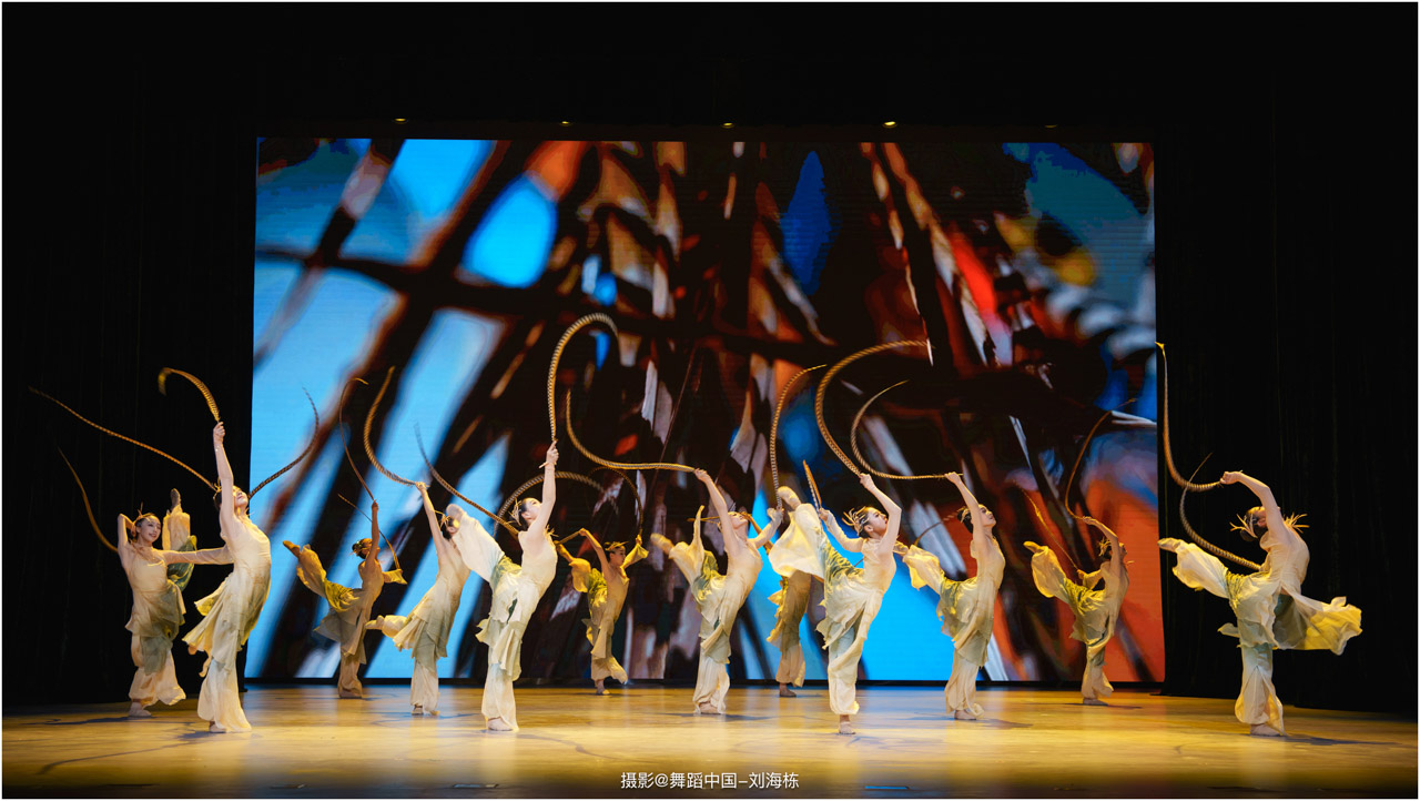 第二幕“砺炼·光芒”聚焦舞团近十年来的经典获奖作品。随着纱幕缓缓降下,每部作品的首演时间、荣誉与首演演员姓名逐一浮现,熟悉的旋律与舞姿交织,仿佛将观众带回那些并肩奋斗、摘得荣誉的瞬间。舞美与舞蹈的巧妙融合,让每一个动作都闪耀着艺术磨砺的光芒,尽显舞团高超的艺术表现力。