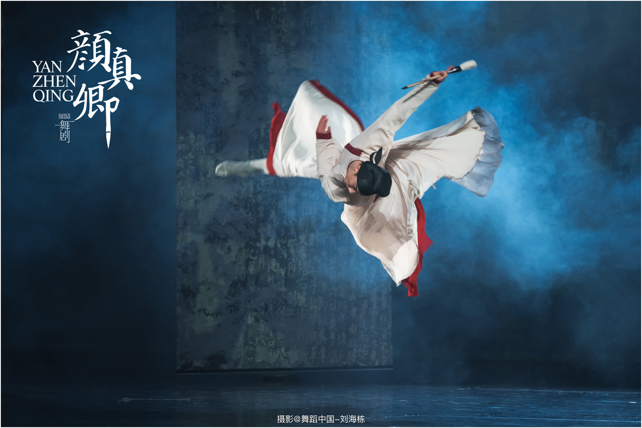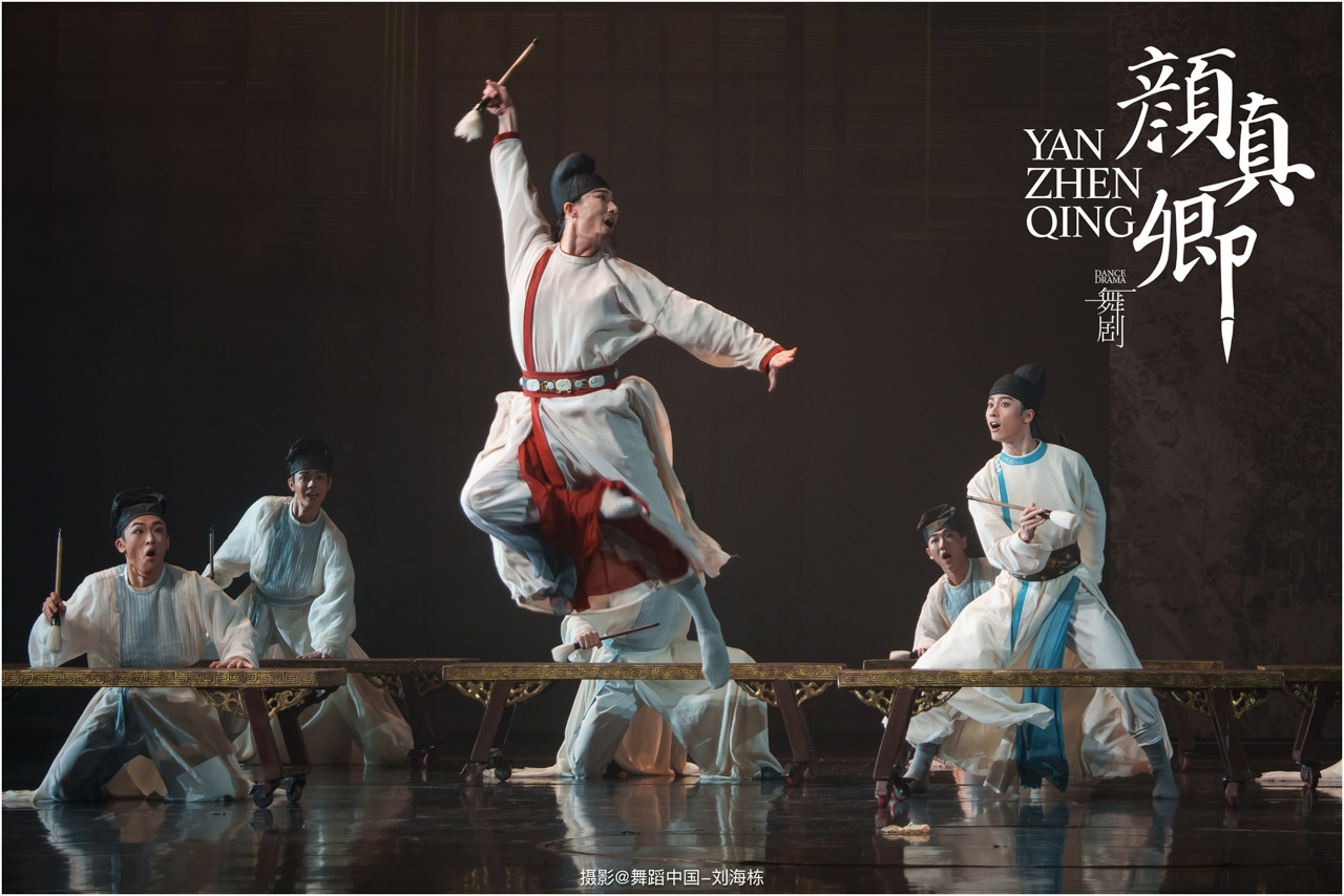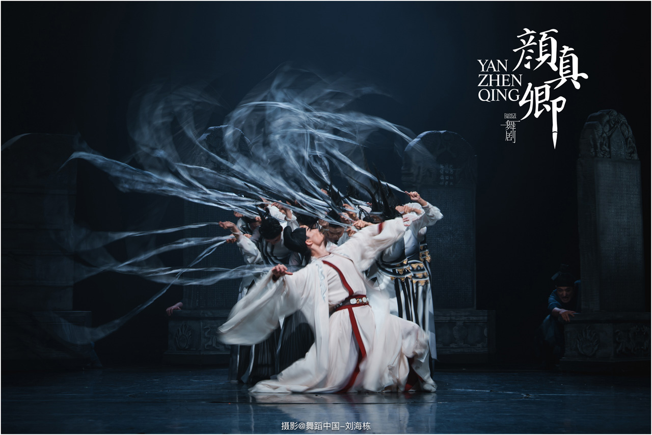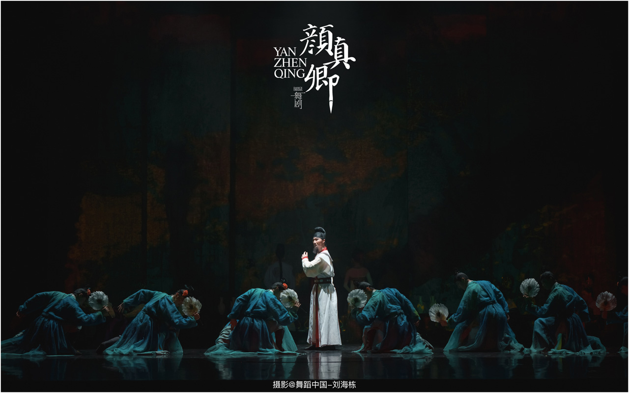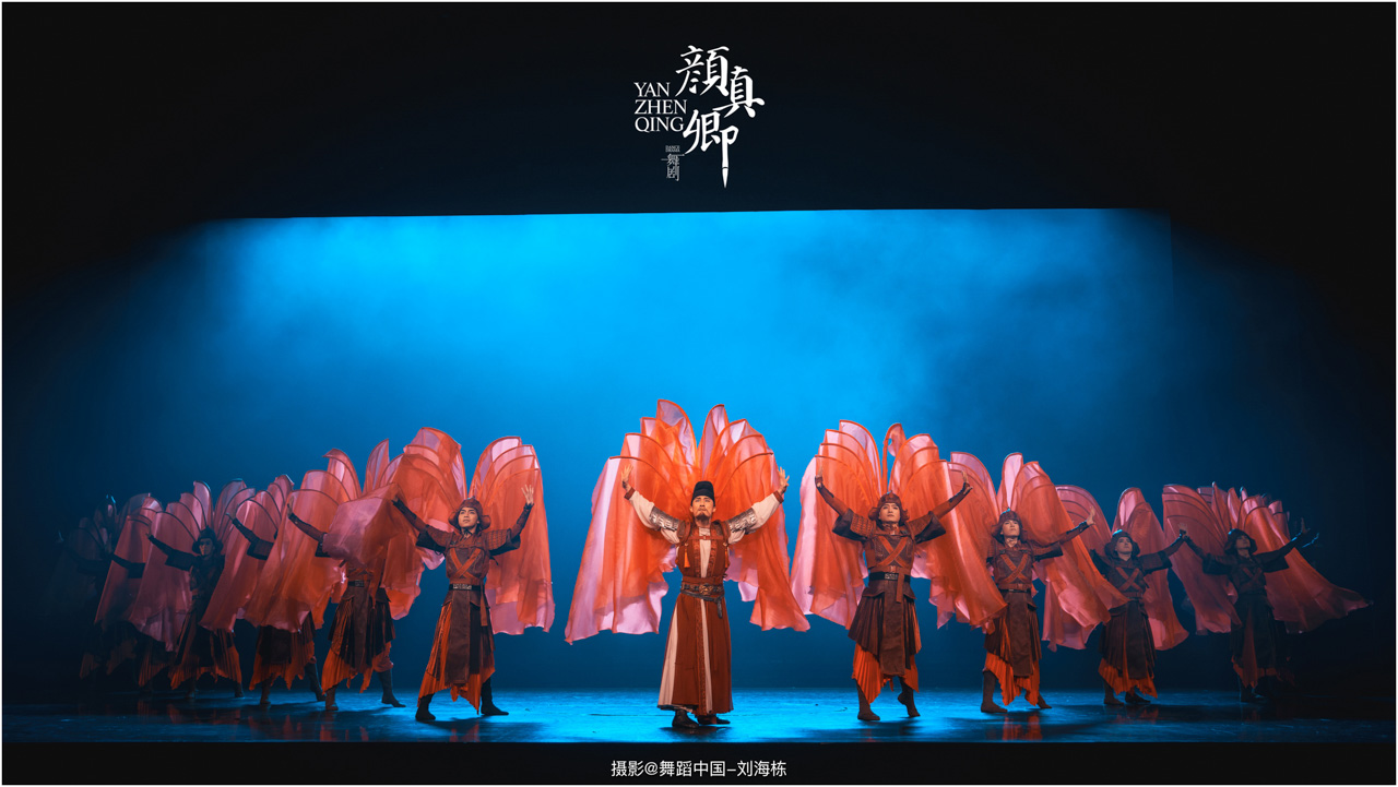 颜真卿书法精妙,擅长行、楷,其雄伟刚劲、大气磅礴的独特风格,被称为“颜体”,在中国书法史上起了承先启后的作用。《祭侄文稿》是颜真卿创作的行书纸本书法作品,被誉为“天下第二行书”,具有极高的史料价值和艺术价值。舞剧《颜真卿》将《祭侄文稿》的内容和颜真卿生平相互交织,通过颜真卿为侄儿颜季明撰写祭文时的回忆,串联起他的人生境遇。