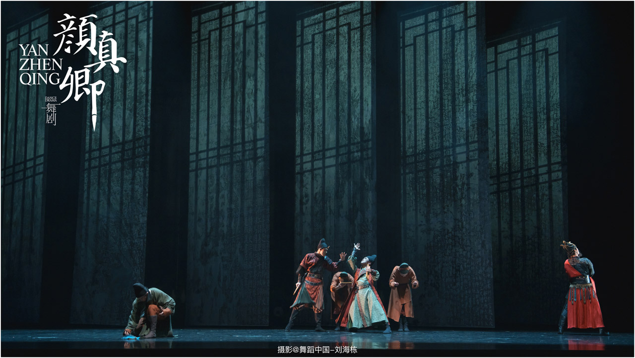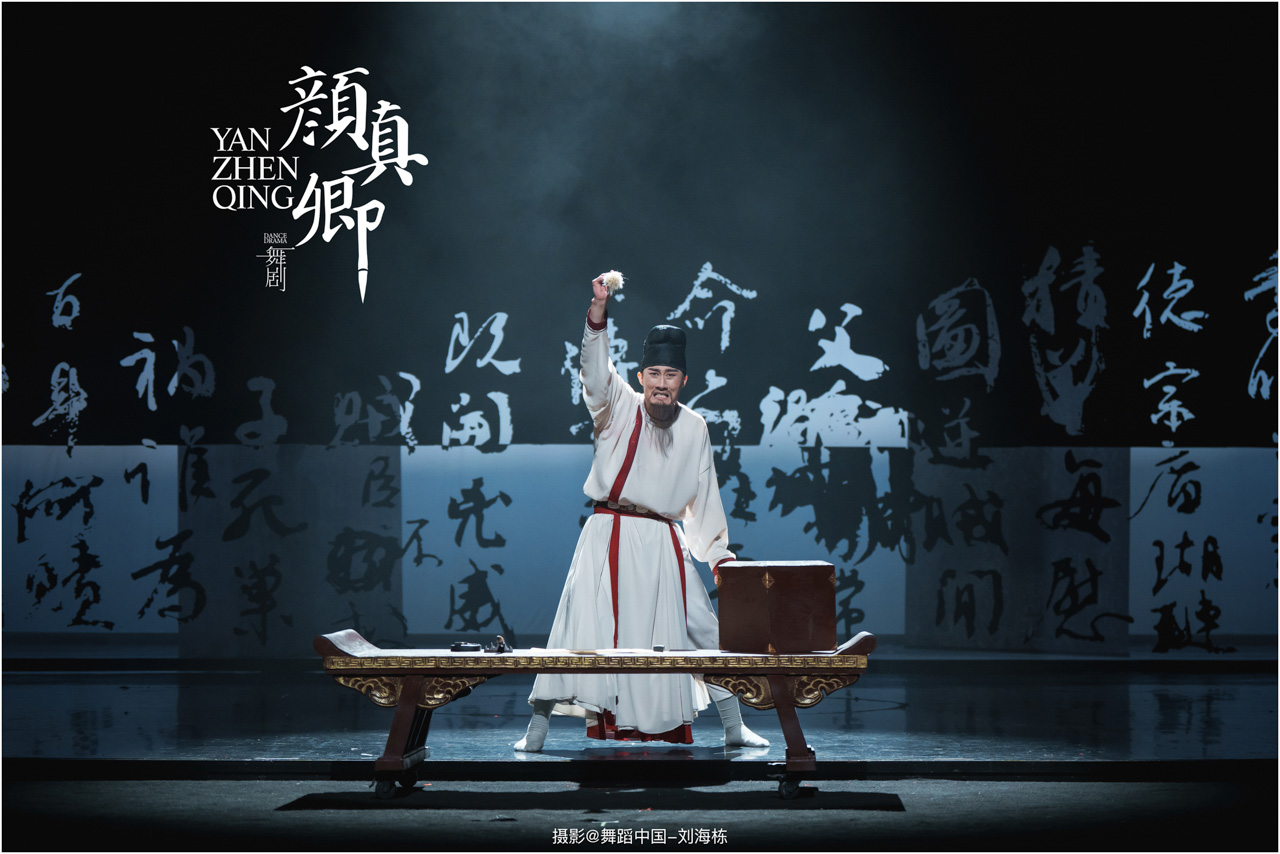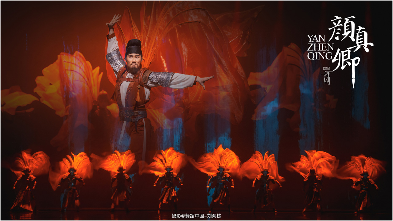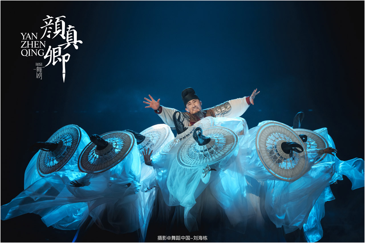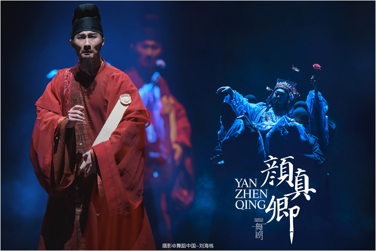 颜真卿书法精妙,擅长行、楷,其雄伟刚劲、大气磅礴的独特风格,被称为“颜体”,在中国书法史上起了承先启后的作用。《祭侄文稿》是颜真卿创作的行书纸本书法作品,被誉为“天下第二行书”,具有极高的史料价值和艺术价值。舞剧《颜真卿》将《祭侄文稿》的内容和颜真卿生平相互交织,通过颜真卿为侄儿颜季明撰写祭文时的回忆,串联起他的人生境遇。
