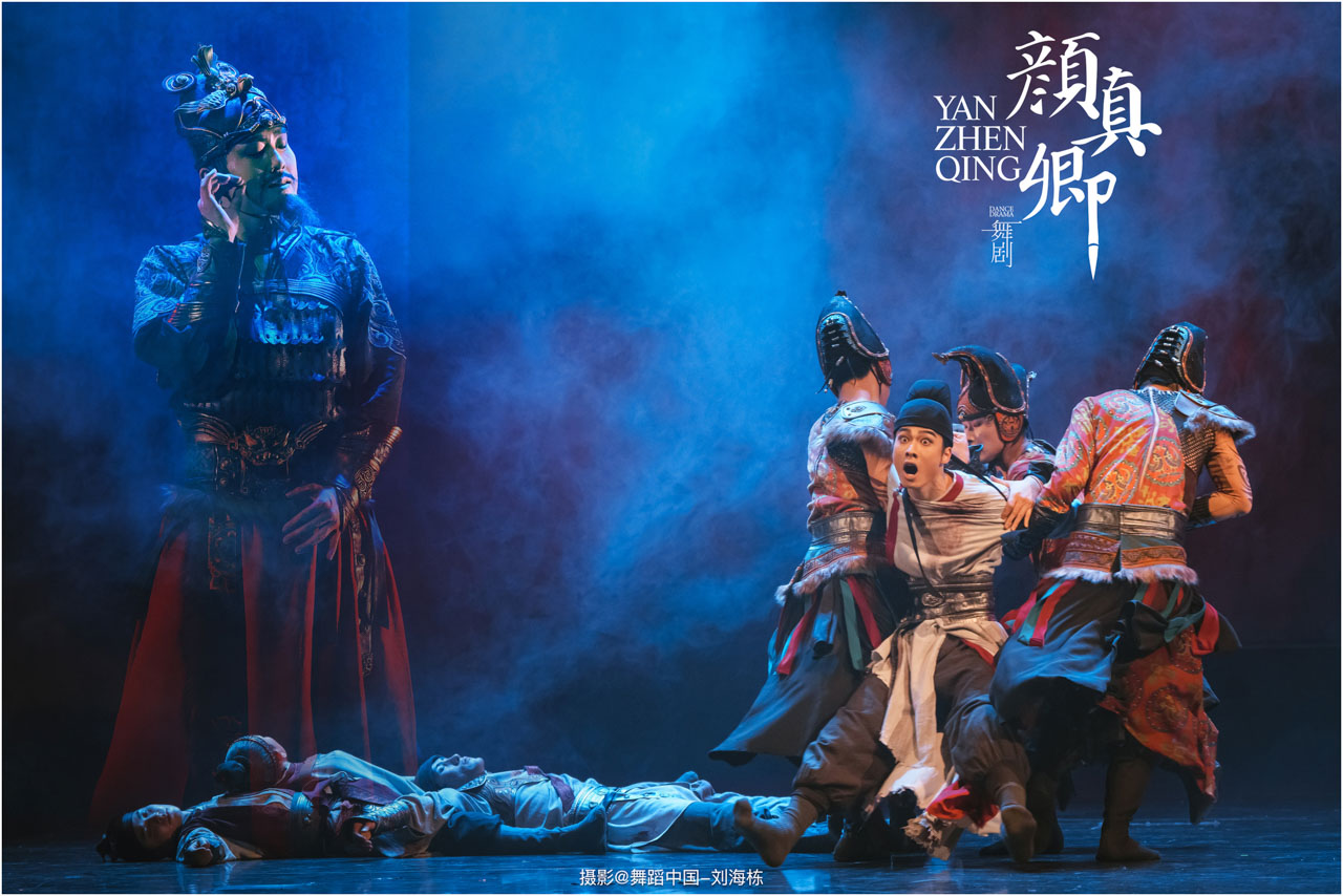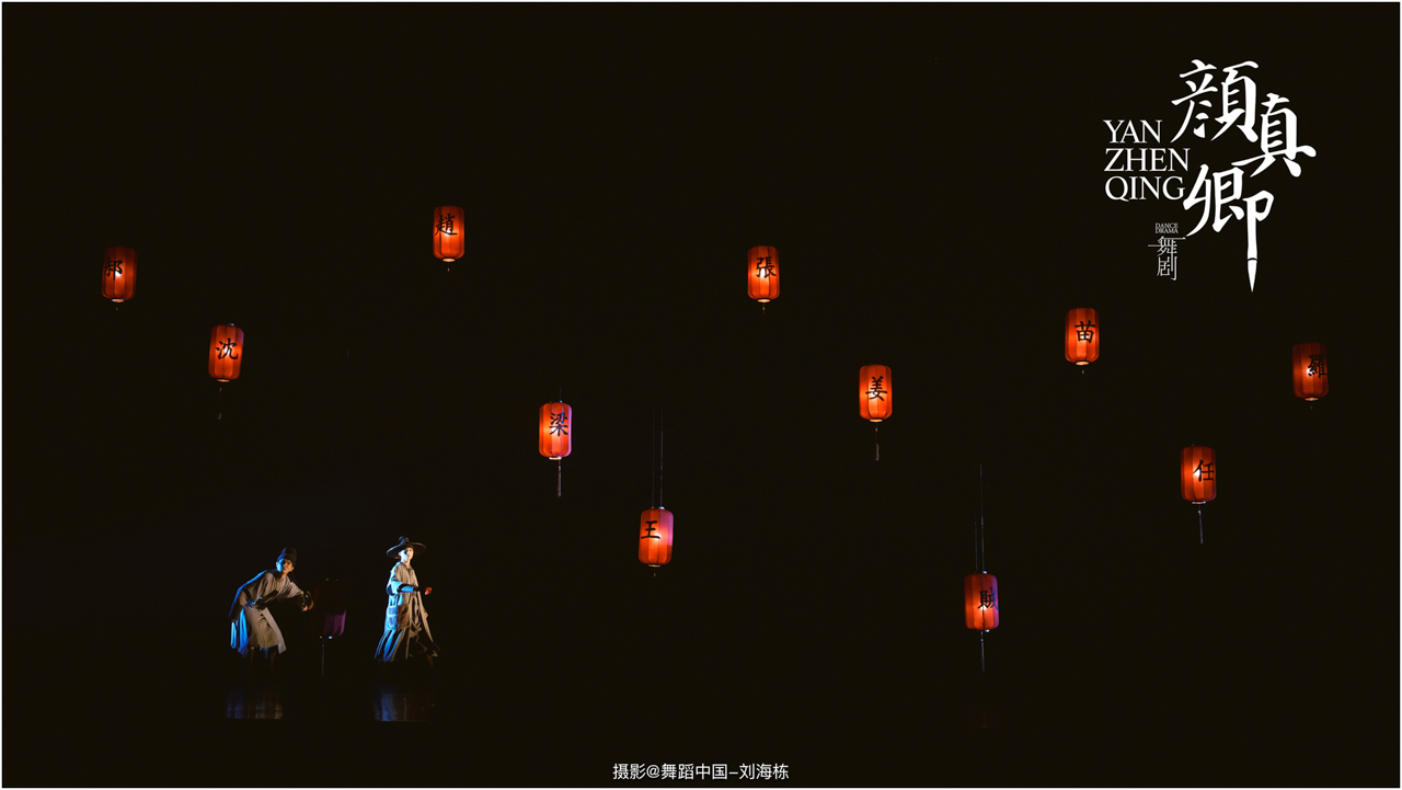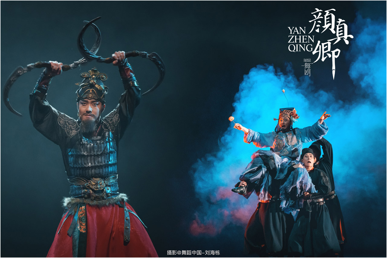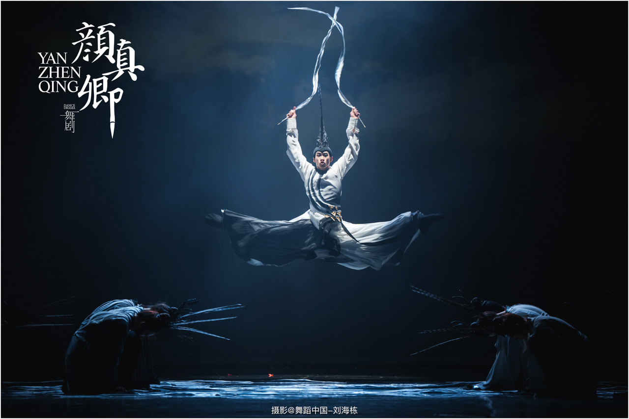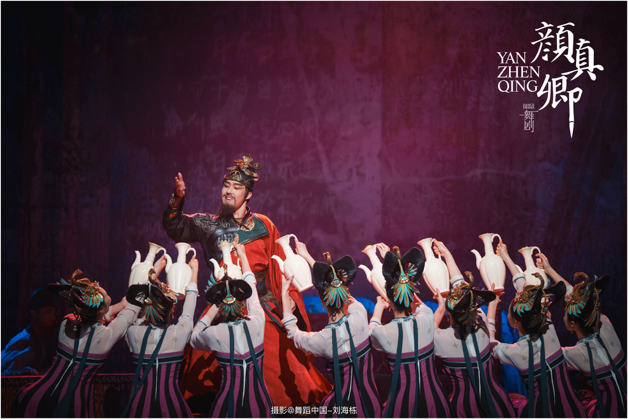 颜真卿书法精妙,擅长行、楷,其雄伟刚劲、大气磅礴的独特风格,被称为“颜体”,在中国书法史上起了承先启后的作用。《祭侄文稿》是颜真卿创作的行书纸本书法作品,被誉为“天下第二行书”,具有极高的史料价值和艺术价值。舞剧《颜真卿》将《祭侄文稿》的内容和颜真卿生平相互交织,通过颜真卿为侄儿颜季明撰写祭文时的回忆,串联起他的人生境遇。