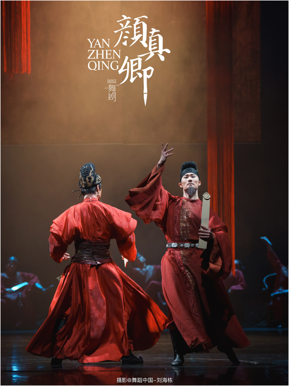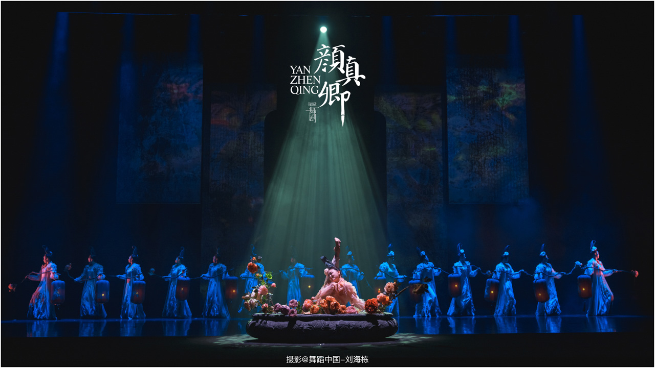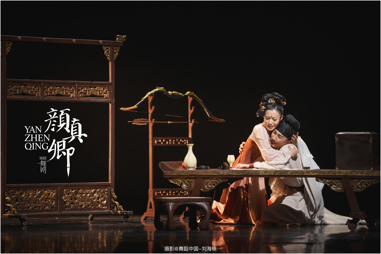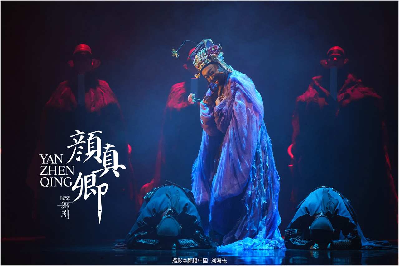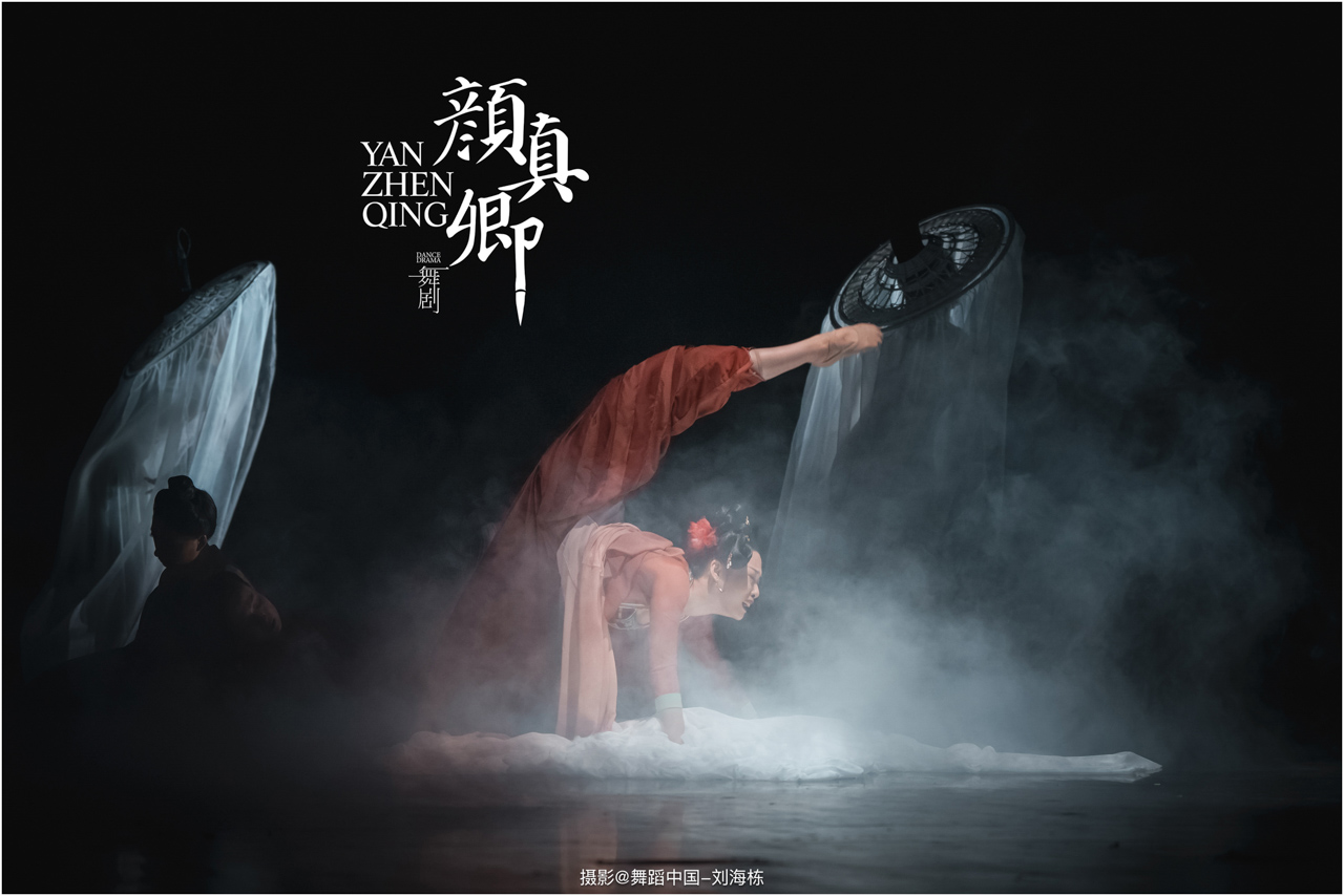 颜真卿书法精妙,擅长行、楷,其雄伟刚劲、大气磅礴的独特风格,被称为“颜体”,在中国书法史上起了承先启后的作用。《祭侄文稿》是颜真卿创作的行书纸本书法作品,被誉为“天下第二行书”,具有极高的史料价值和艺术价值。舞剧《颜真卿》将《祭侄文稿》的内容和颜真卿生平相互交织,通过颜真卿为侄儿颜季明撰写祭文时的回忆,串联起他的人生境遇。