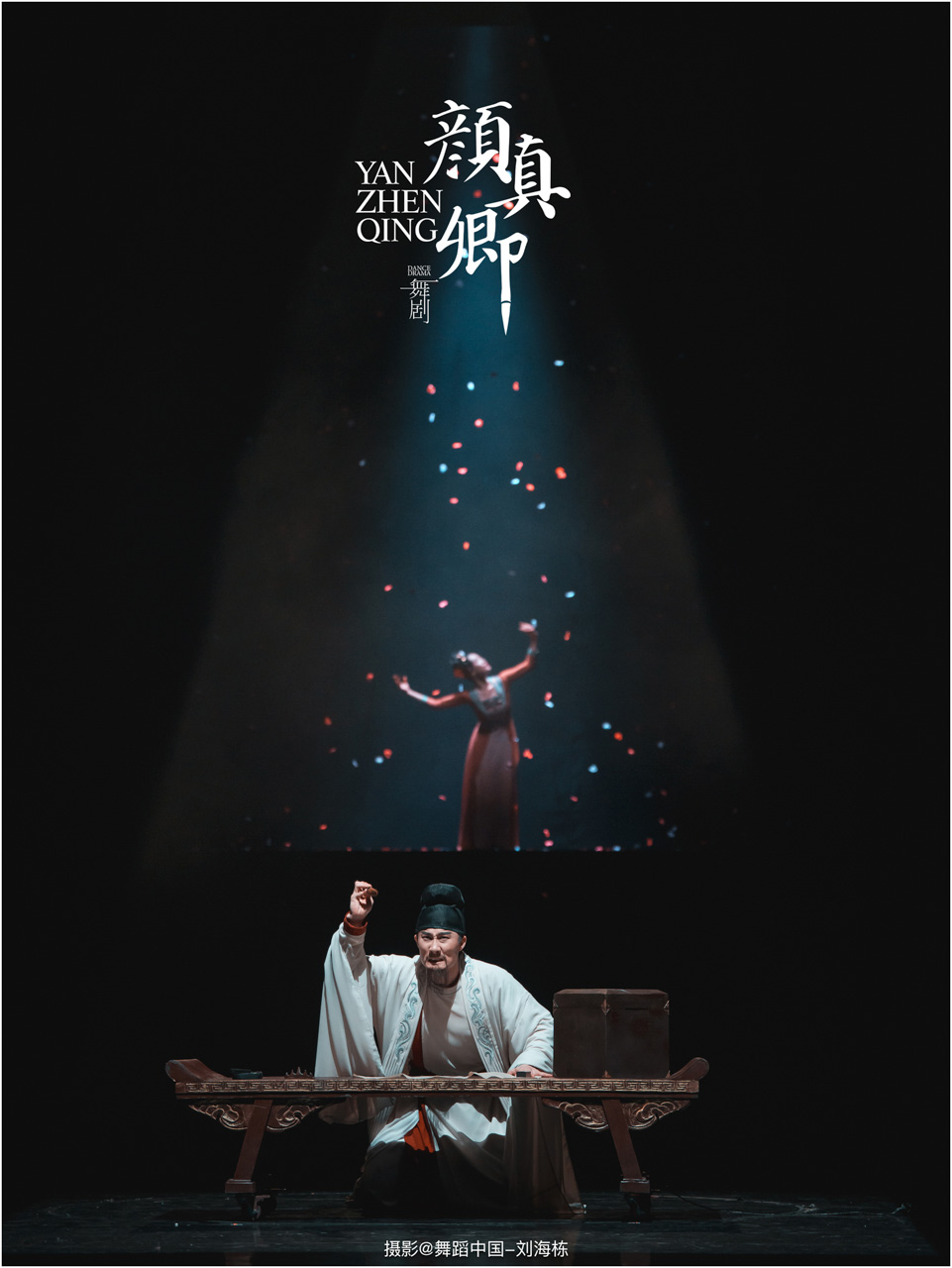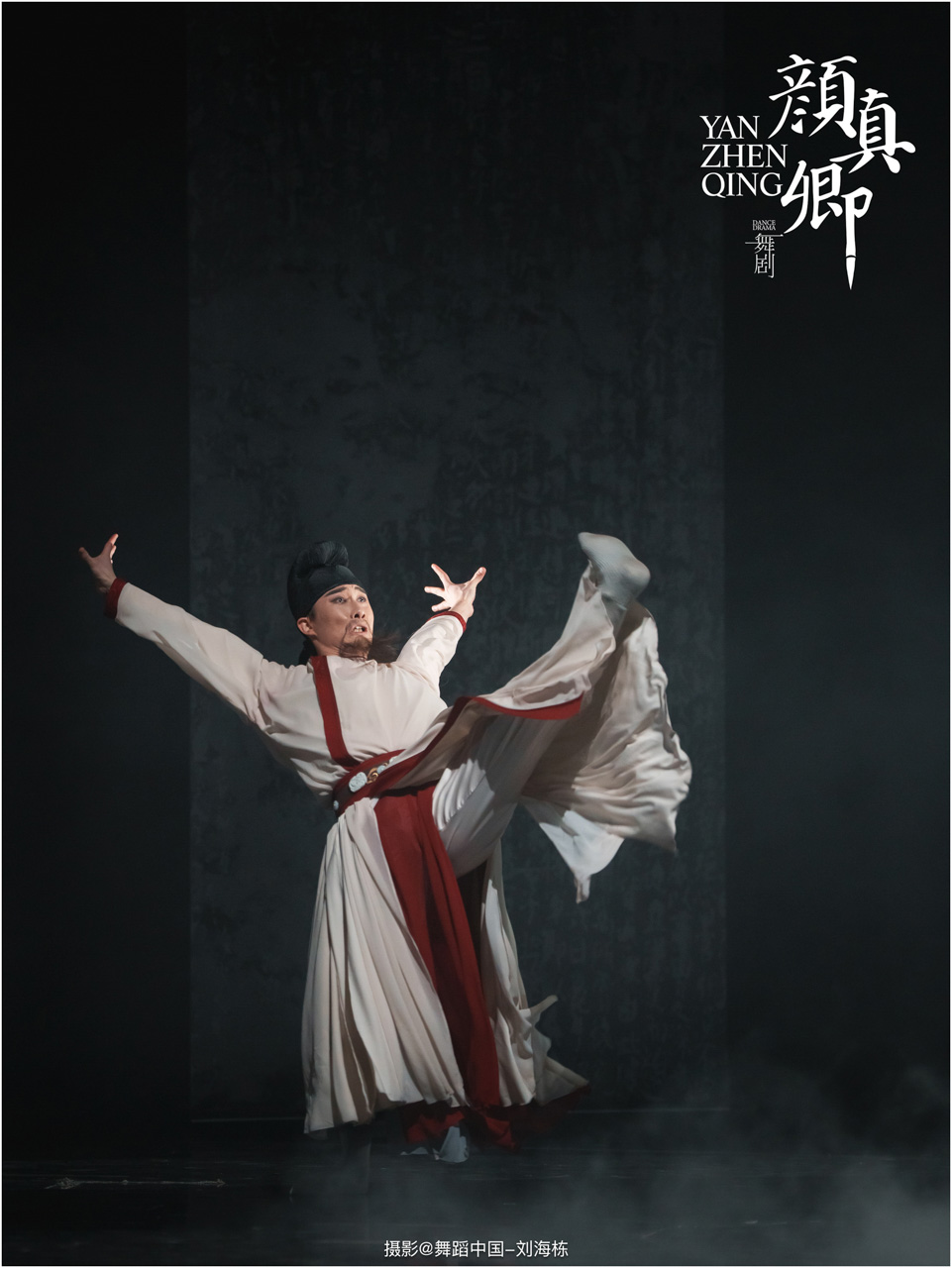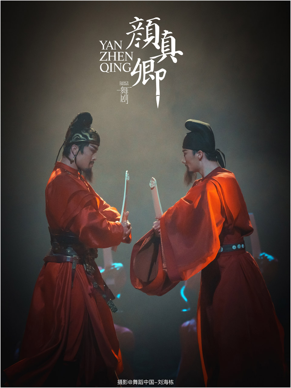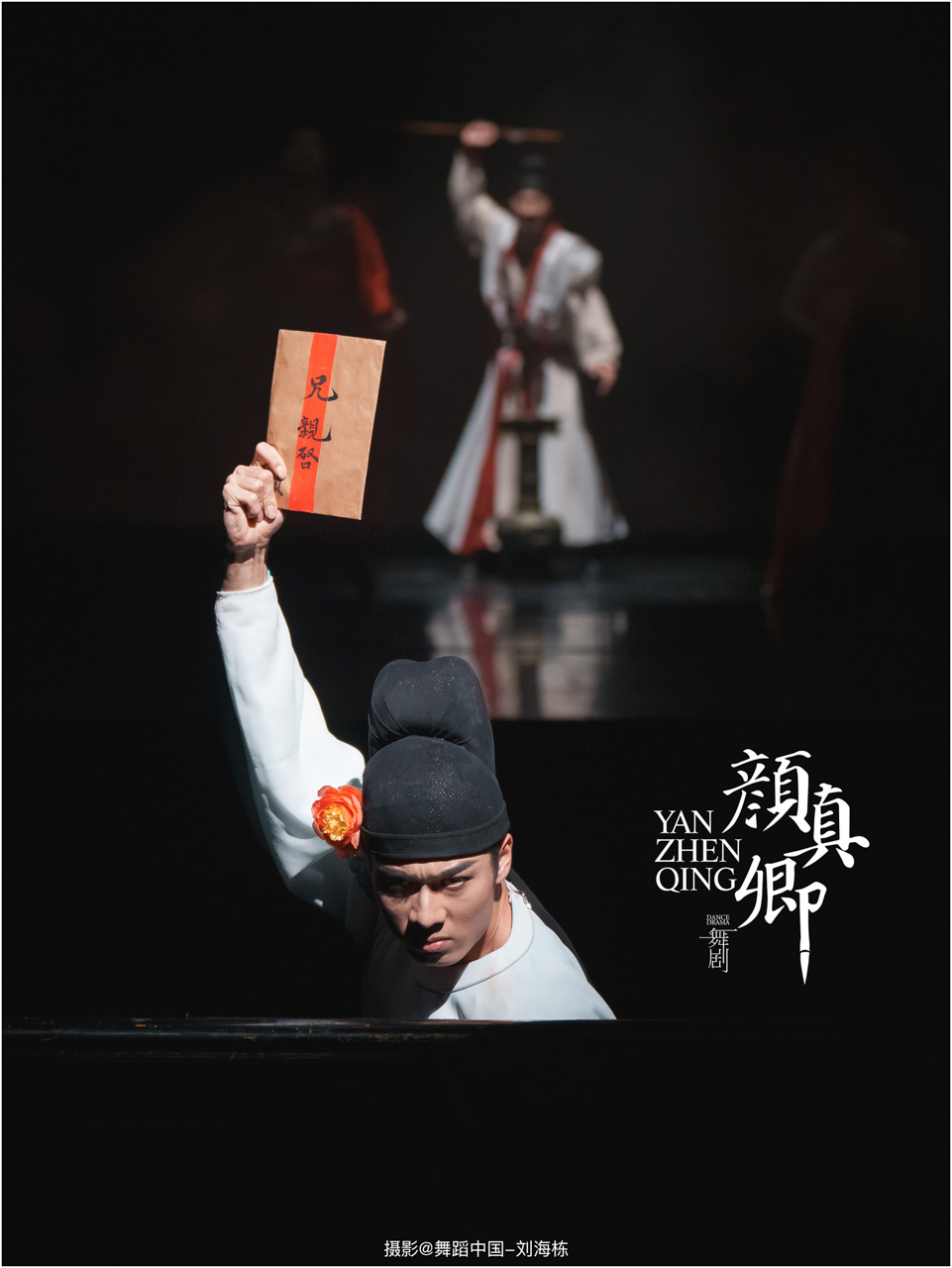 颜真卿书法精妙,擅长行、楷,其雄伟刚劲、大气磅礴的独特风格,被称为“颜体”,在中国书法史上起了承先启后的作用。《祭侄文稿》是颜真卿创作的行书纸本书法作品,被誉为“天下第二行书”,具有极高的史料价值和艺术价值。舞剧《颜真卿》将《祭侄文稿》的内容和颜真卿生平相互交织,通过颜真卿为侄儿颜季明撰写祭文时的回忆,串联起他的人生境遇。